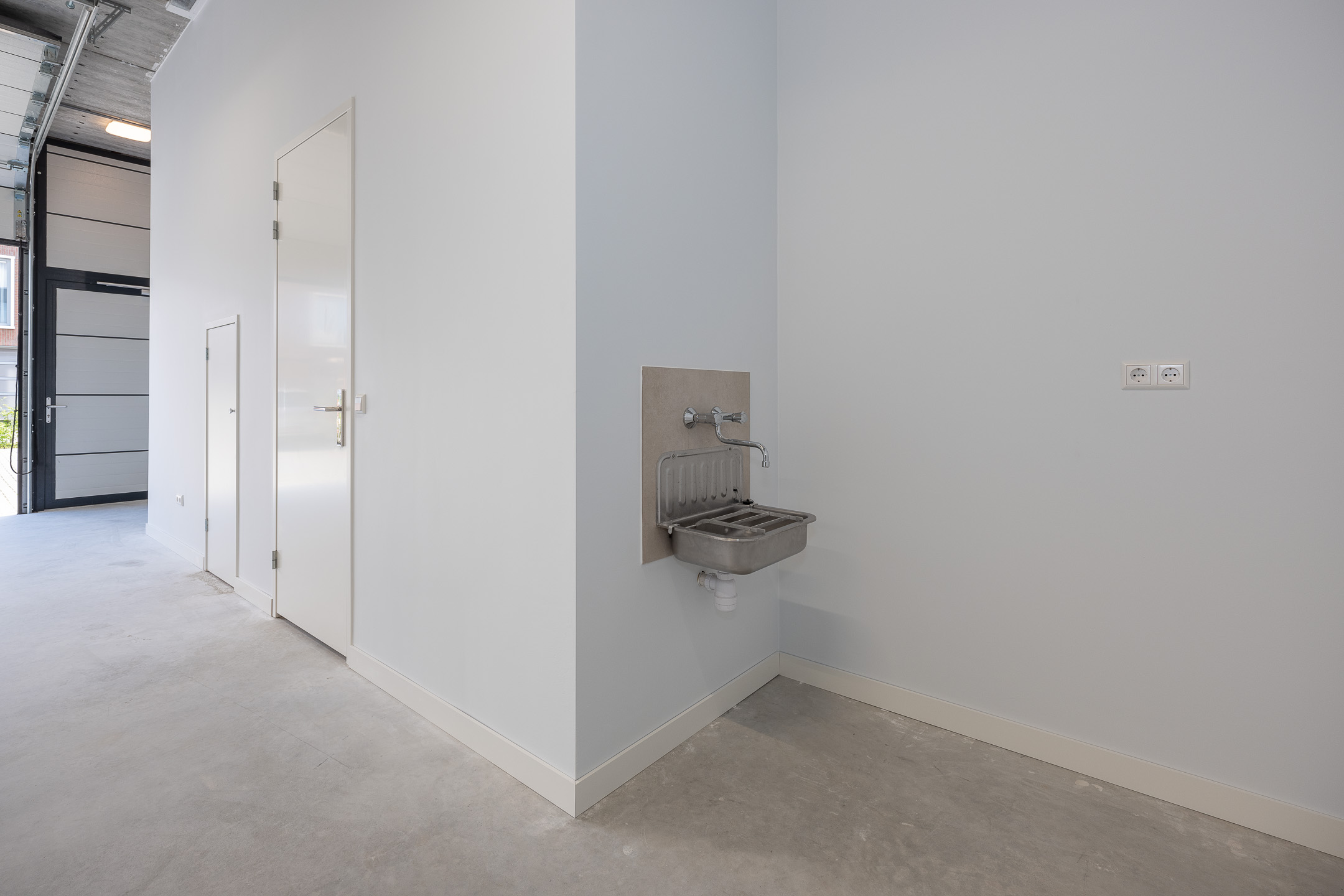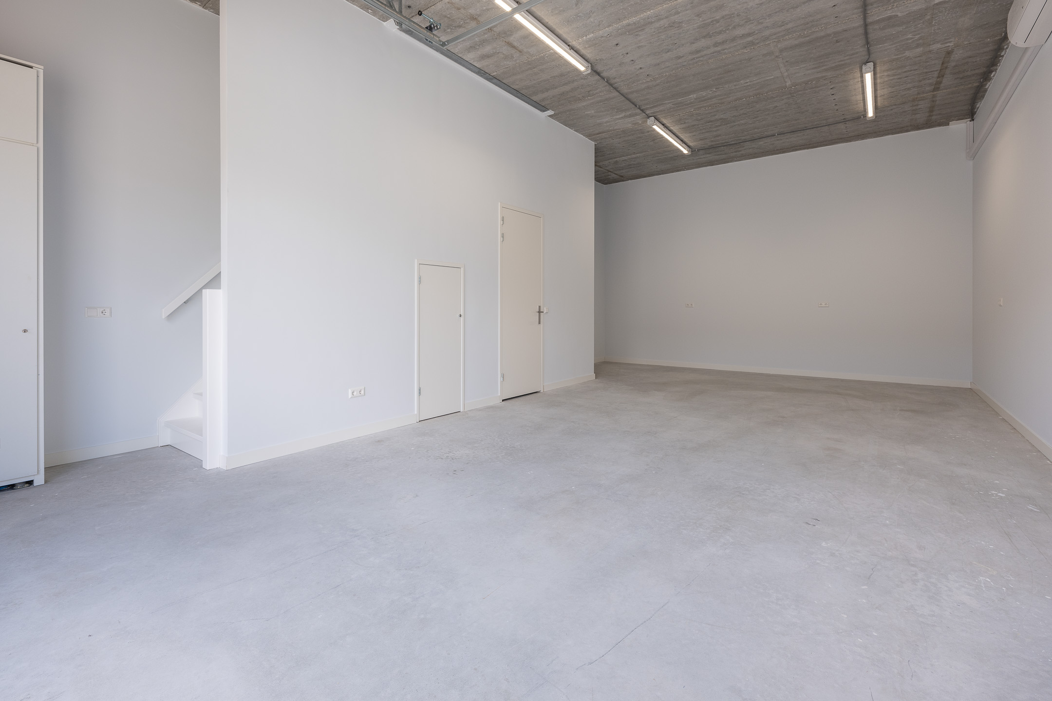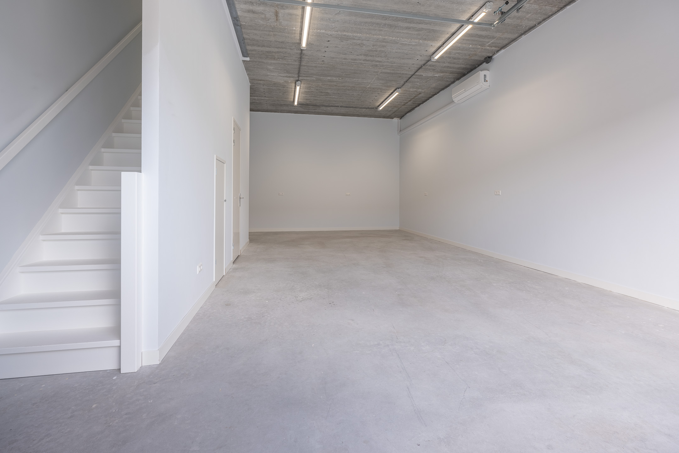 De gestuukte wanden zorgen voor een nette uitstraling. Middels een nieuw klimaatsysteem bent u verzekerd van een aangename werkomgeving in de koudere en warmere maanden van het jaar. Het toilet en de douche bevinden zich op de begane grond. De bedrijfsruimte beschikt over heldere ledverlichting en een separate uitstortbak met spatwand.