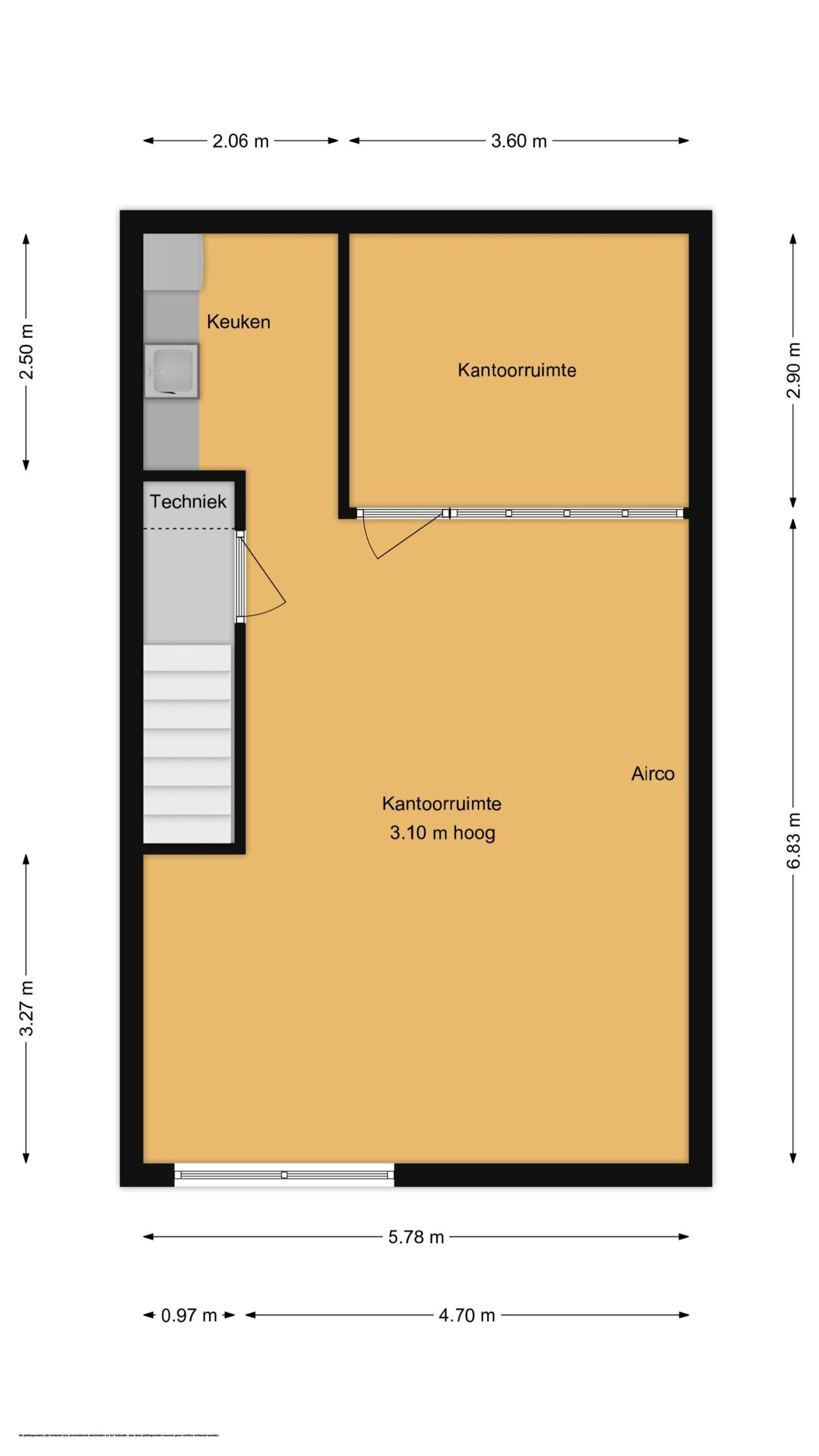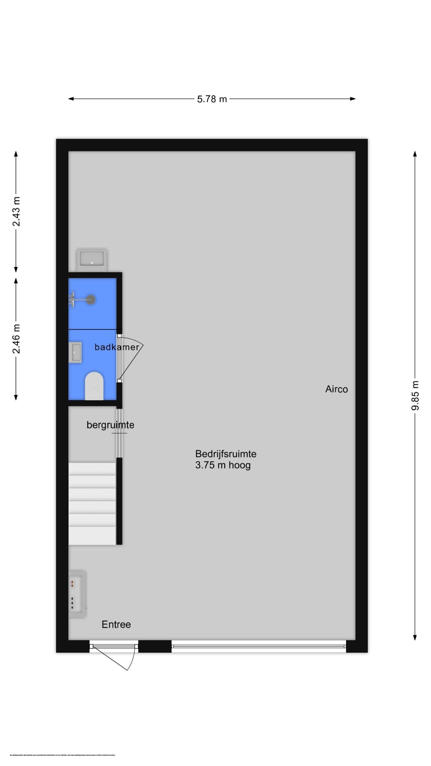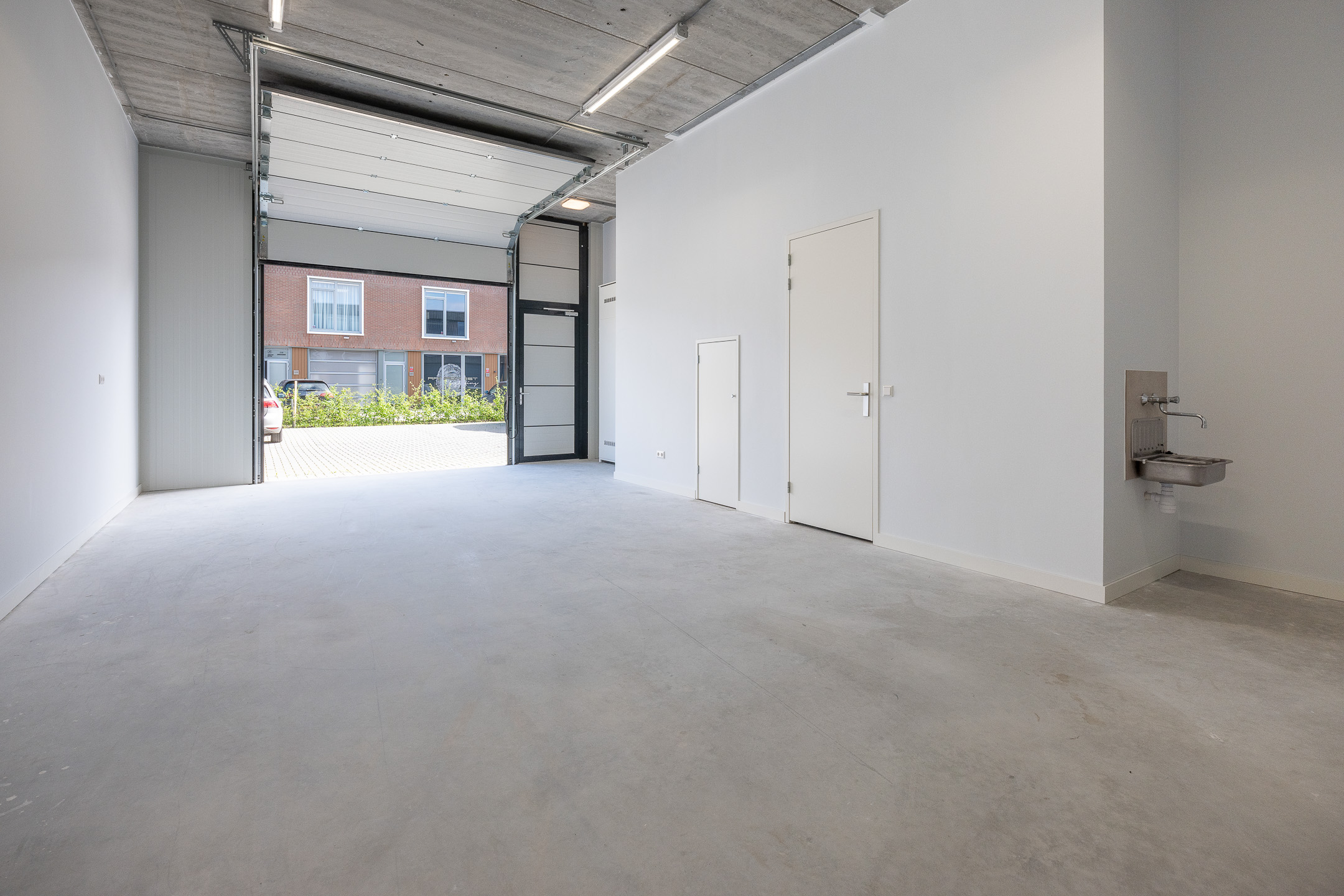 De gestuukte wanden zorgen voor een nette uitstraling. Middels een nieuw klimaatsysteem bent u verzekerd van een aangename werkomgeving in de koudere en warmere maanden van het jaar. Het toilet en de douche bevinden zich op de begane grond. De bedrijfsruimte beschikt over heldere ledverlichting en een separate uitstortbak met spatwand.