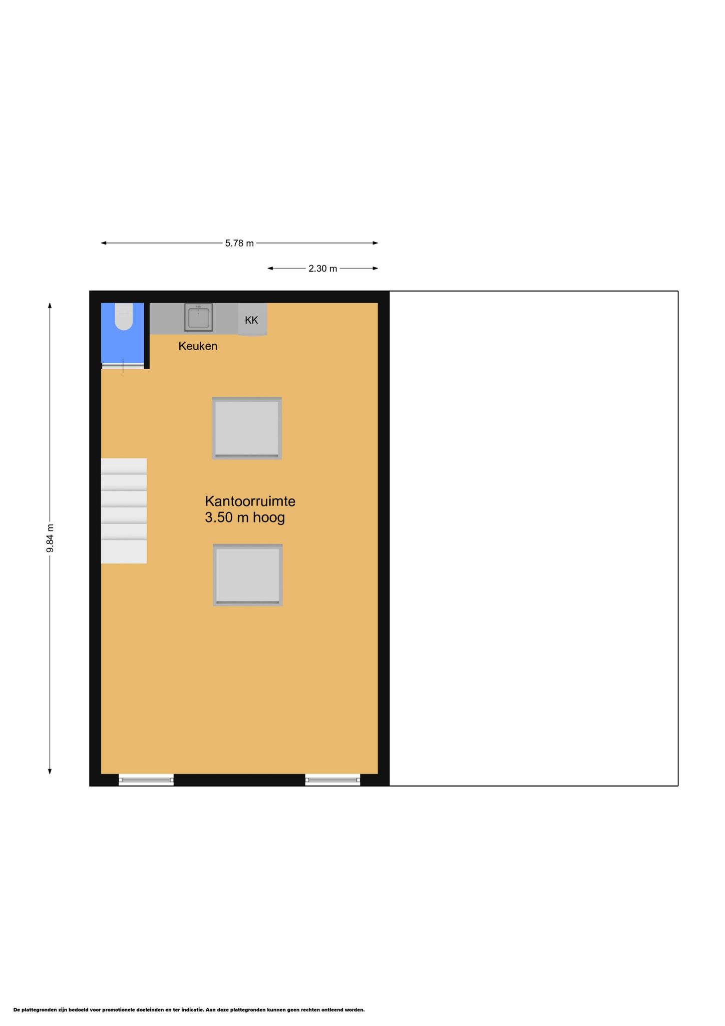Totaal circa. 112 m² verhuurbaar vloeroppervlak, verdeeld over de begane grond en de etage.