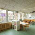 De begane grond van circa. 60 m² VVO beschikt over een ruim en licht klaslokaal met pantry en een plafondhoogte van circa 3,08 meter, een tweede kamer en een vast toilet.