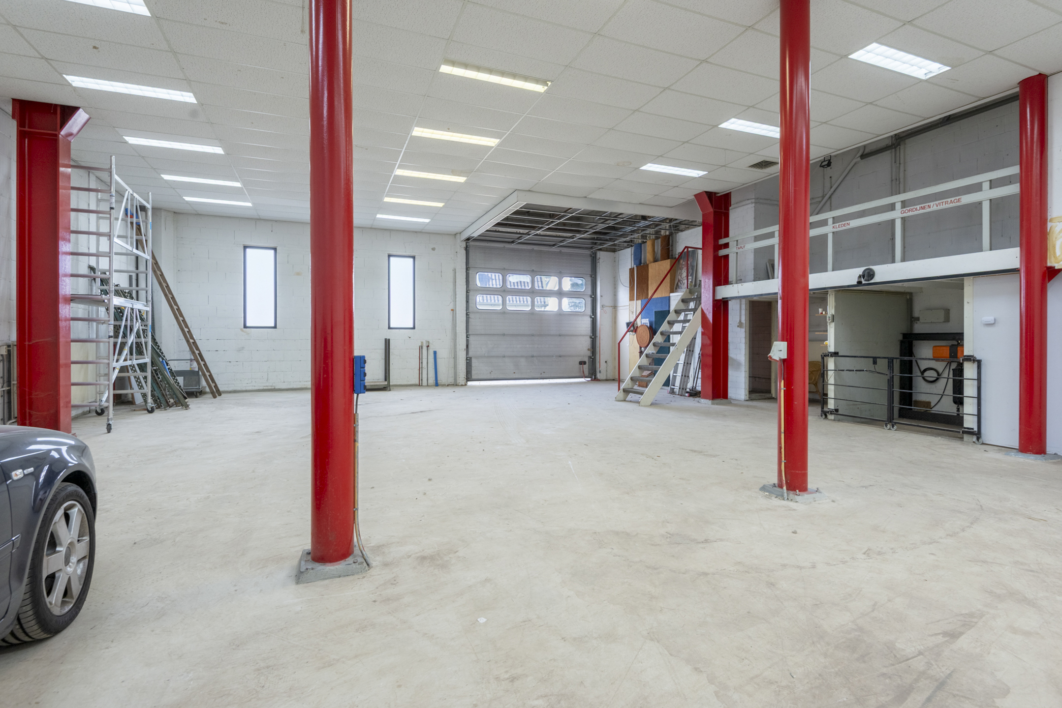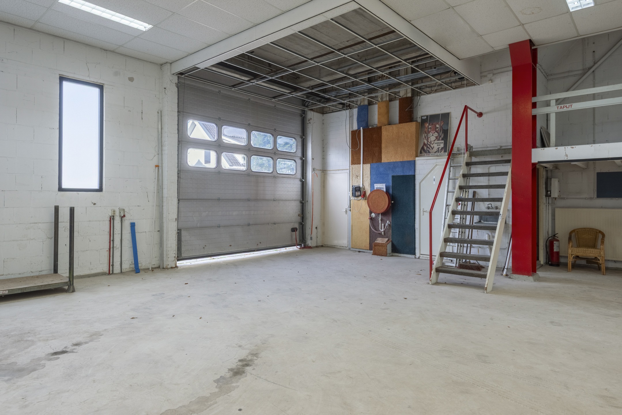 Middels de elektrische overheaddeur, die op 1 april 2026 is vernieuwd, betreedt u het pand. De begane grond heeft een oppervlakte van circa 179 m² VVO en een vrije hoogte van circa 4,71 meter. Op de begane grond is een toilet en uitstortbak aanwezig. Verder is er een trap die toegang geeft tot de entresol. De entresol heeft een verhuurbaar vloeroppervlak van circa 18,8 m². Op de entresol is ook een kantoorruimte aanwezig.