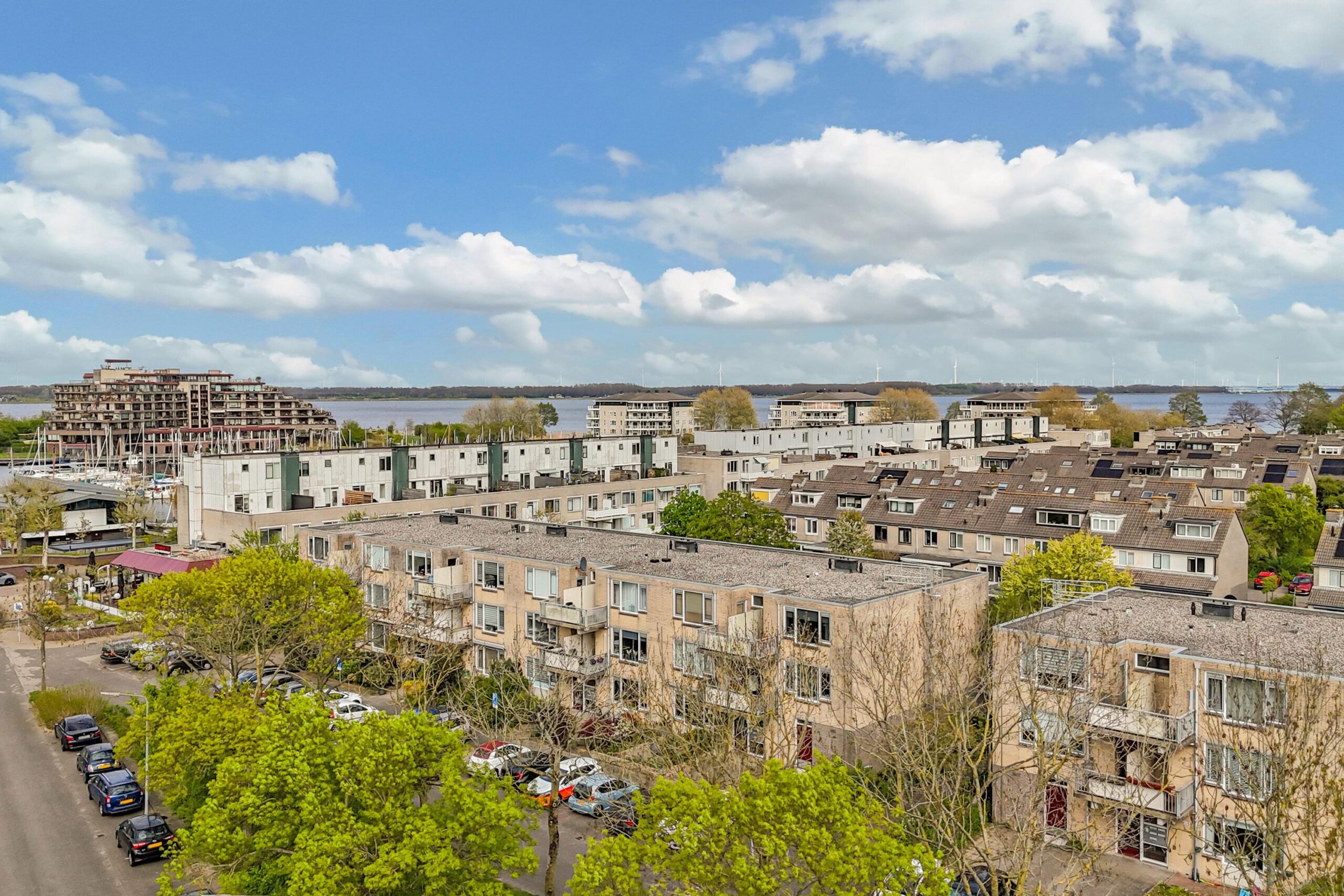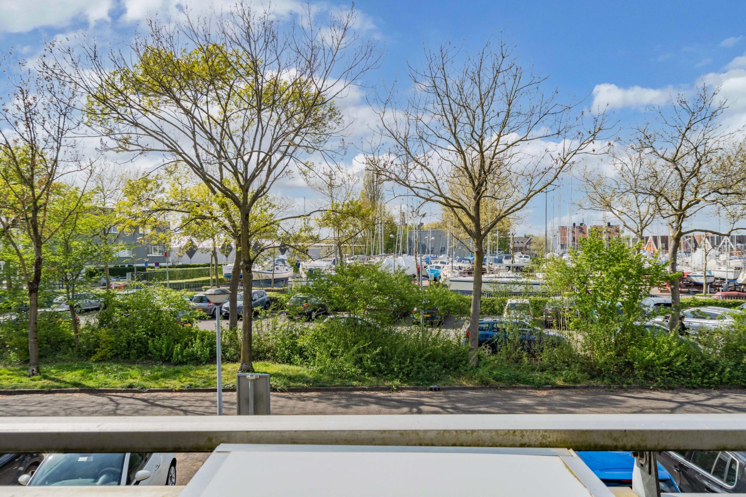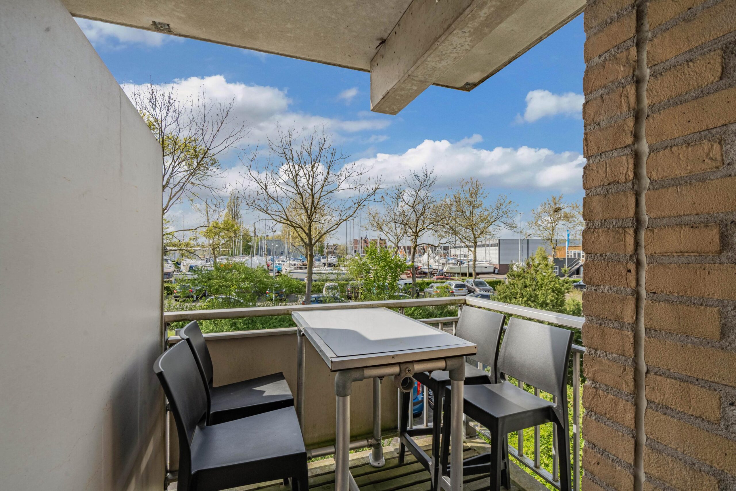Het appartement heeft een zonnig balkon op het westen welke over het groen bij de jachthaven uitkijkt.