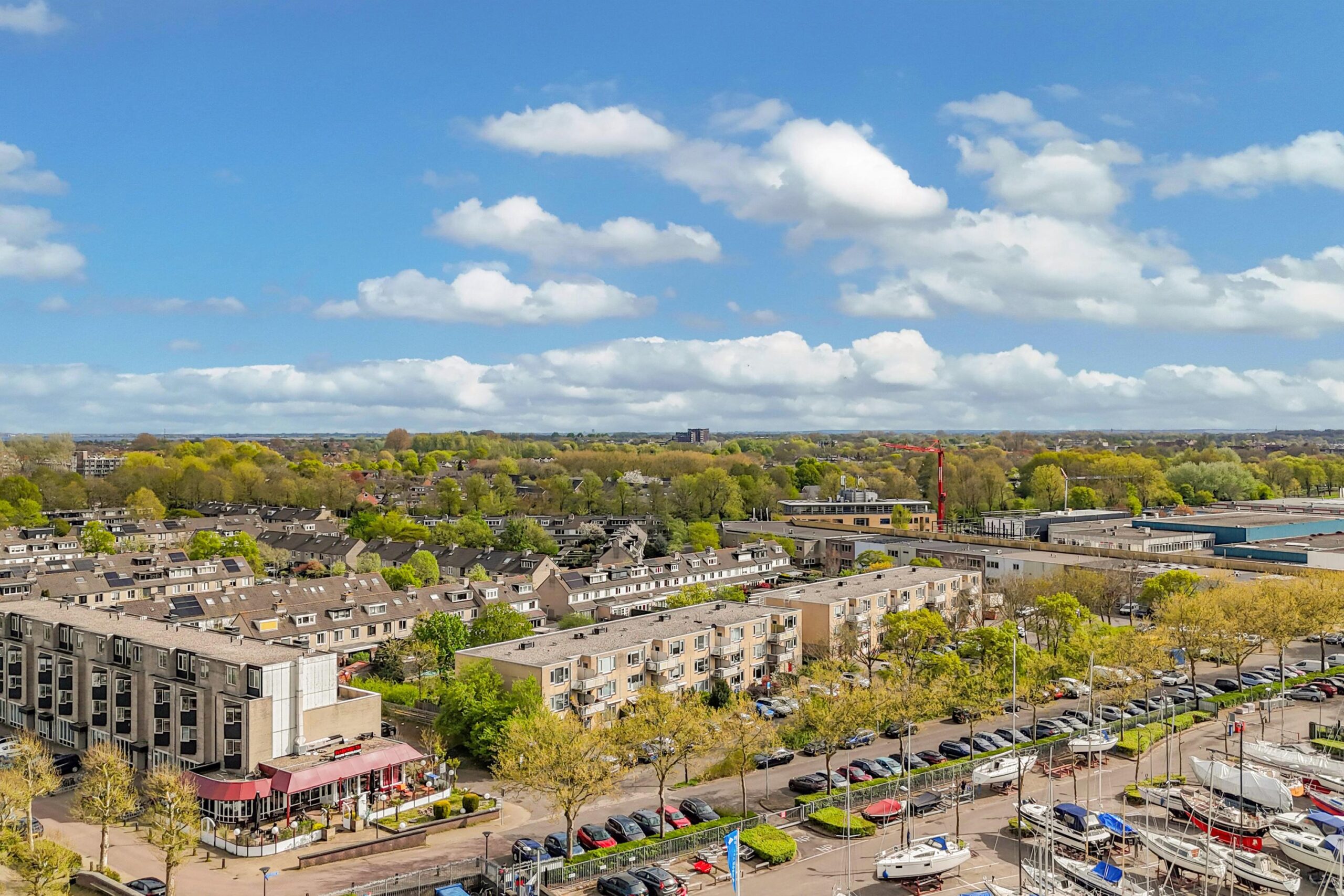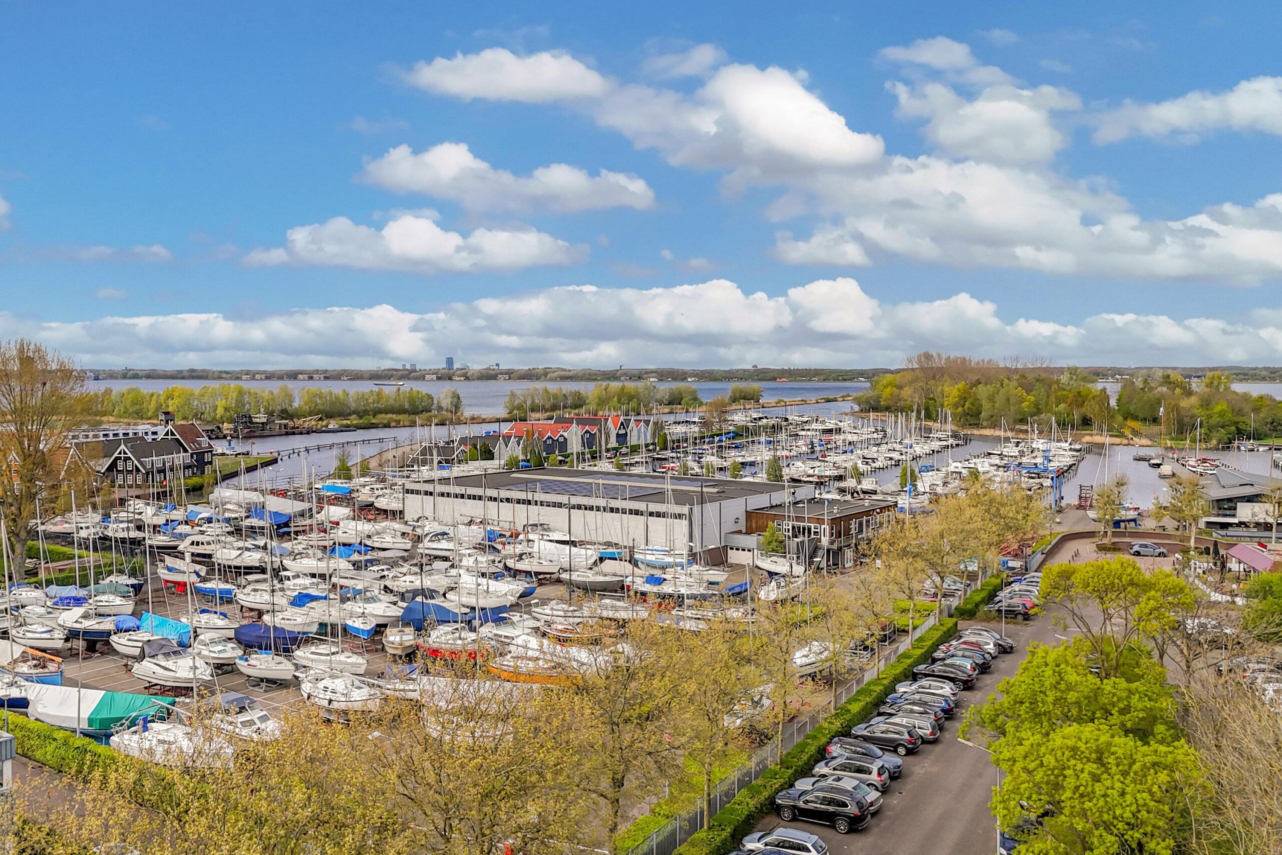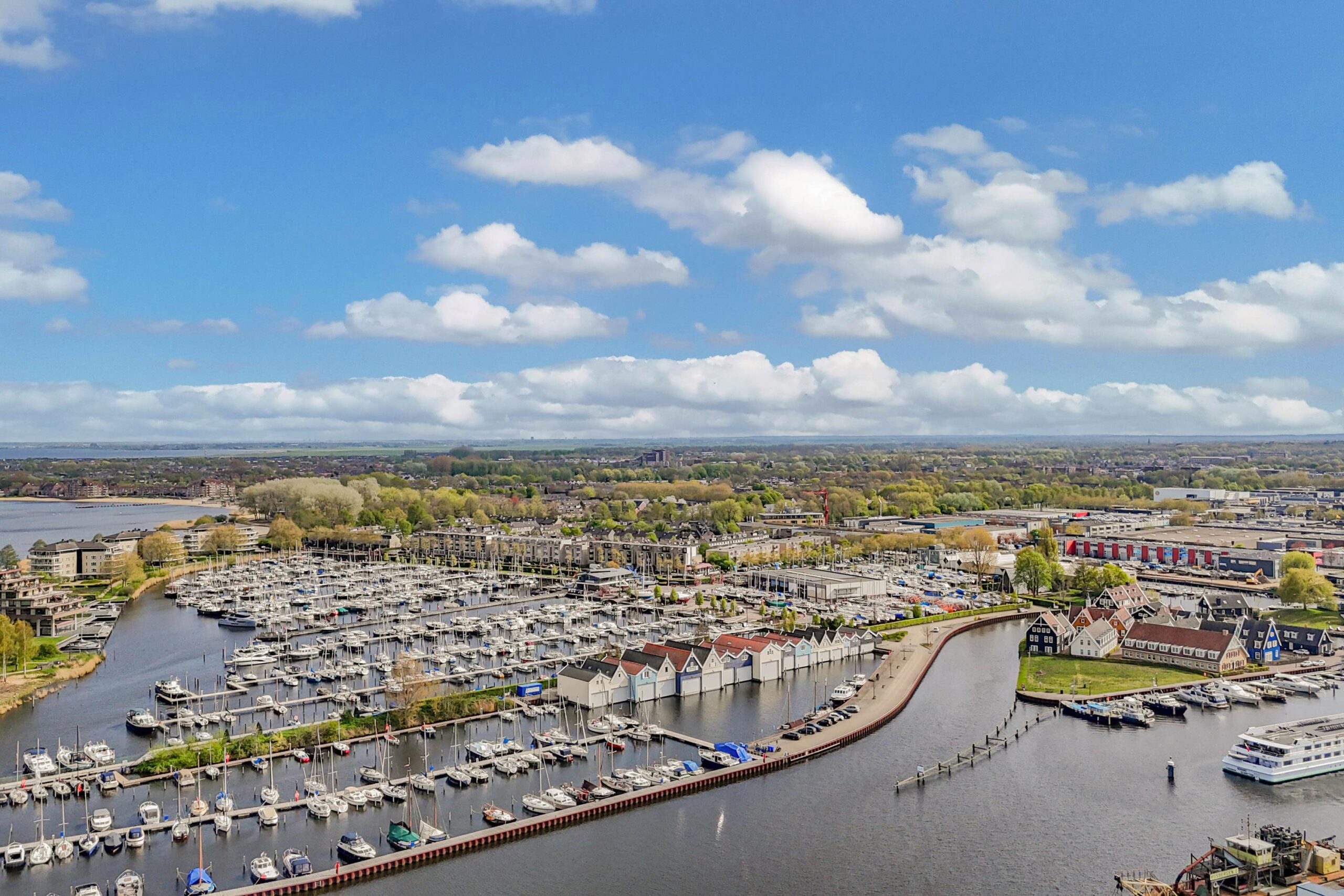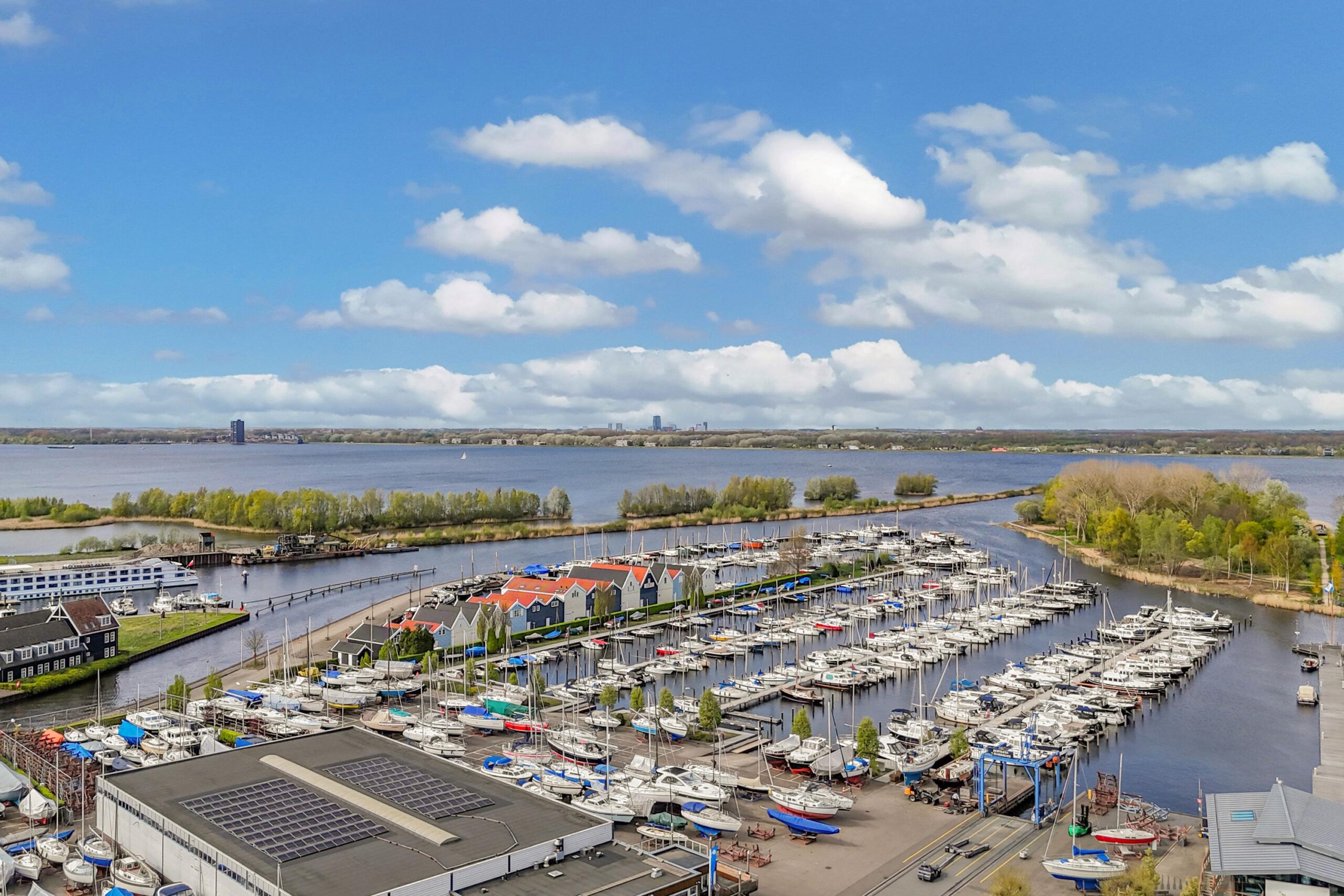 Het appartement heeft een zonnig balkon op het westen welke over het groen bij de jachthaven uitkijkt.