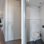Door het gehele appartement ligt een drempelloze vloer en voorzien van ruimte besparende schuifdeuren.