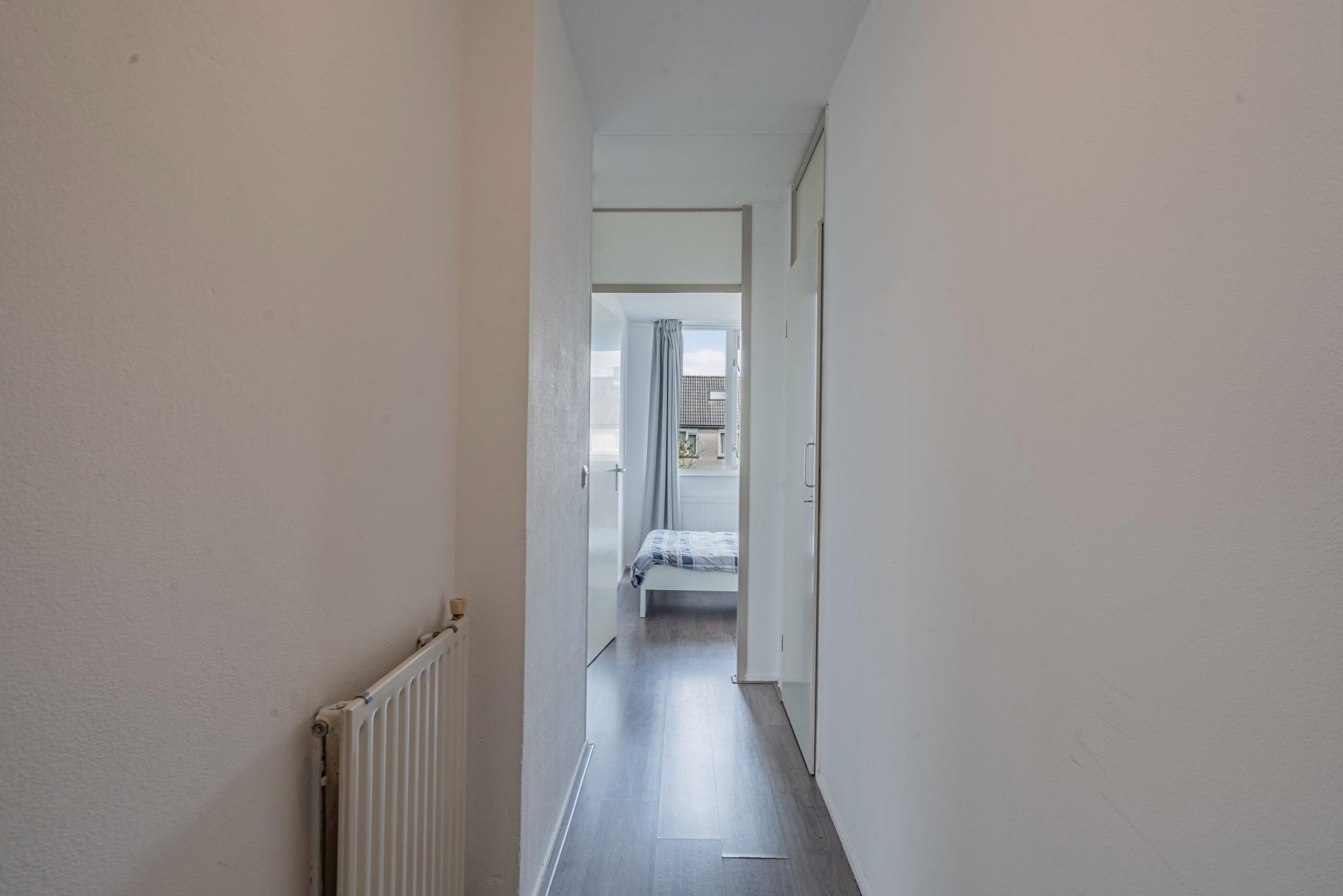 Via de gang bereik je een grote provisie/stookruimte en aansluiting wasmachine en droger, separaat toilet (2020), gemoderniseerde badkamer (2020) met douche en wastafelmeubel en twee royale slaapkamers aan de achterzijde van het appartement.