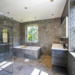 Verder bevinden zich op deze verdieping drie royale slaapkamers, elk uitgerust met een eigen inloopkast en een tweede ruime badkamer met een regendouche, ligbad en dubbele wastafel en een separaat toilet.