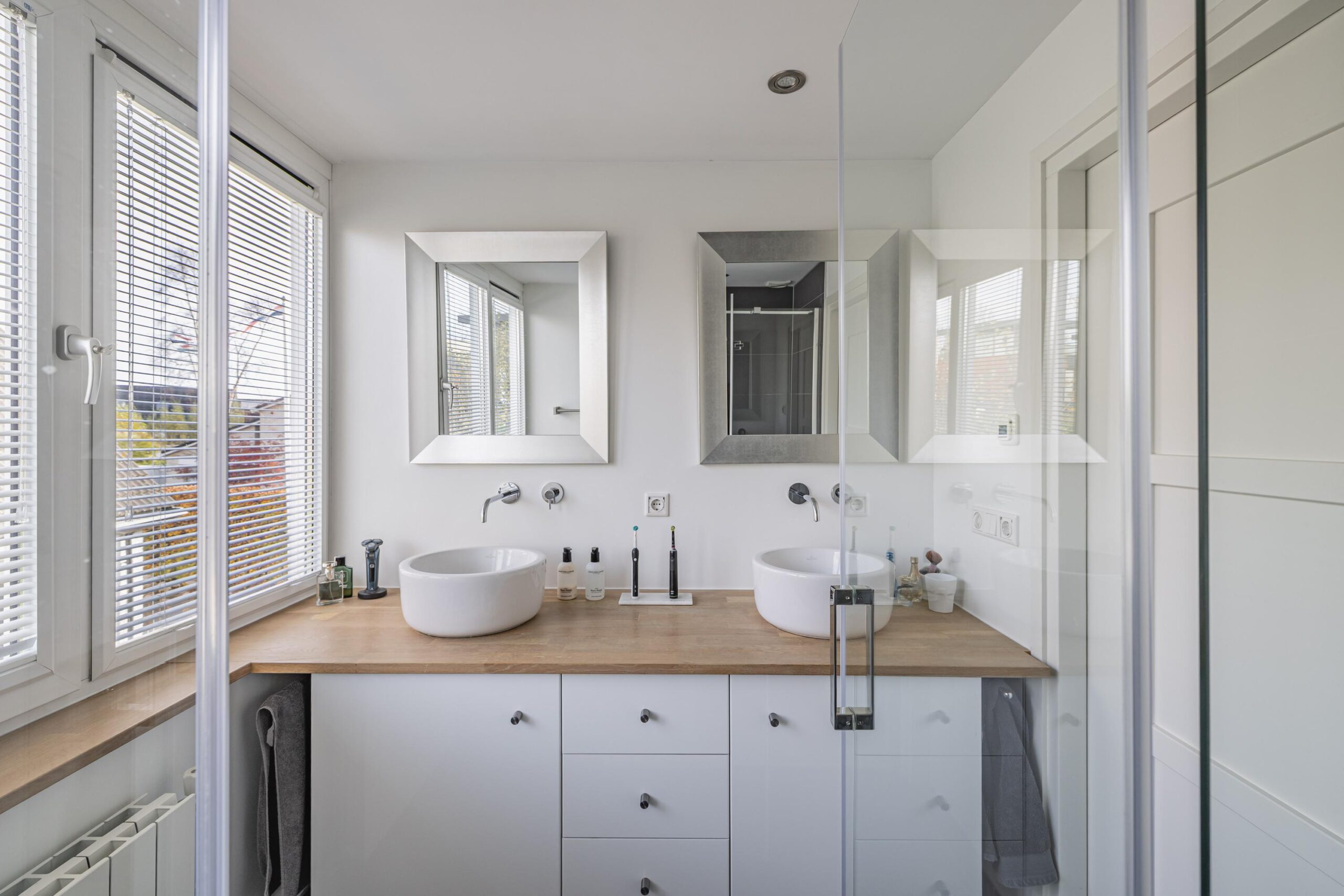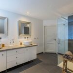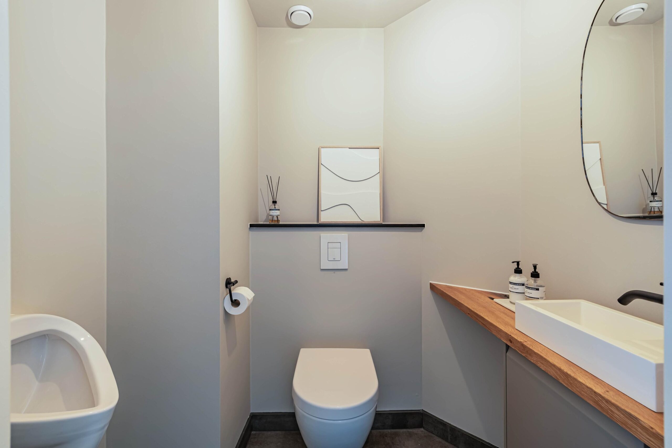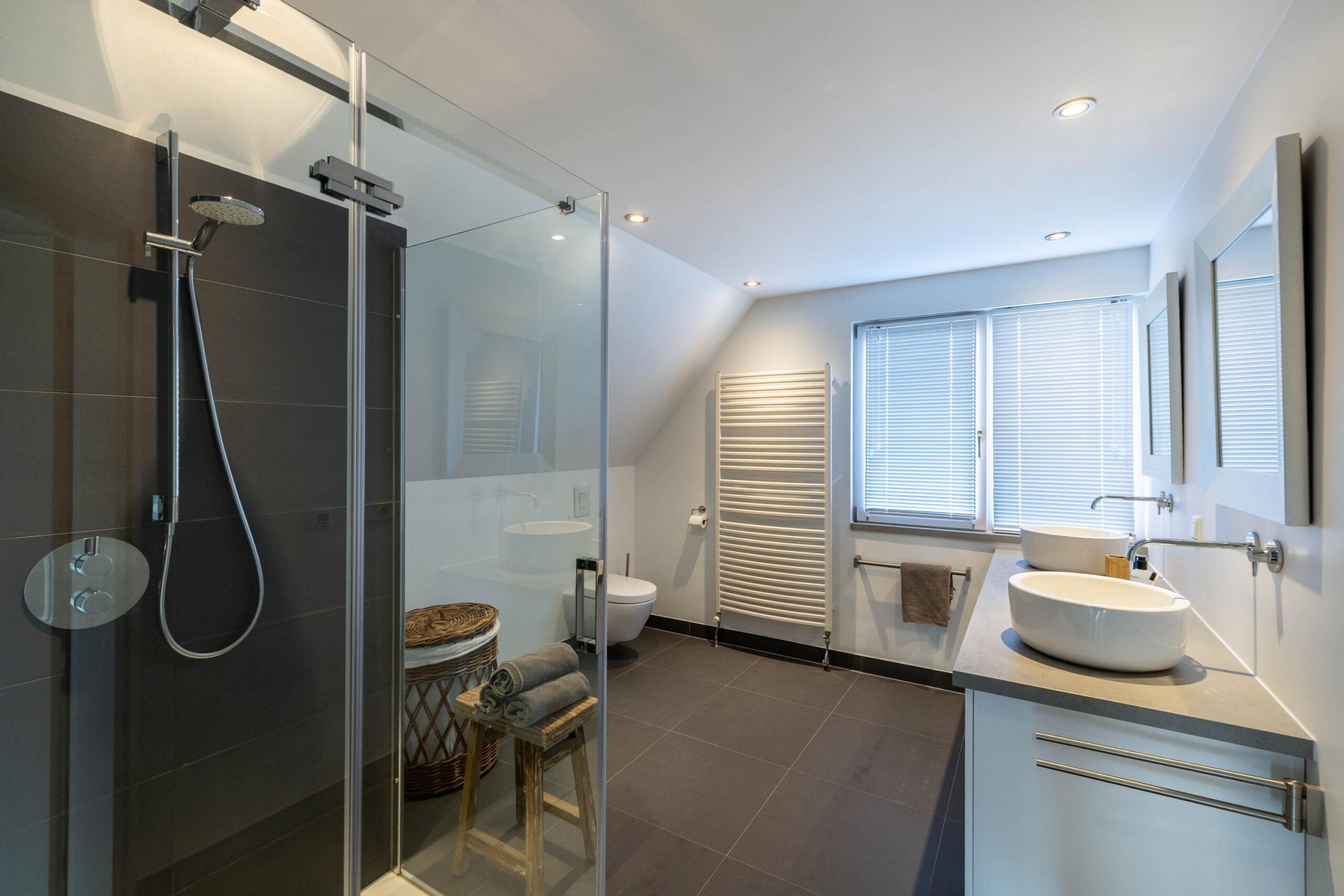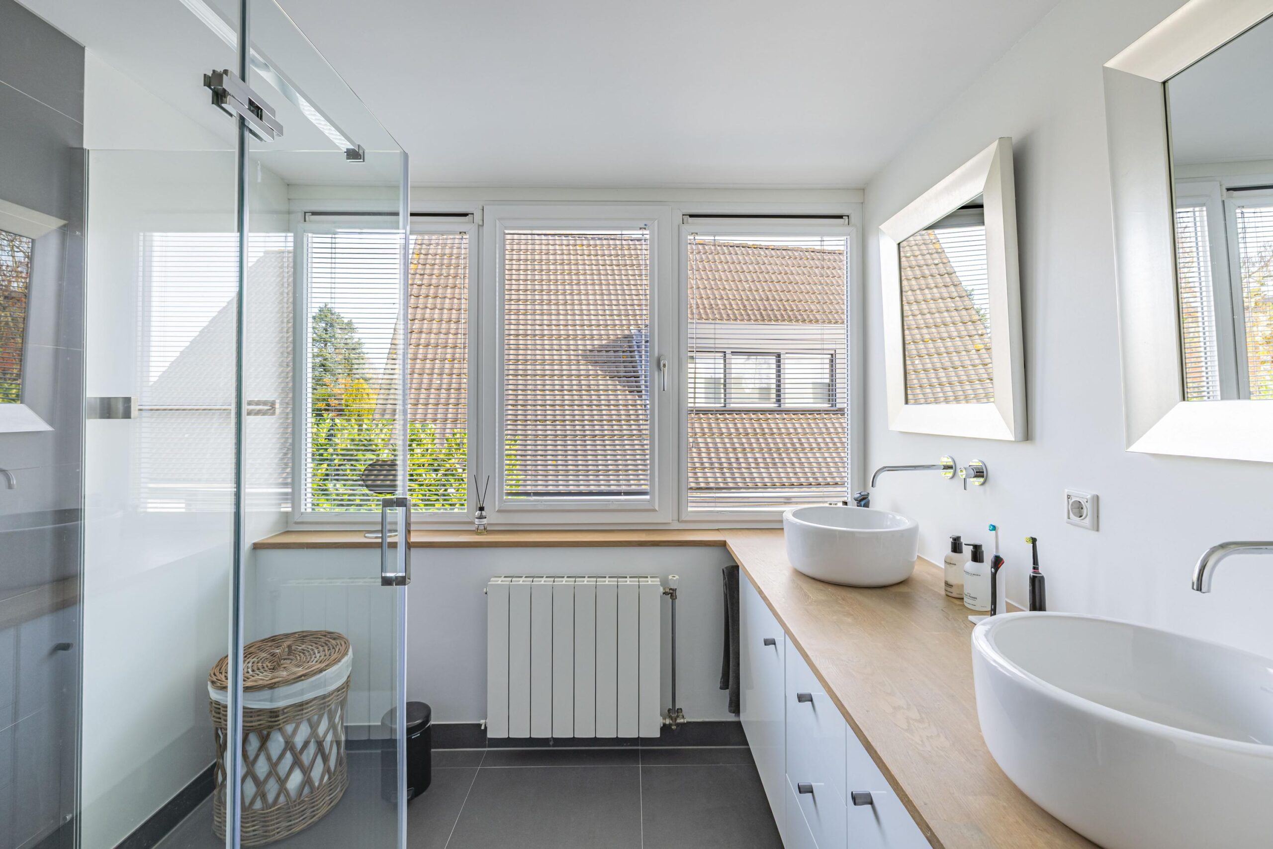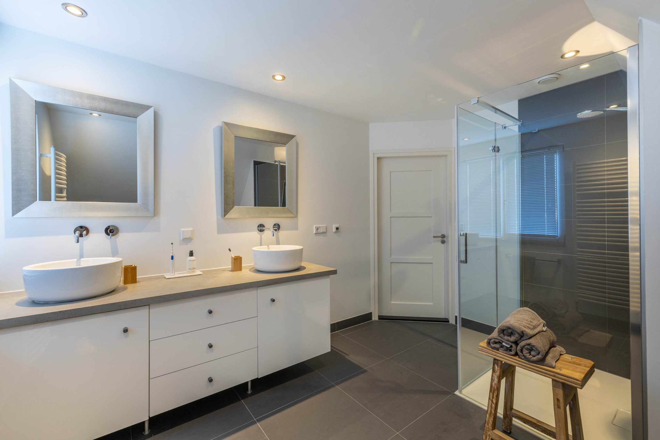 Ruime overloop, 4 royale slaapkamers, 2 moderne badkamers met inloopdouche, dubbele wastafel met meubel, vloerverwarming en 1 badkamer met toilet. De gehele 1ste verdieping is voorzien van een eikenhouten vloer.