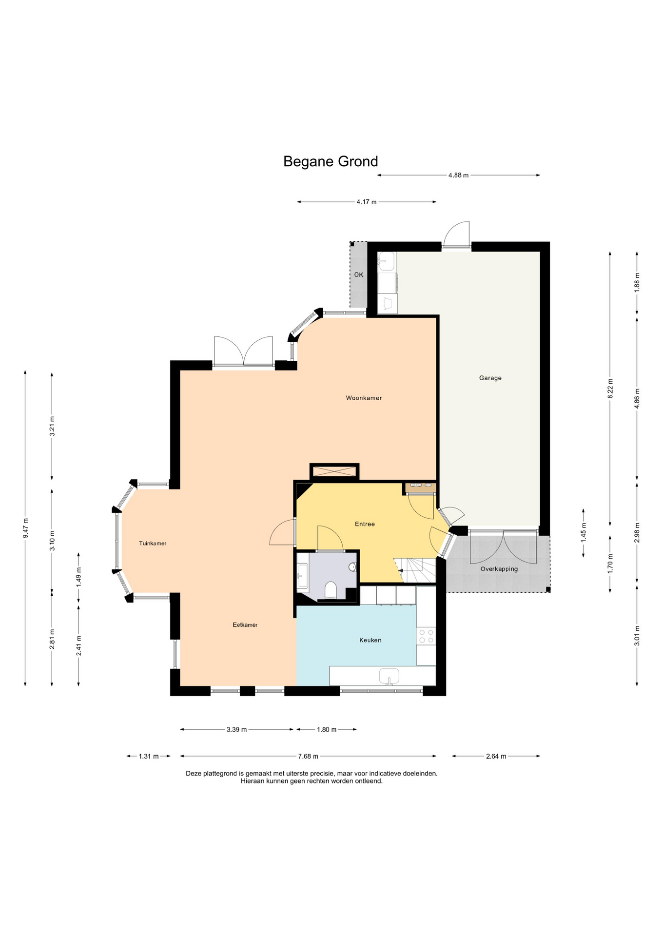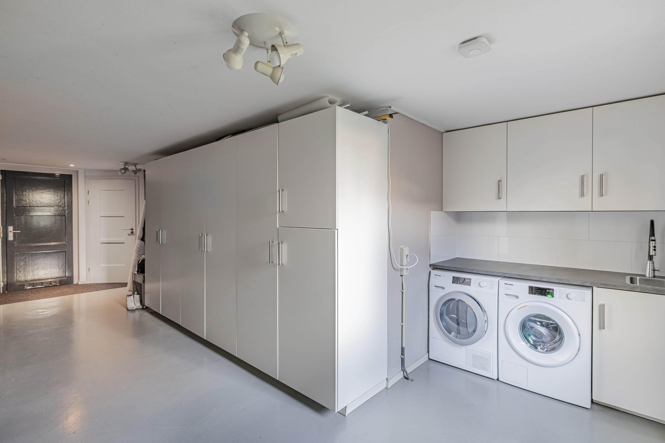 Ruime hal, modern toilet met extra urinoir en een fontein, toegang naar de grote garage met de wasmachine- en droger aansluiting, royale woonkamer met een moderne open haard van Kalfire, openslaande deuren naar de achtertuin, eetkamer met serre, moderne complete keuken voorzien van alle apparatuur en stenen aanrechtblad, op de begane grond ligt een fraaie eikenhouten vloer, in de keuken een nette plavuizen vloer, de heerlijke tuin is voorzien van een overkapping met houtkachel en een heerlijke zonneterras.