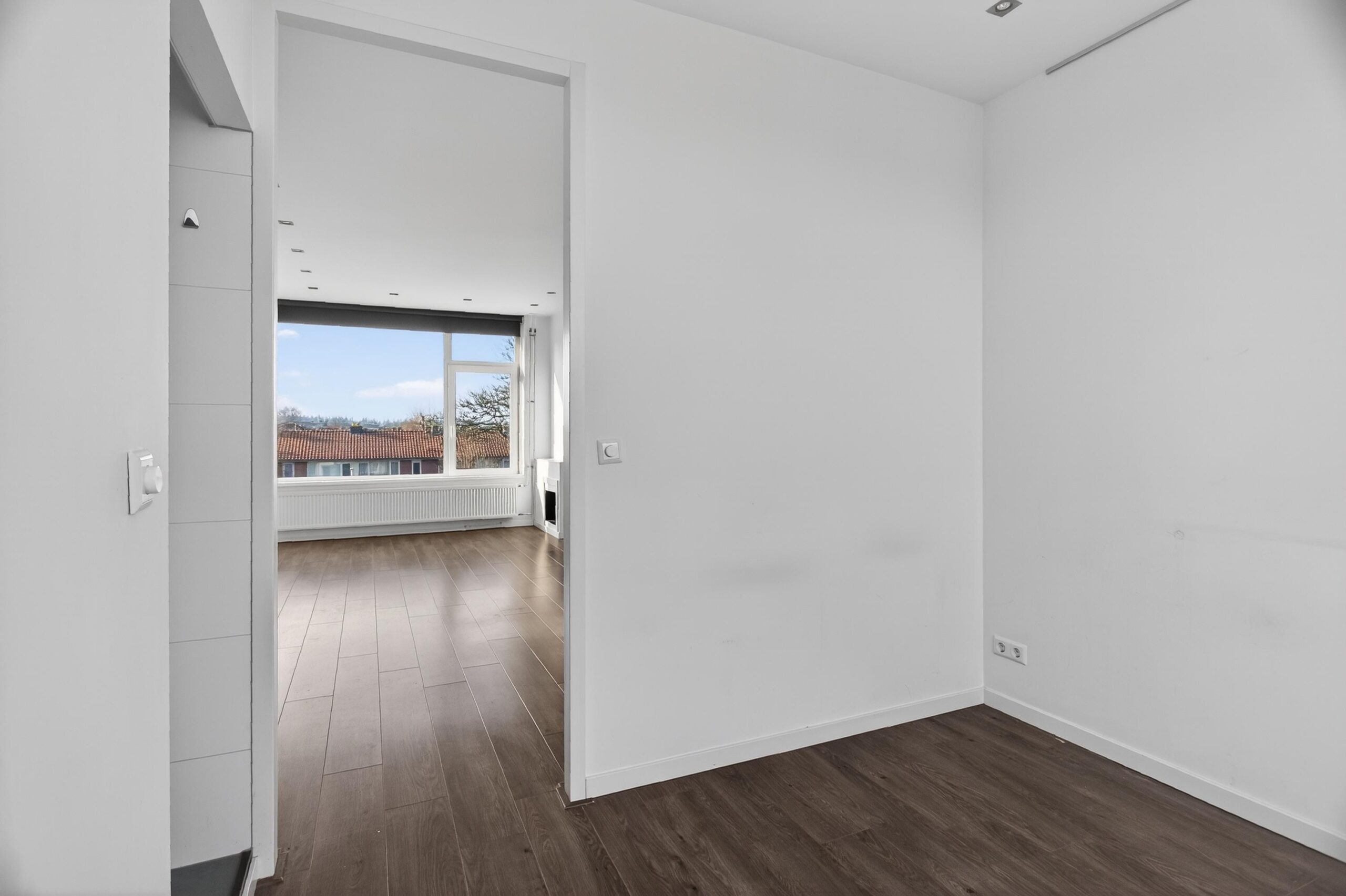 De woonkamer met eetgedeelte is heerlijk licht en voelt ruim aan. Vanuit hier stap je zo de loggia op, een fijne, beschutte plek om het hele jaar door buiten te zitten. De slaapkamer ligt rustig en heeft een prettig formaat.