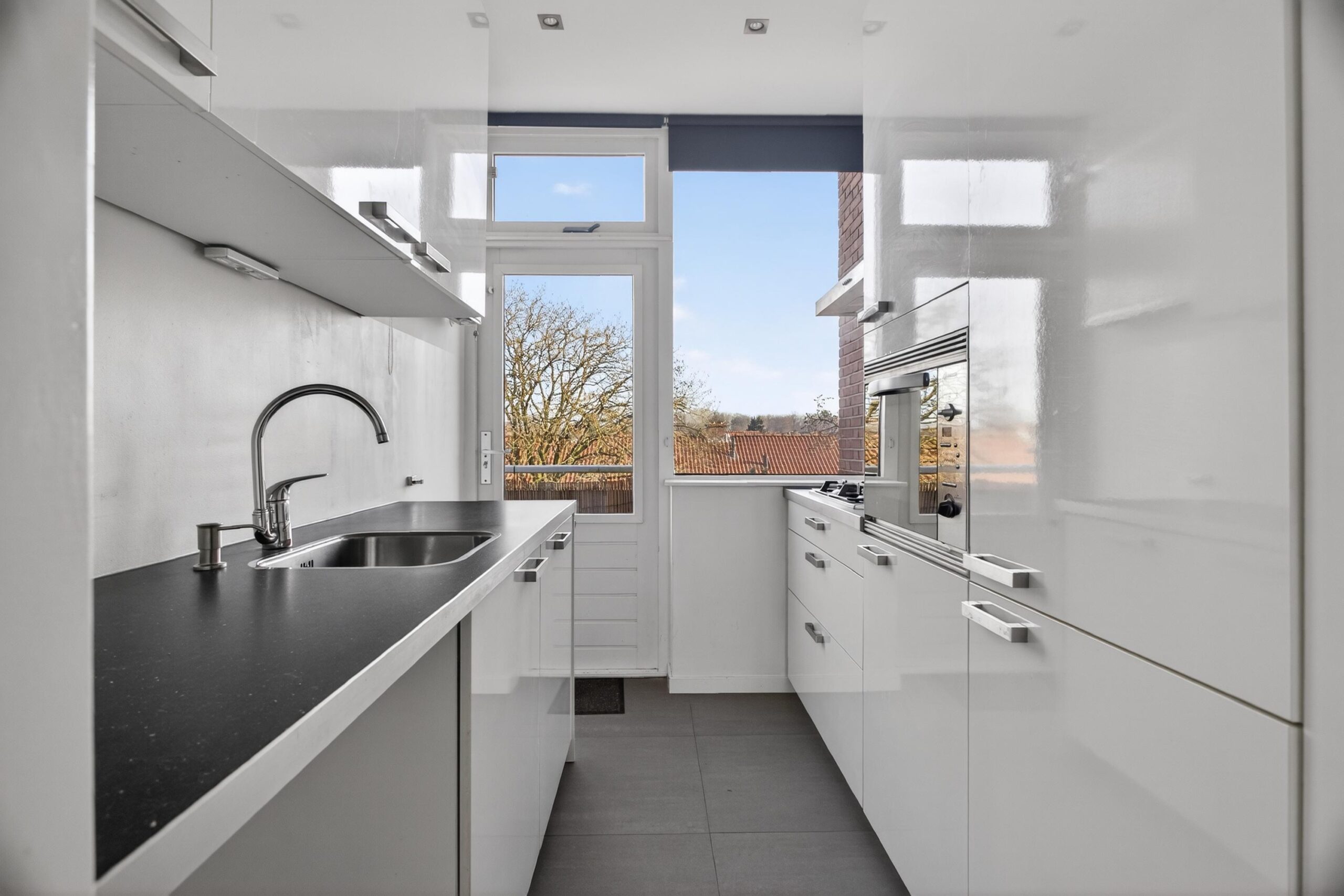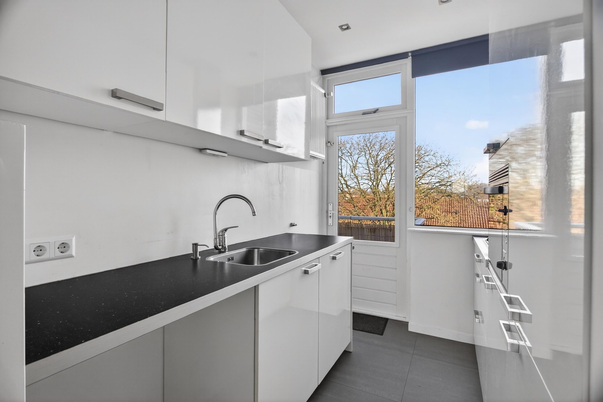 De woning beschikt over twee buitenruimtes: aan de voorzijde vind je het balkon, een heerlijke plek om ’s ochtends van de zon te genieten. Aan de achterzijde ligt de loggia: beschut gelegen en een mooi verlengstuk van de woonkamer.