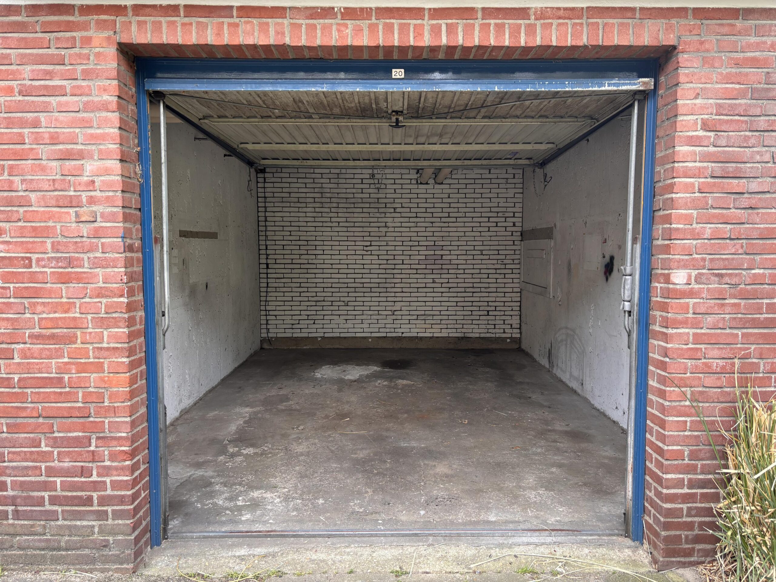 De garagebox (nr. 20) beschikt over een binnenmaat van circa 3,63 x 5,15 meter en is daarmee geschikt voor het stallen van een auto, motor of als extra opslagruimte. De garagedeur heeft een maximale doorrijmaat van circa 2,24 meter breed en 2,10 meter hoog.