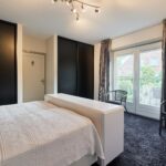 De overloop geeft toegang tot de eerste slaapkamer, die doorgang biedt naar de tweede en derde slaapkamer. Vanuit de derde kamer is de vierde riante slaapkamer met ruime berging bereikbaar. Deze kamer is tevens toegankelijk via een tweede trapopgang vanuit de woon-/eetkamer. Op deze verdieping bevindt zich bovendien een tweede badkamer met douche, wastafel en toilet.