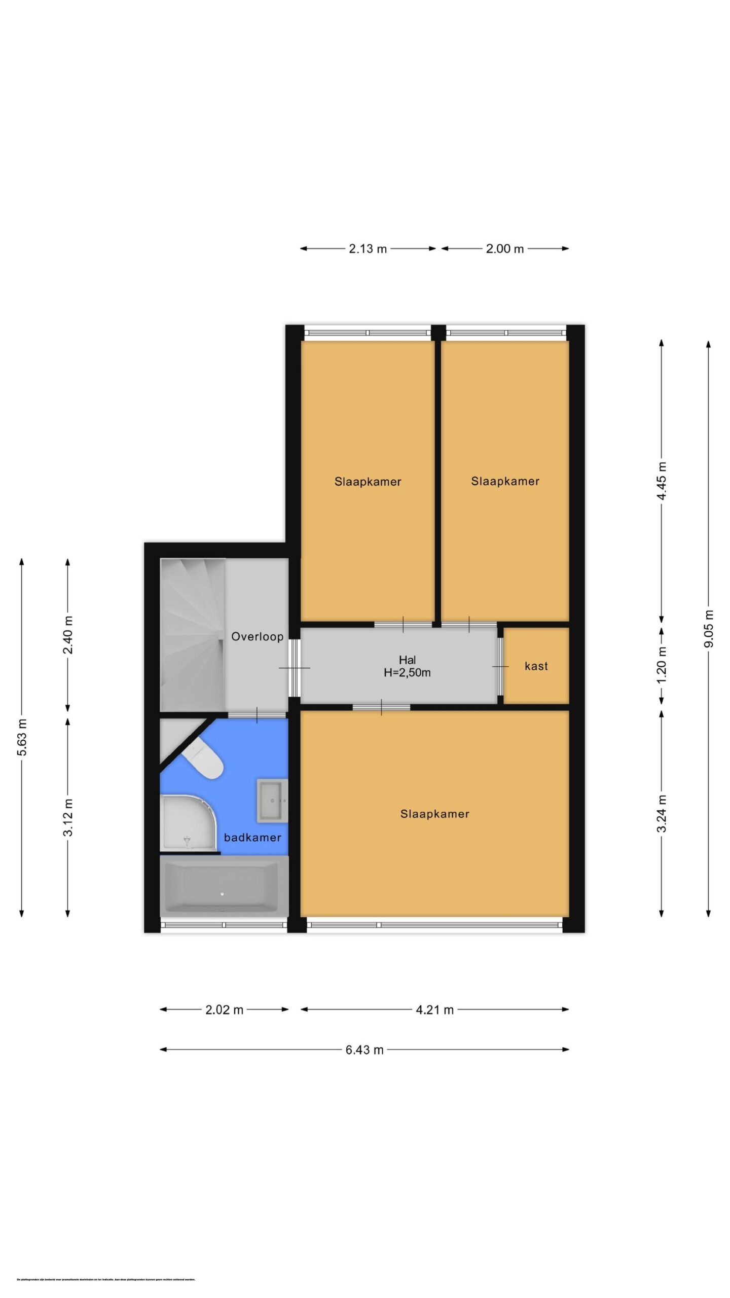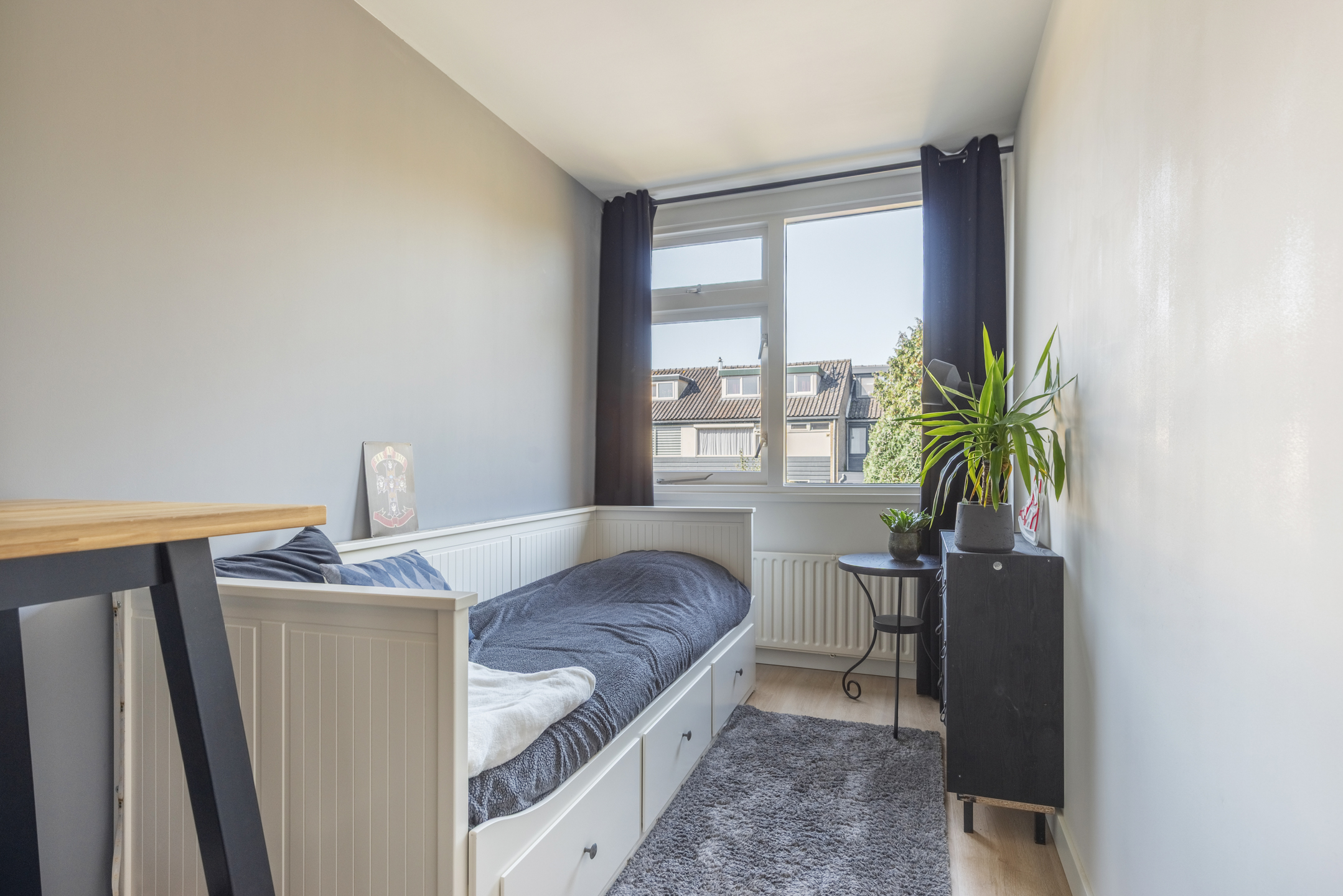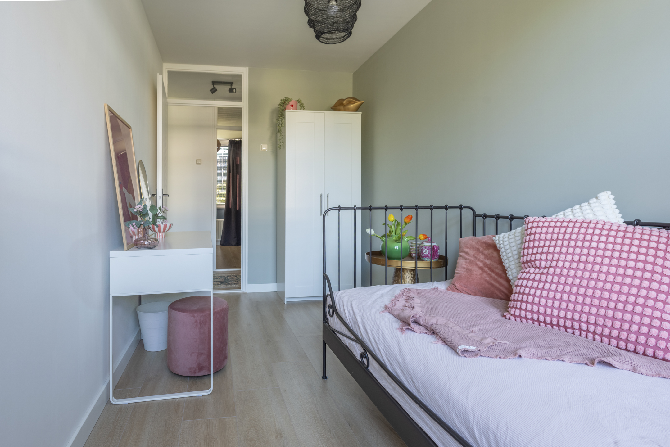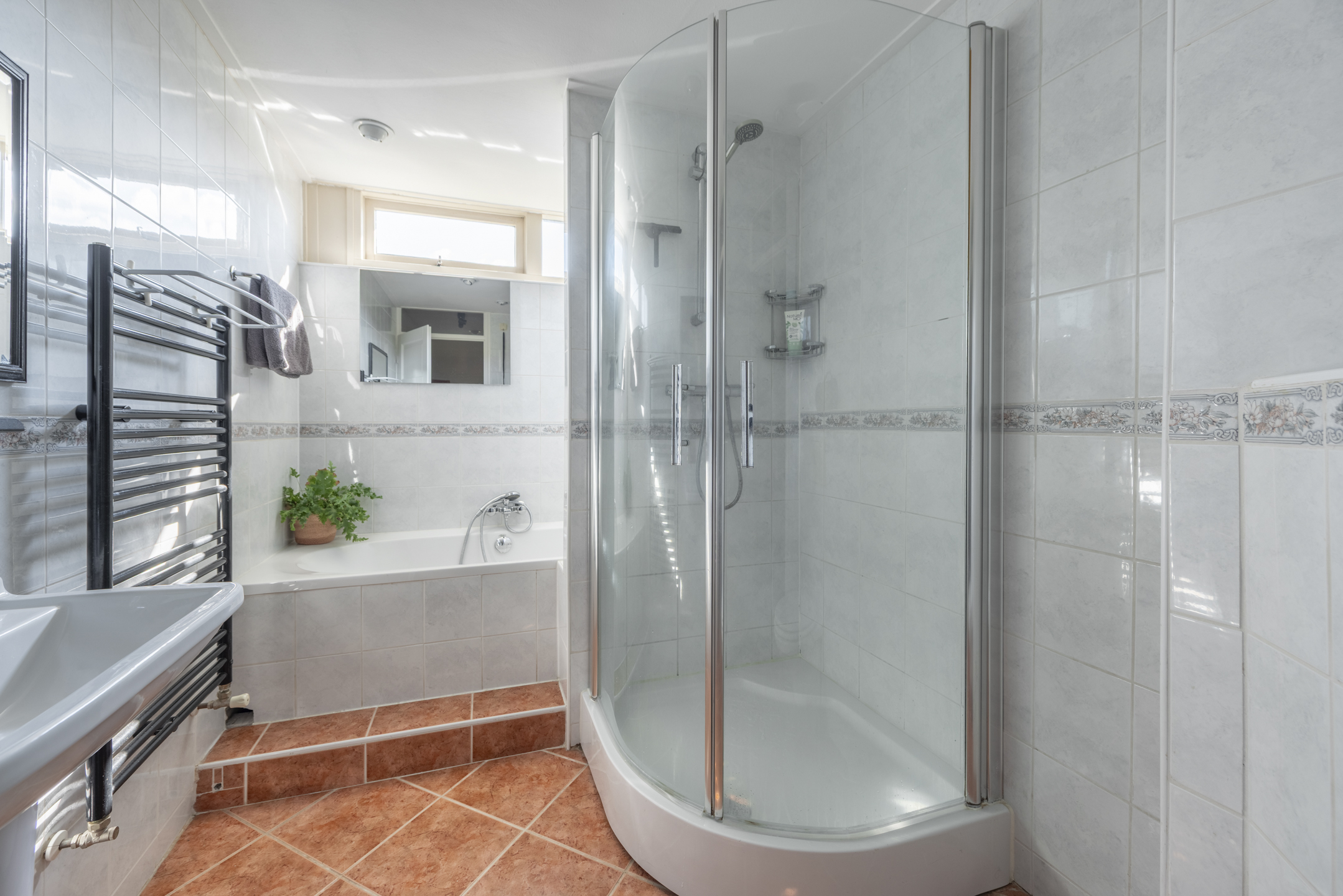 Overloop met diepe kast, royale ouderslaapkamer aan de voorzijde en twee slaapkamers aan de achterzijde. De vernieuwde badkamer (gereed bij aanvang huur) beschikt over een ligbad, douche, wastafel en toilet.
