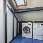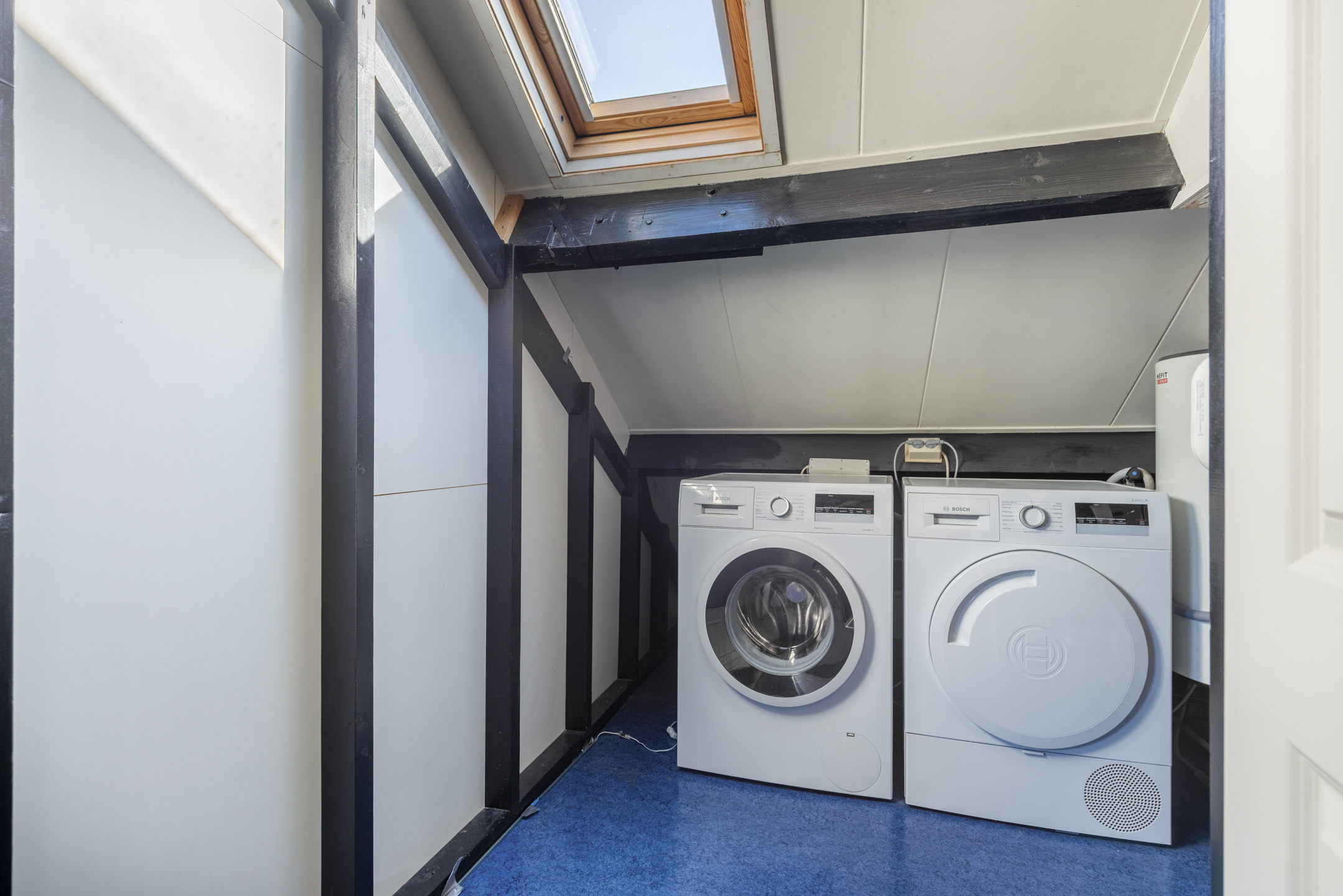 Via een vaste trap naar de ruime zolderverdieping met overloop, vierde ruime slaapkamer met bergruimte en een separate stook-/bergruimte met opstelling voor wasmachine en droger.