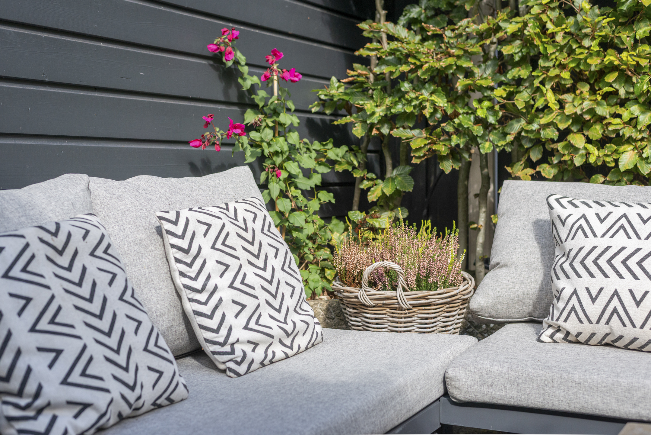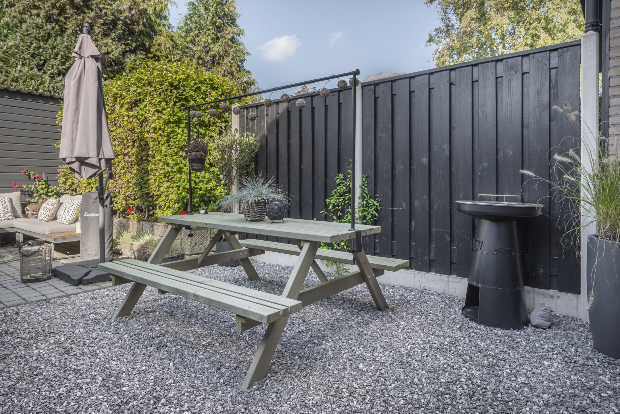 - Fraai aangelegde zonnige achtertuin op het westen met achterom