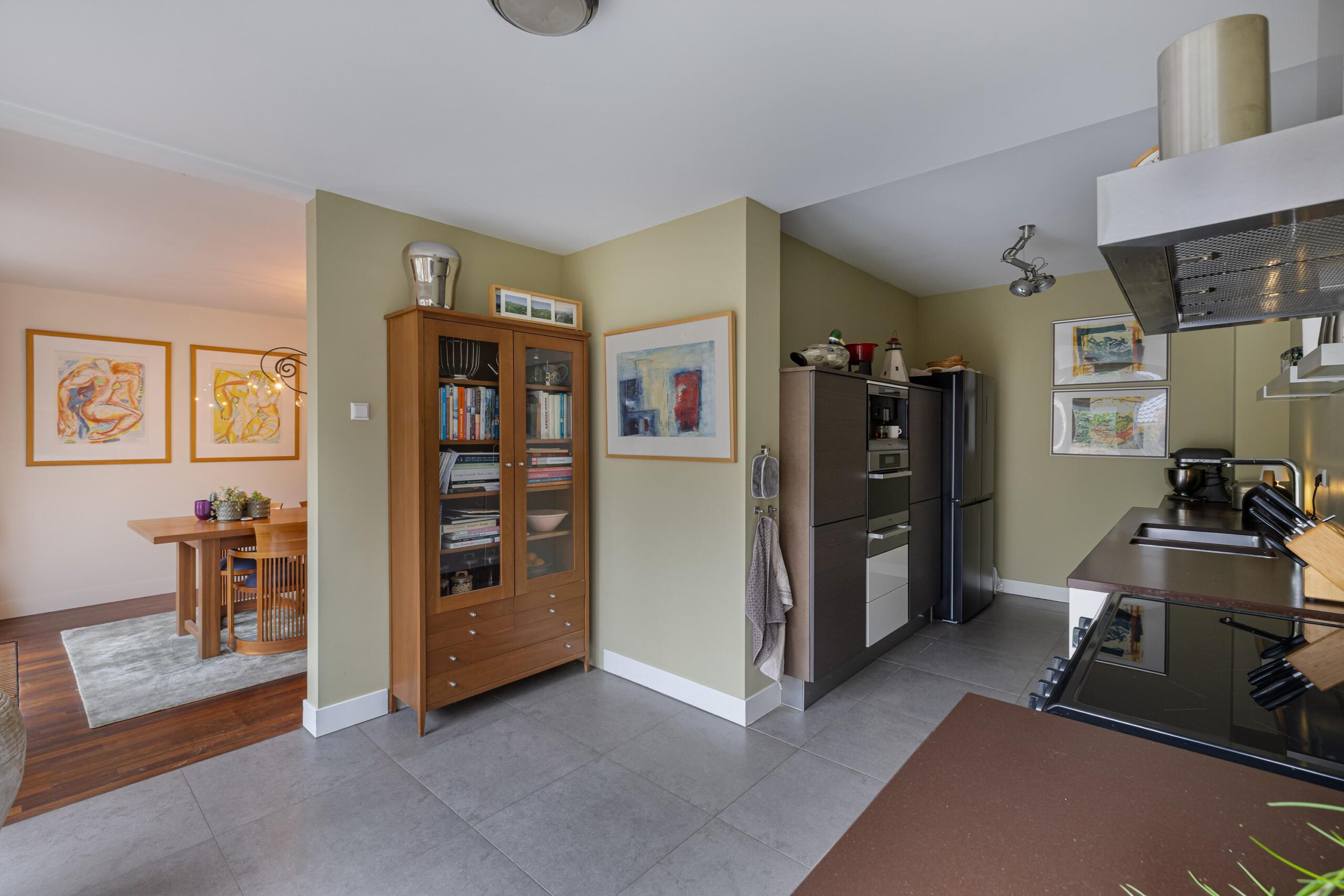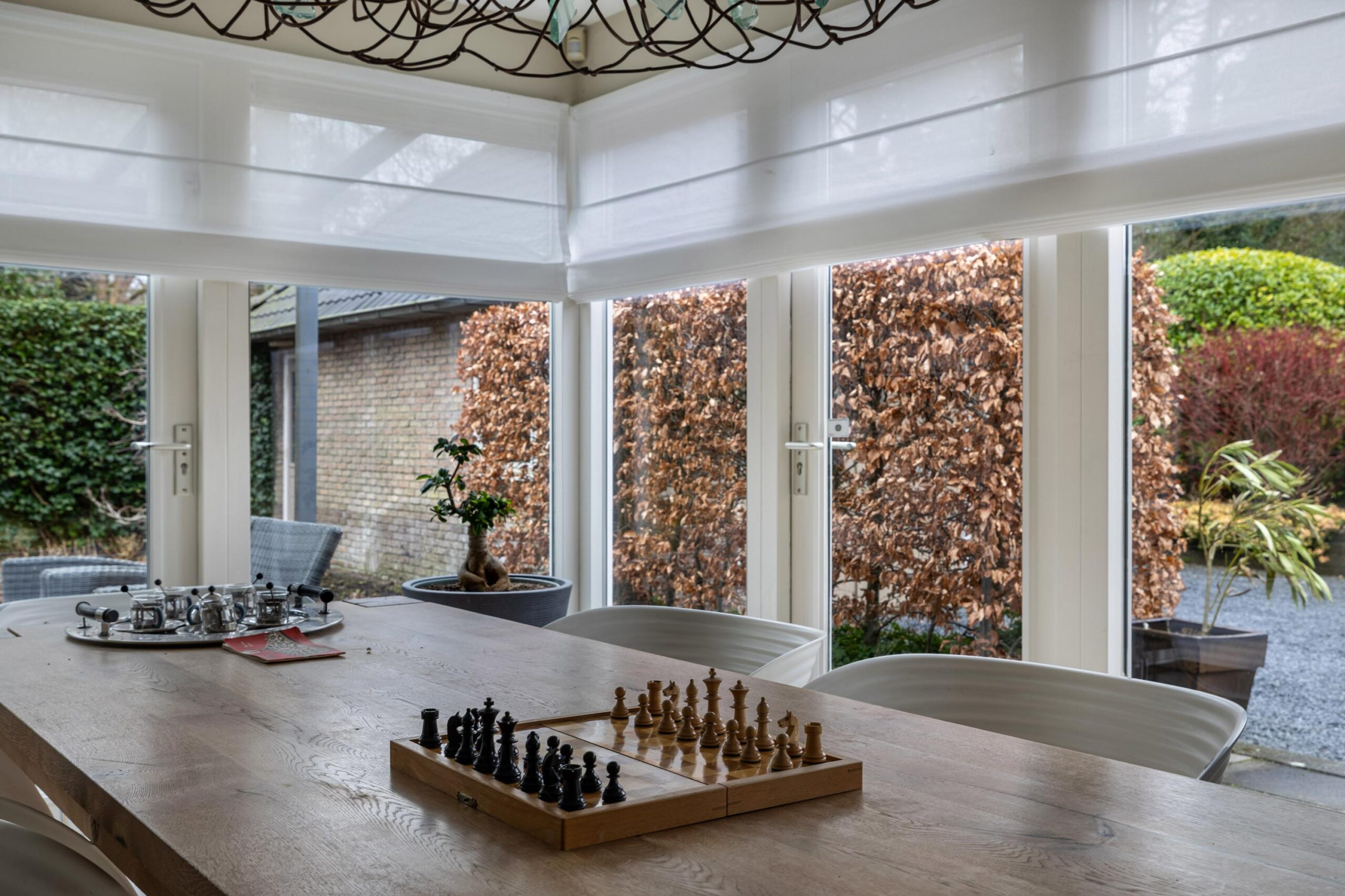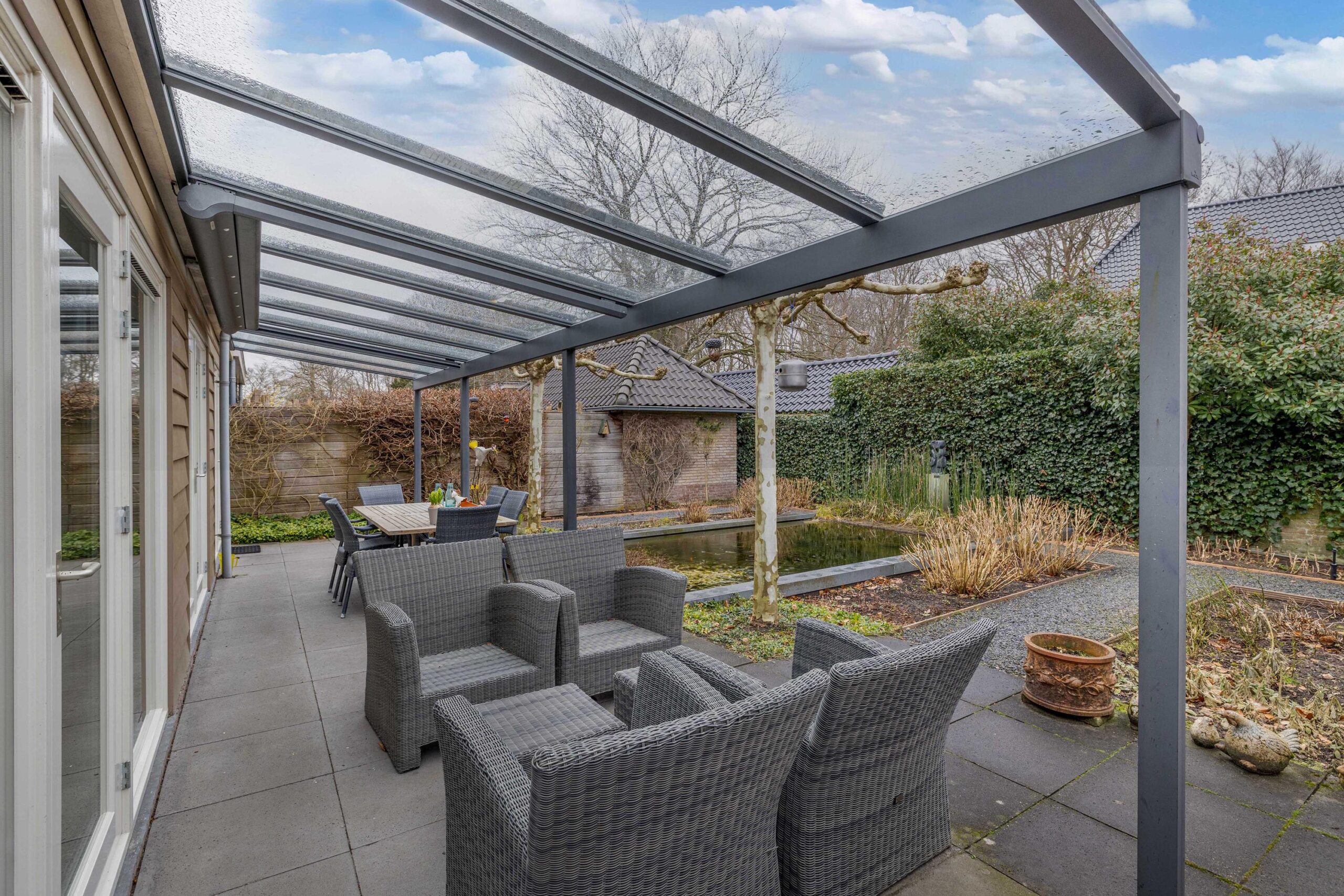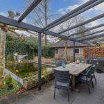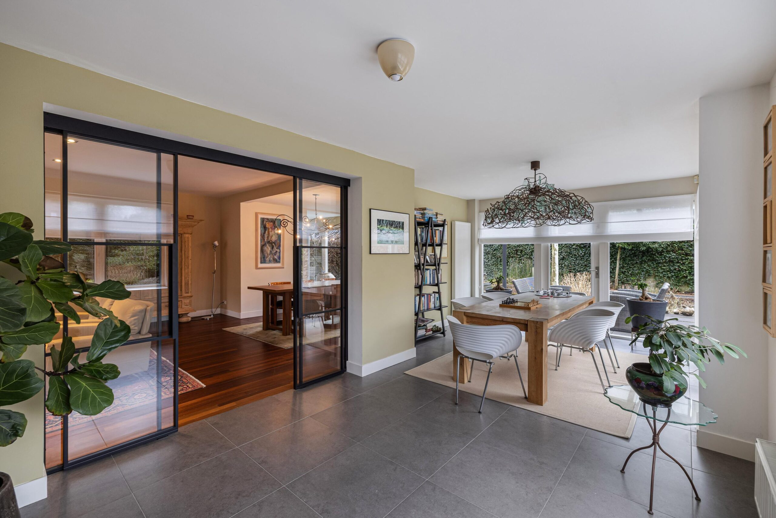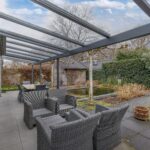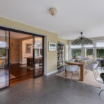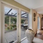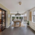 Vanuit de woonkamer is de gemoderniseerde aangebouwde 2de eetkamer te betreden. Deze ruimte heeft een prachtige uitstraling, is zeer licht door zijn vele glas en heeft deuren naar de zij- en achtertuin