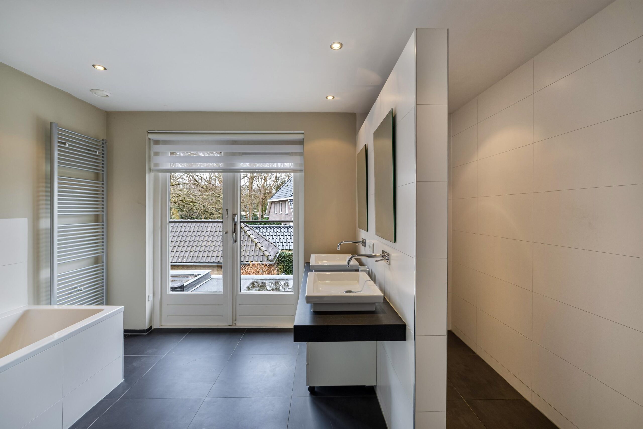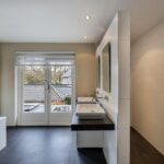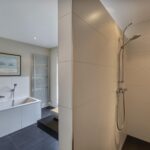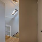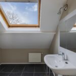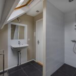 overloop met opstelling van de nieuwe CV ketel uit 2025, 2e badkamer met inloopdouche, wastafel en dakraam, ruime slaapkamer met dakraam.