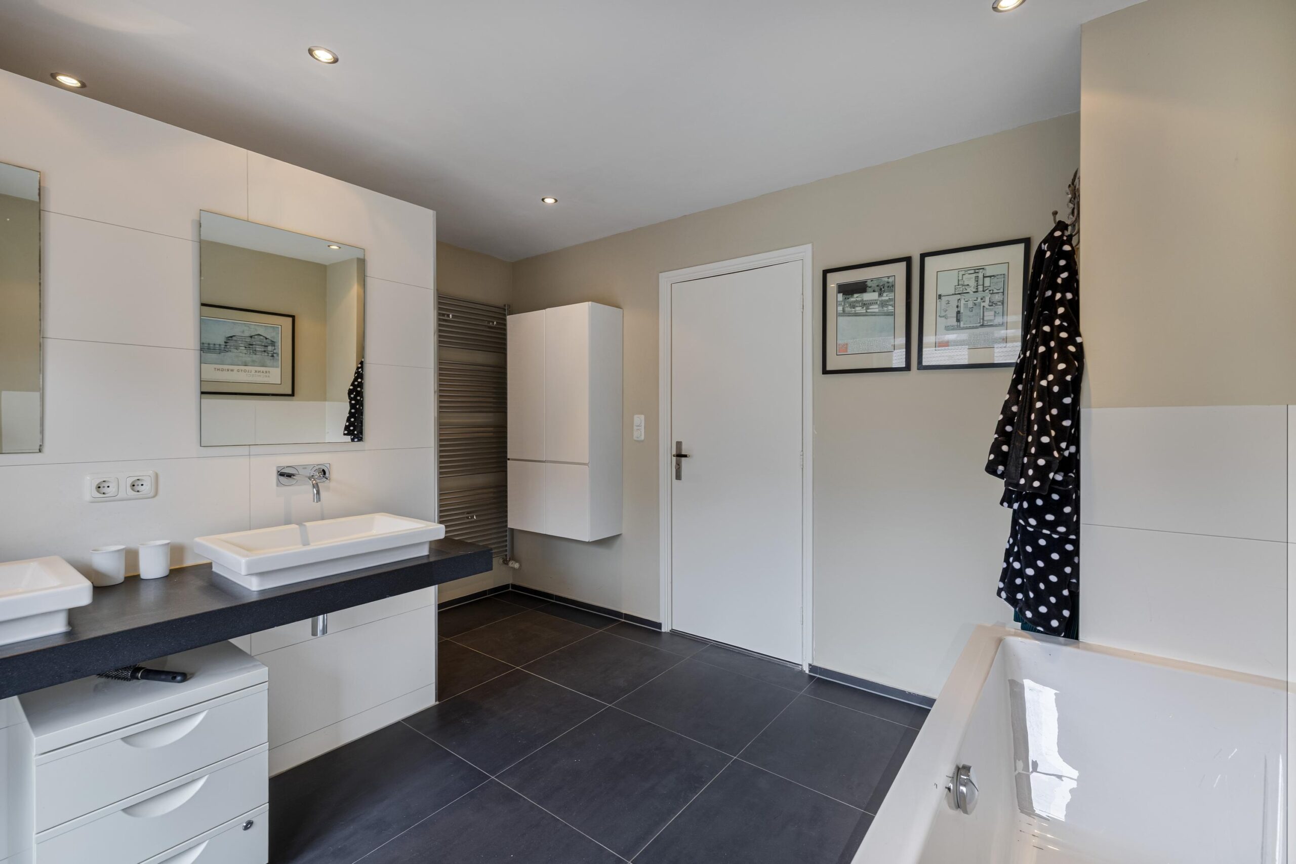 Overloop met toilet, ruime slaapkamer aan de achterzijde met balkon, 2e ruime slaapkamer met doorloop naar een inloopkast. Kleine slaapkamer aan voorzijde welke nu in gebruik is als inloopkledingkast. Gemoderniseerde badkamer met een heerlijk ligbad, dubbele wastafel, inloopdouche en handdoekenradiator.