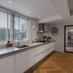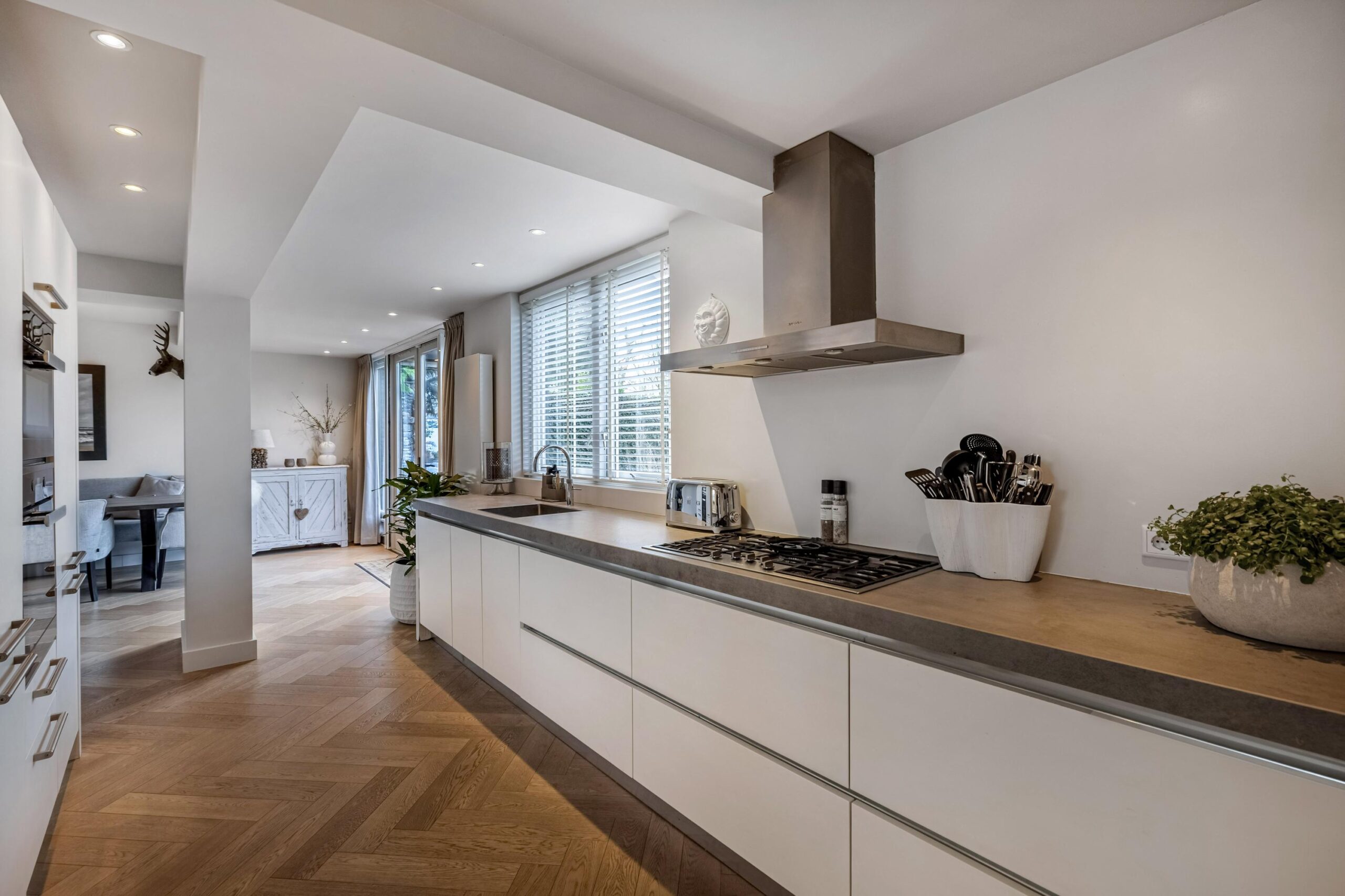 De keuken is voorzien van allerlei Miele apparatuur zoals koelkast, vaatwasser, oven, magnetron en 5-pits gaskookplaat