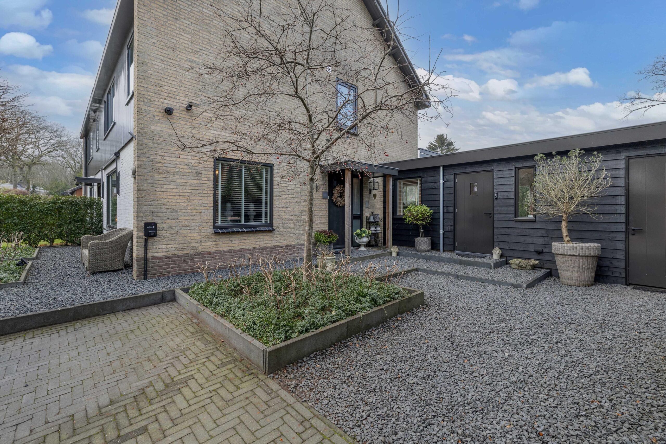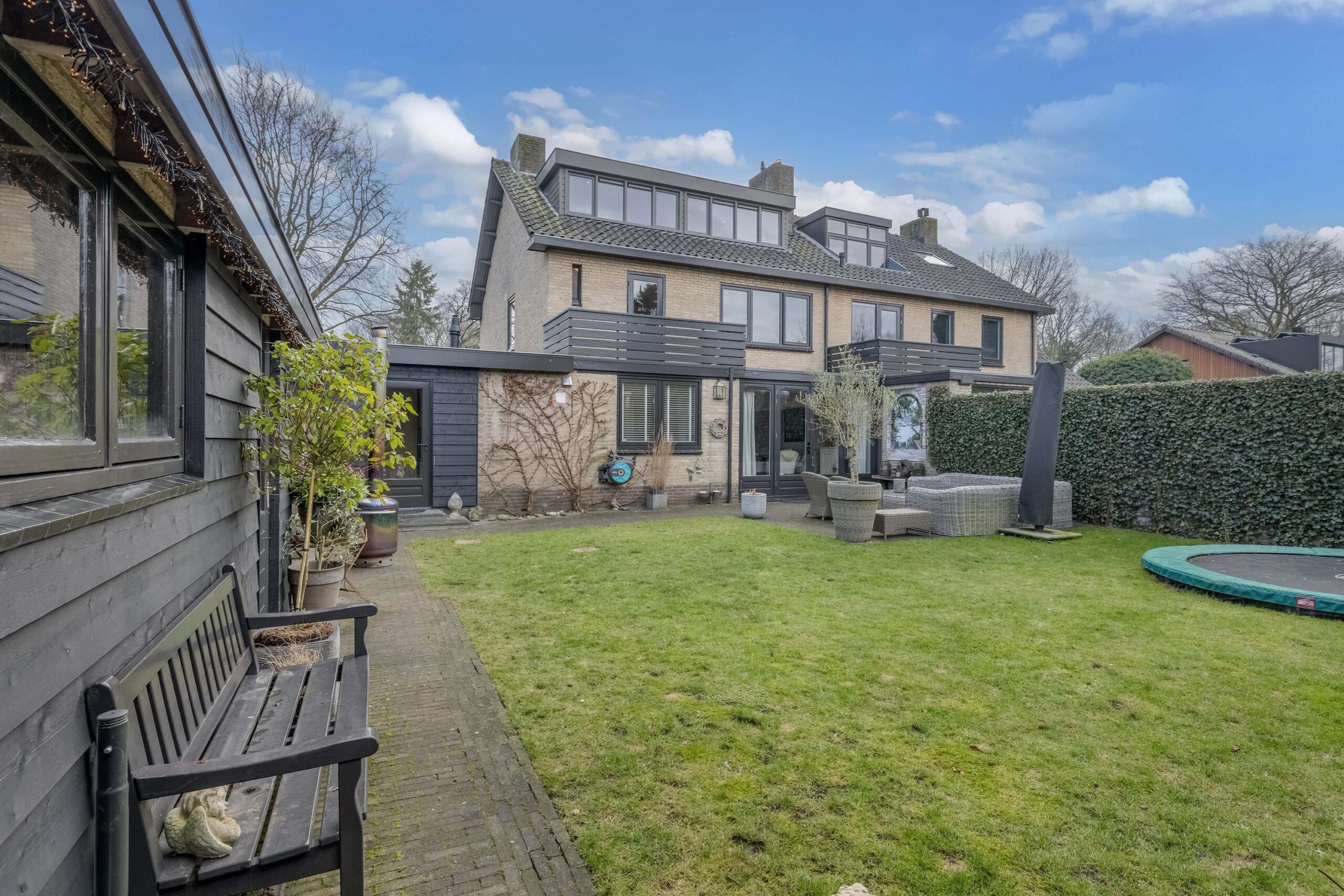 De voor- en achtertuin zijn toegankelijk via een deur in de berging.