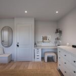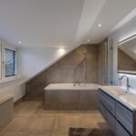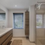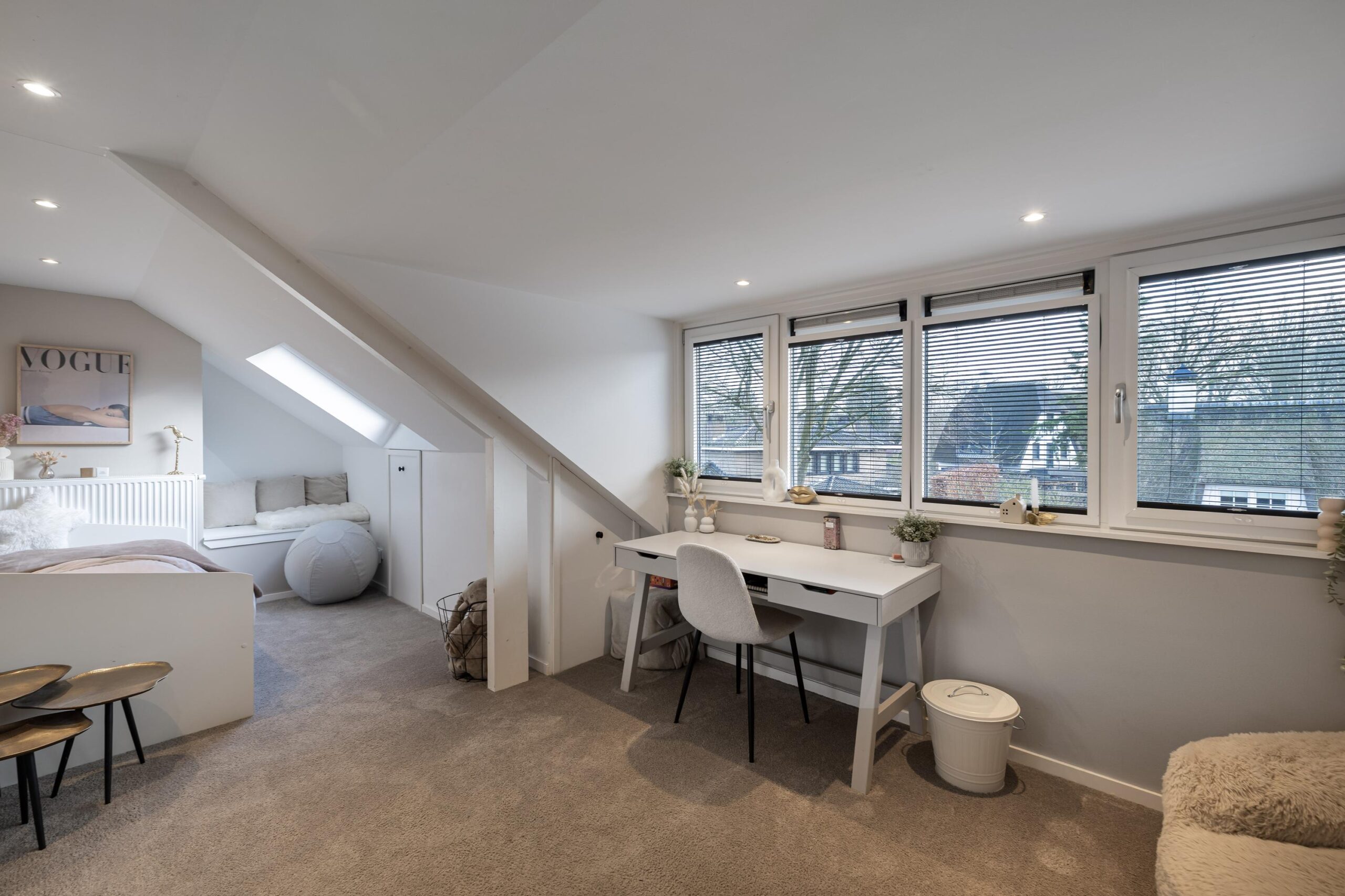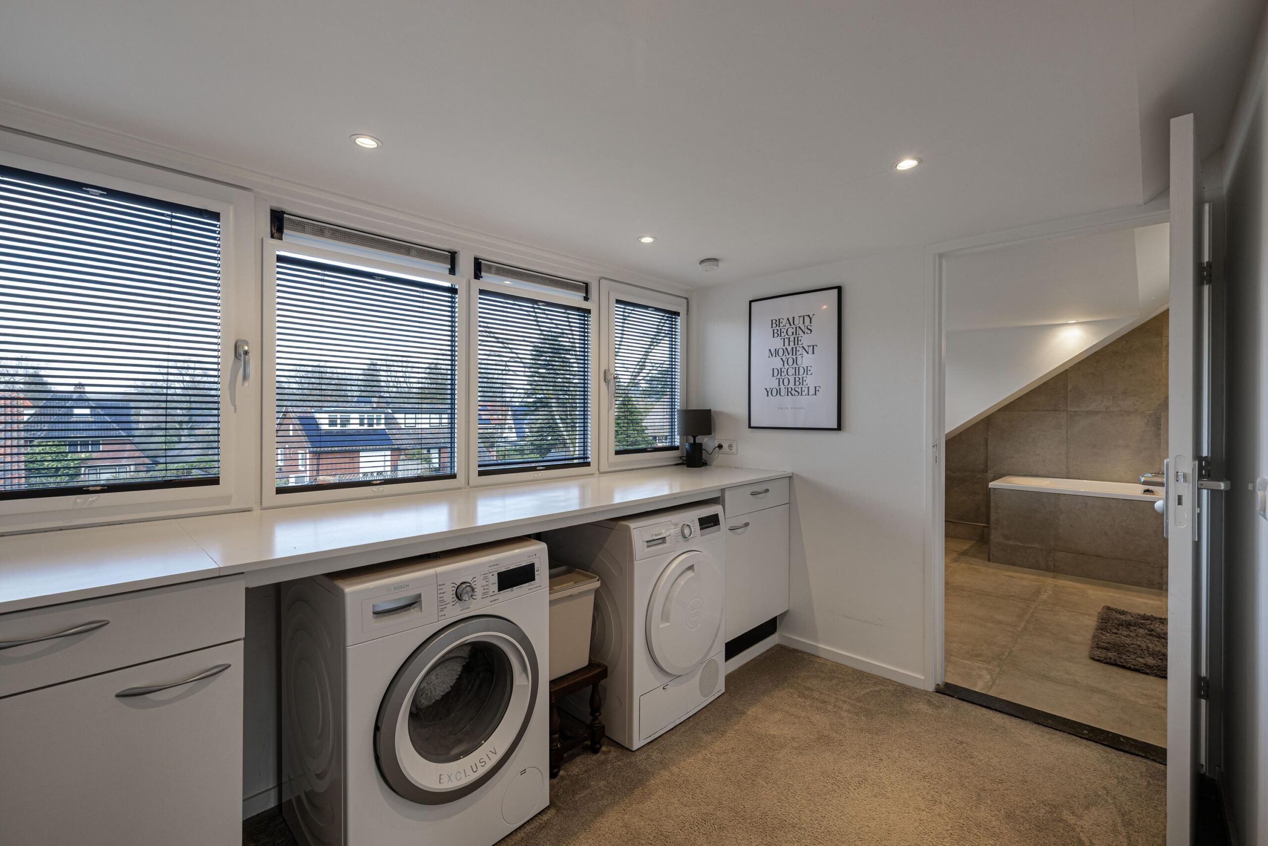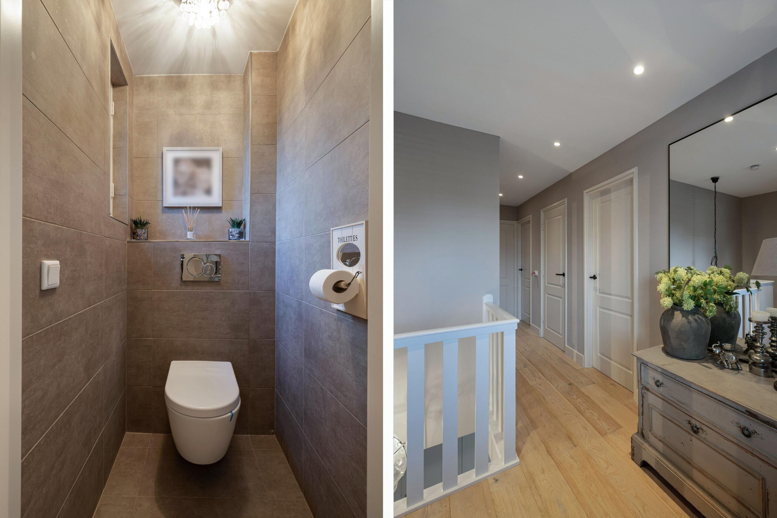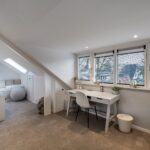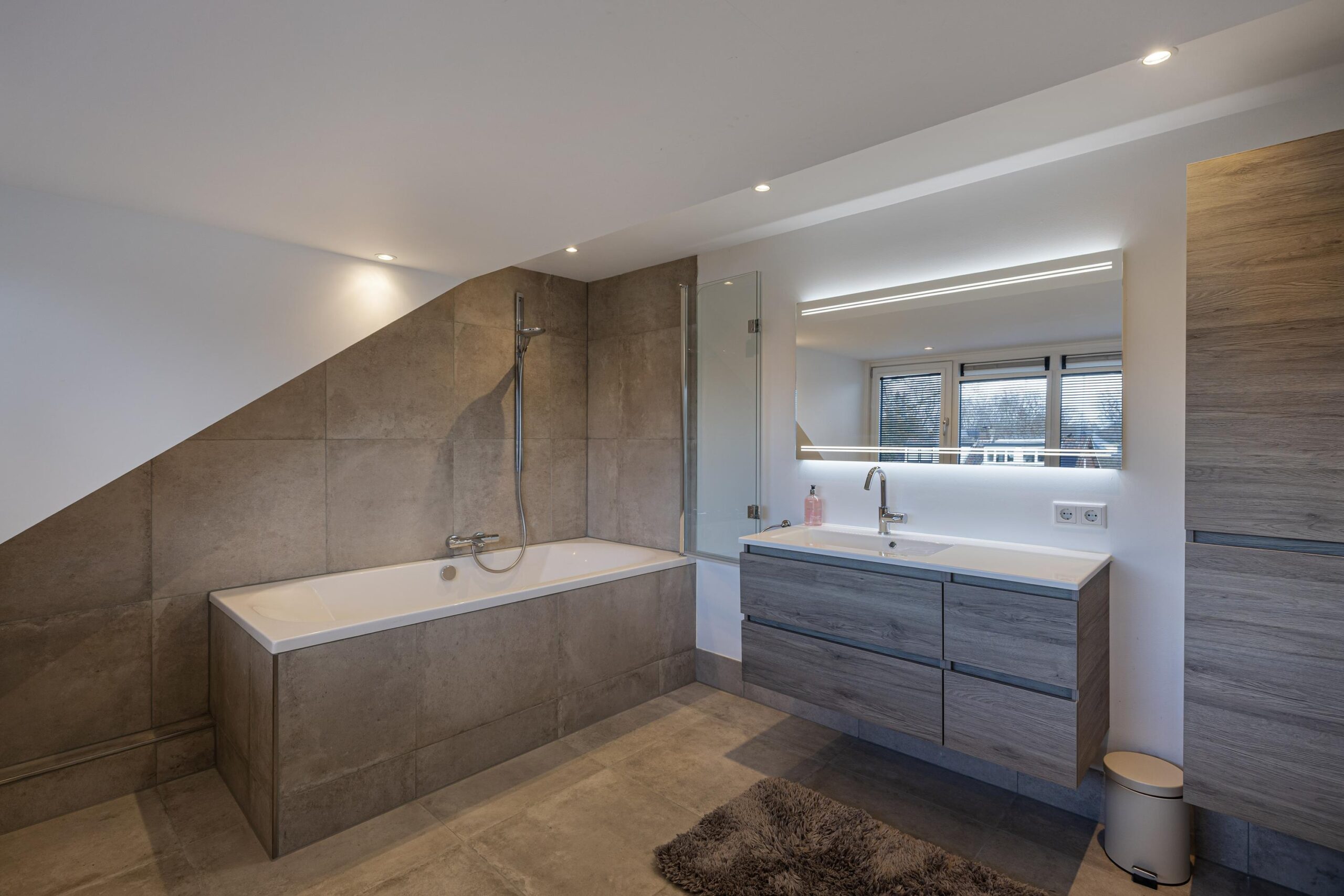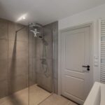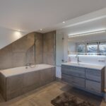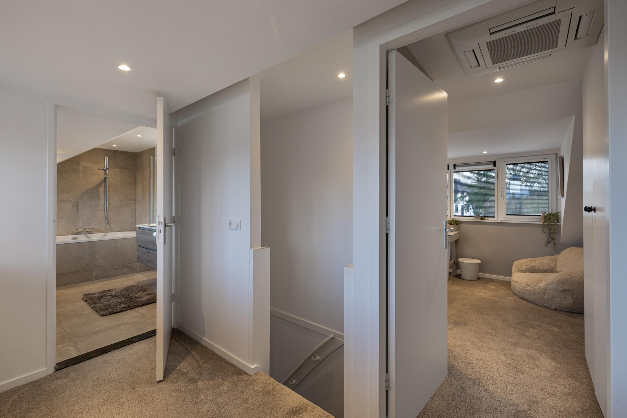 Grote dakkapellen aan beide zijden van het dak, ruime overloop met bergruimte en aansluiting voor de wasmachine en droger, 2e badkamer met jacuzzi, dubbele wastafelmeubel en elektrische vloerverwarming.
