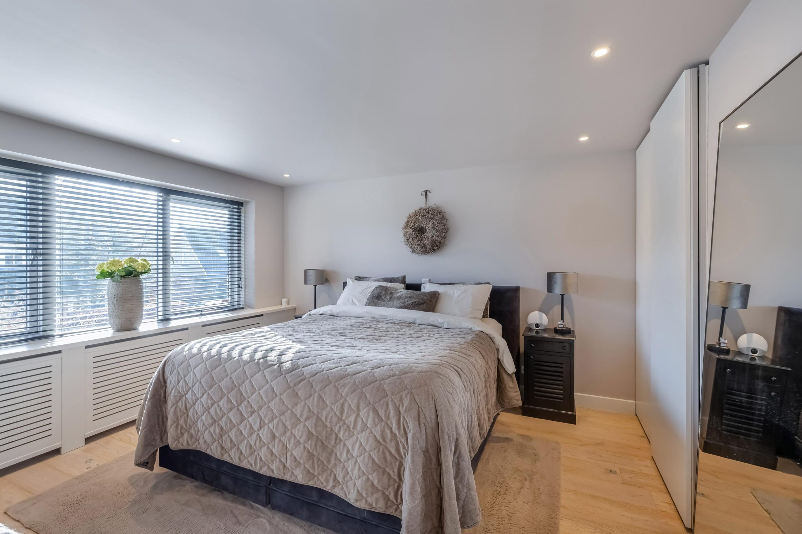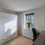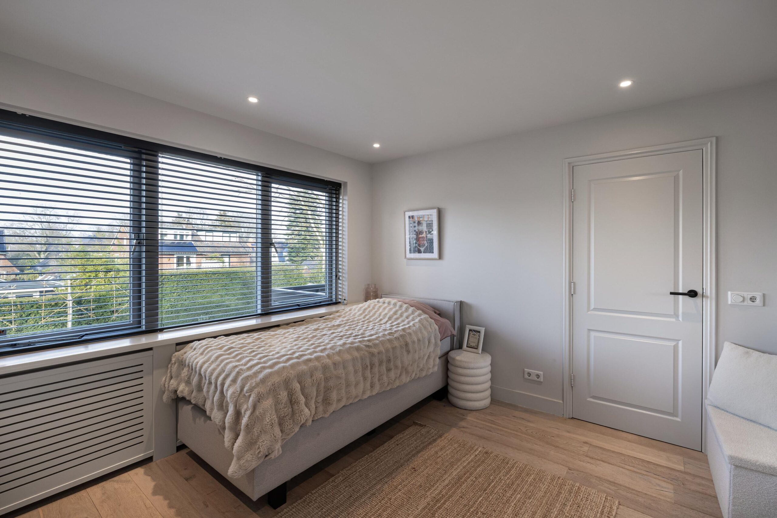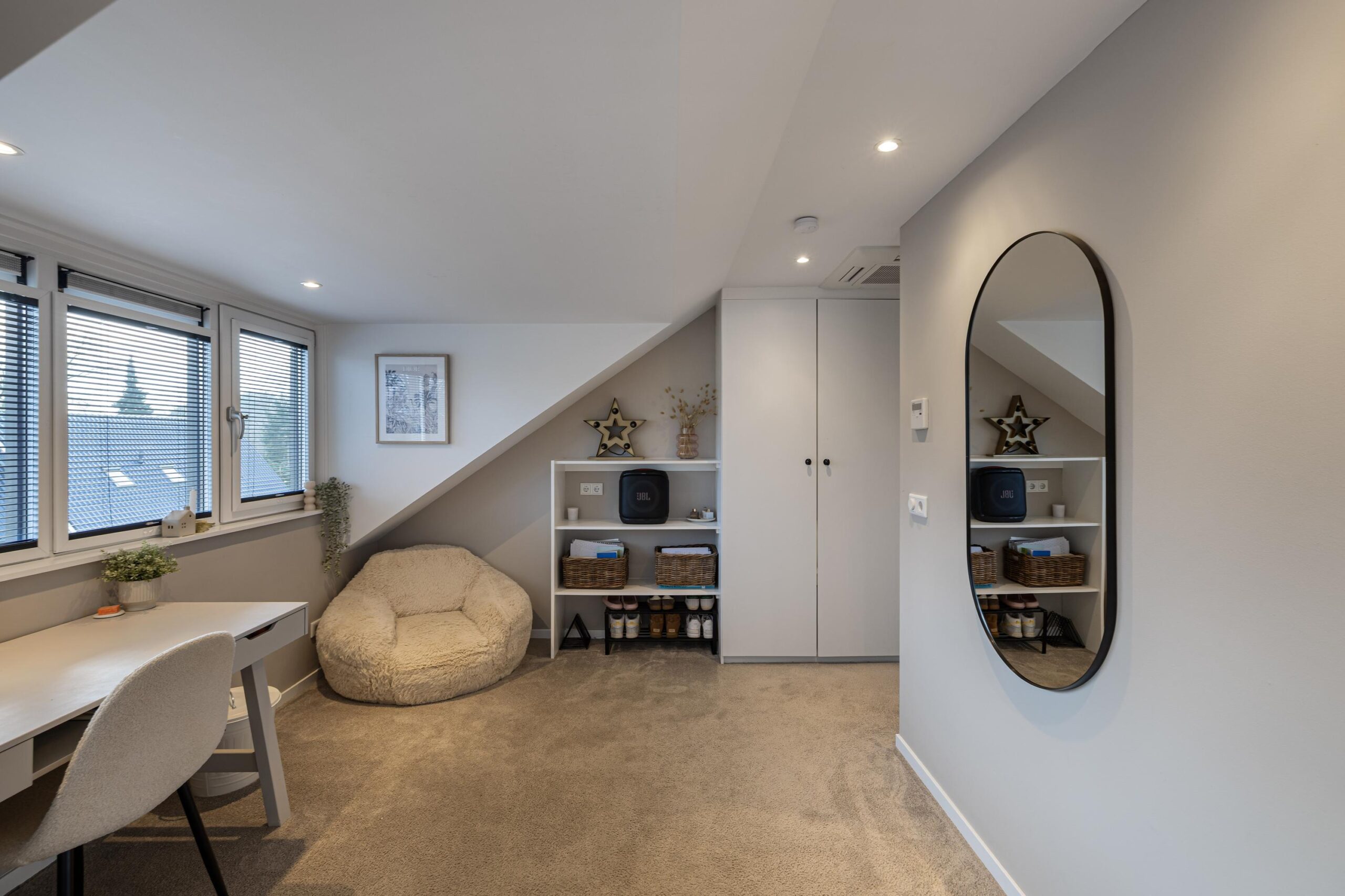 4e slaapkamer over de gehele breedte met vaste kasten en air-conditioning.