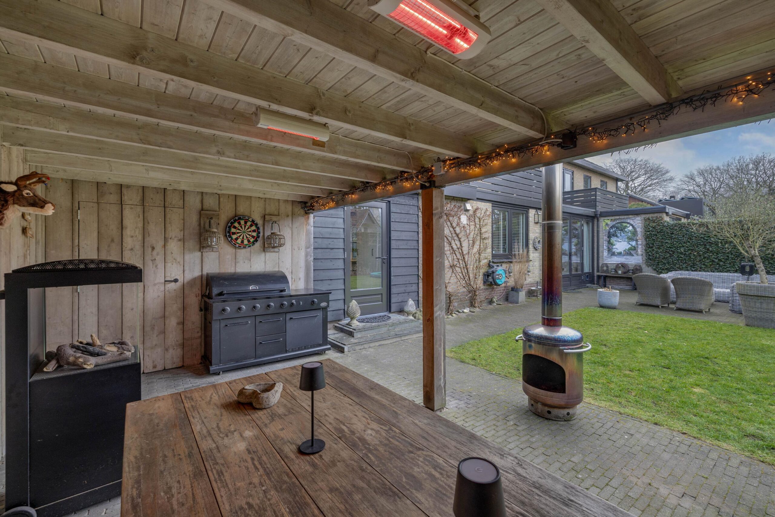 - houten veranda met heaters