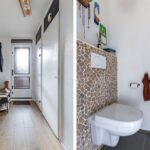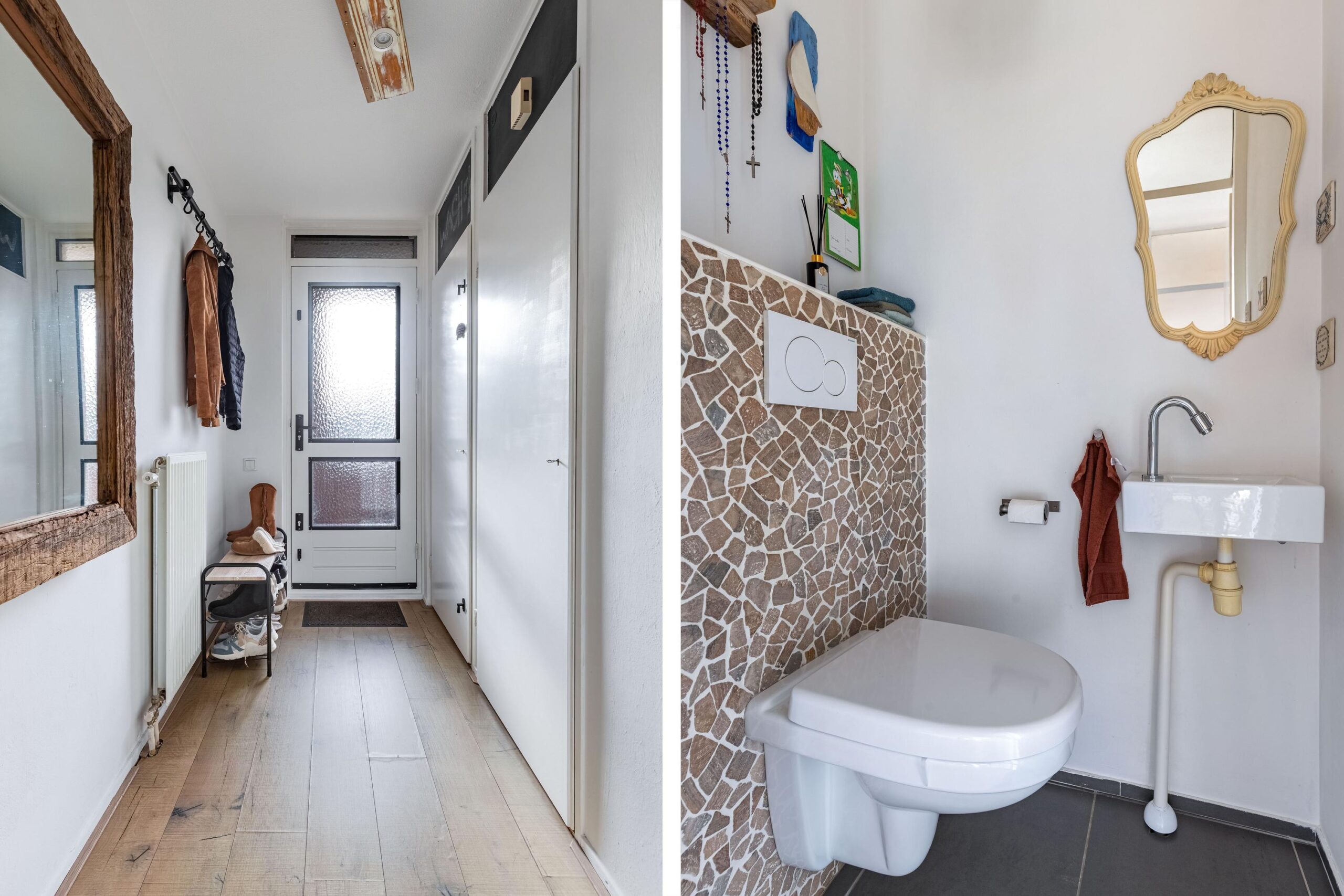 Via de entree kom je in de hal met meterkast, toiletruimte en toegang tot de verschillende vertrekken. Vanuit de hal bereik je de lichte woonkamer. Dankzij de grote raampartijen valt hier veel natuurlijk daglicht naar binnen, wat zorgt voor een prettige en ruimtelijke sfeer.