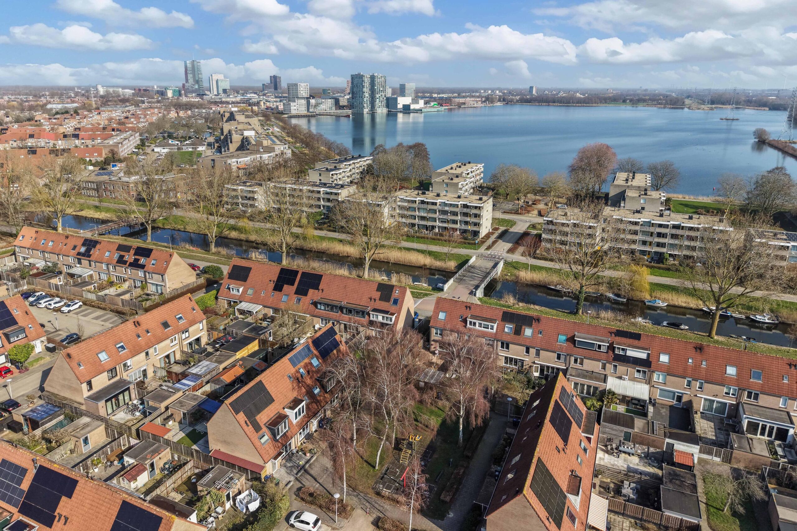De woning ligt bovendien zeer centraal. Het centrum van Almere is eenvoudig te bereiken; via een mooie wandeling langs het Weerwater sta je al binnen circa 20 minuten in de stad. Ook het openbaar vervoer is uitstekend: de bushalte richting het station ligt op ongeveer 4 minuten lopen en het busstation met directe verbindingen richting onder andere Amsterdam bevindt zich op circa 12 minuten loopafstand.