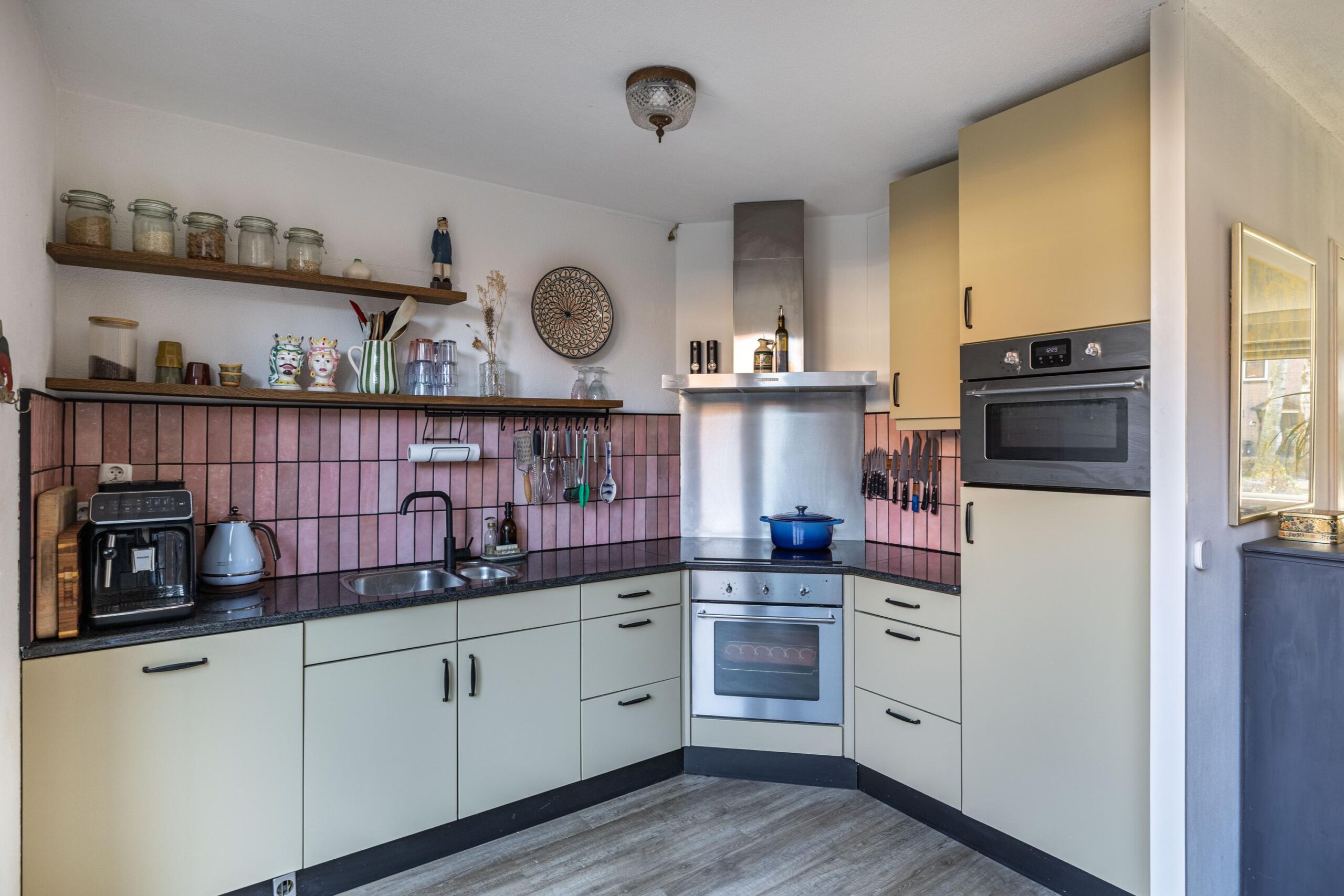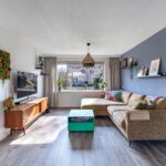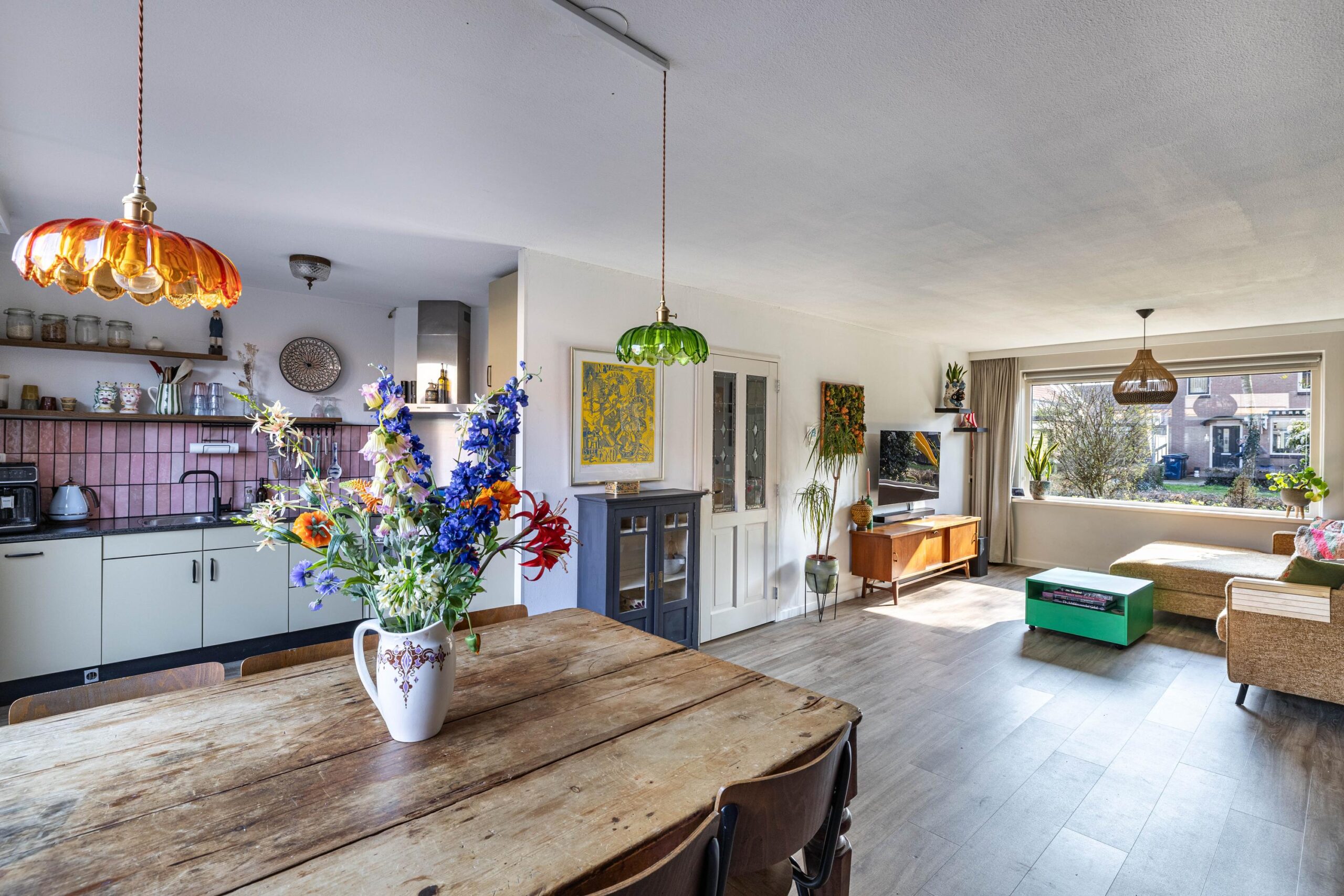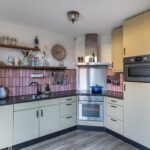 De woonkamer is heerlijk licht dankzij de grote raampartijen aan zowel de voor- als achterzijde. Aan de voorzijde kijk je uit over het rustige hofje met speeltuin, wat zorgt voor een vrij en groen uitzicht. De open keuken sluit naadloos aan op de woonkamer en is praktisch ingericht, waardoor koken en wonen hier mooi samenkomen.
