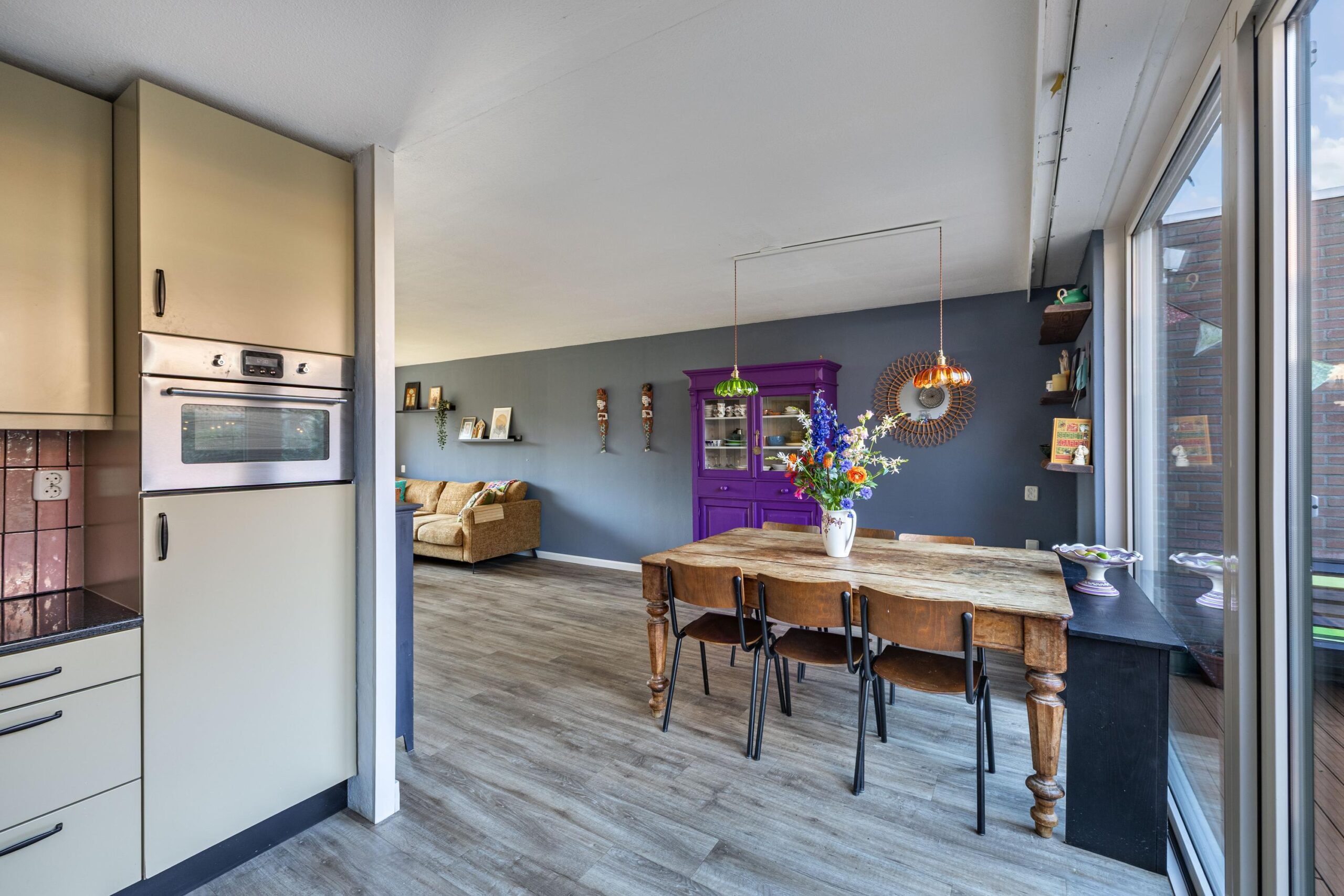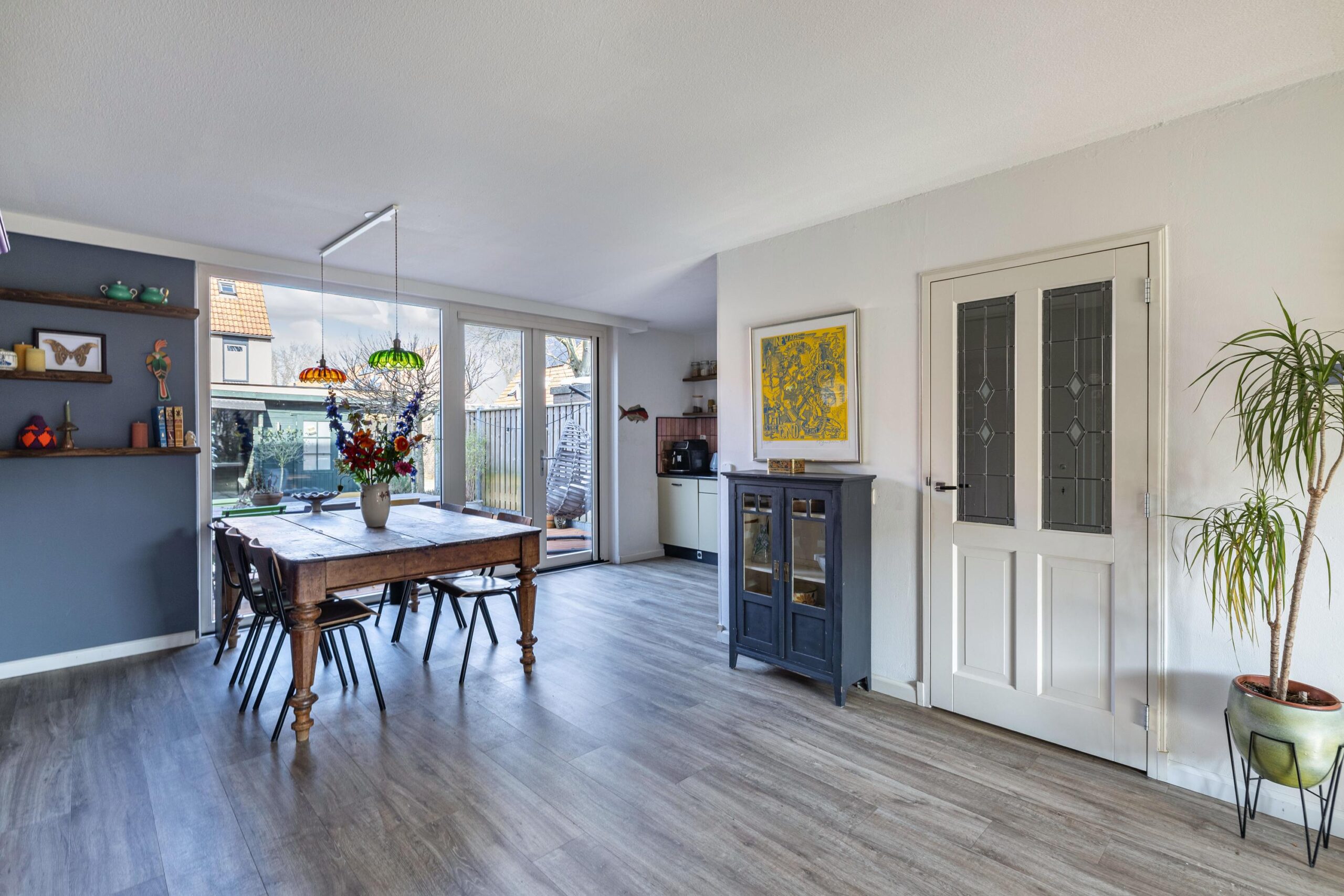 Vanuit de eetkamer/keuken heb je toegang tot de zonnige achtertuin op het Westen.
