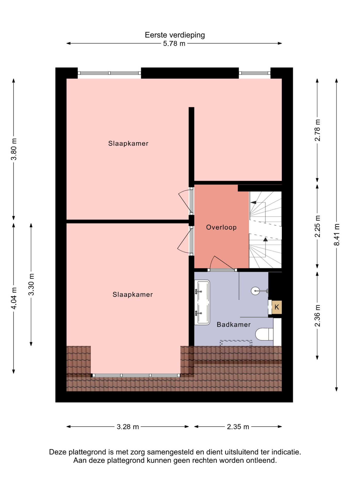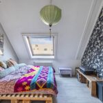 Op deze verdieping bevinden zich twee ruime slaapkamers. De royale hoofdslaapkamer beslaat de volledige breedte van de woning en beschikt over een praktische inloopkast. De tweede slaapkamer is eveneens ruim en veelzijdig in te delen.