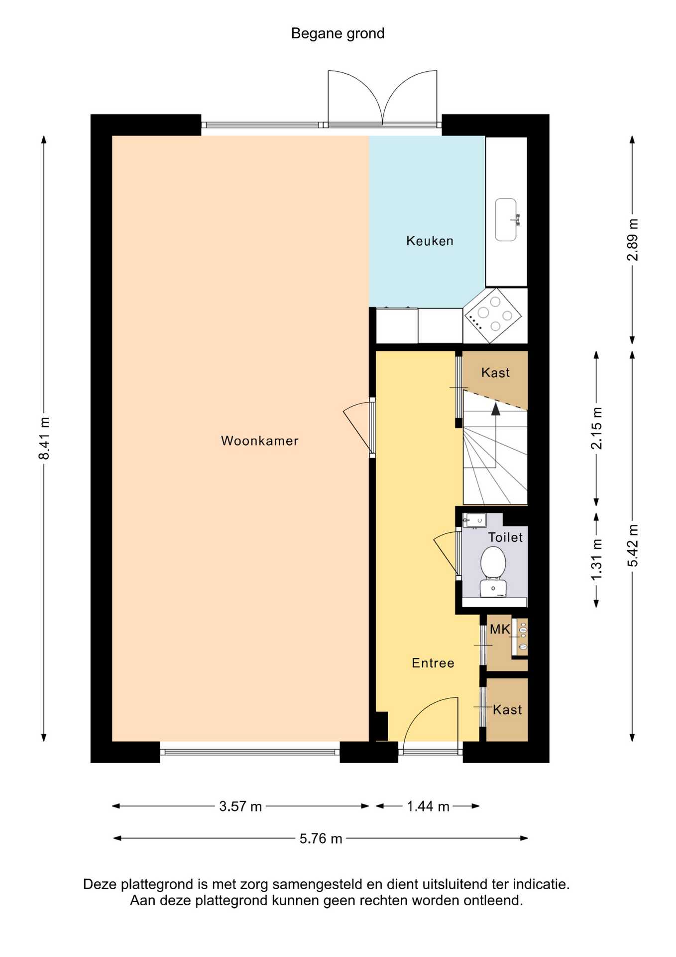 Via de verzorgde voortuin bereik je de entree van de woning. In de hal bevinden zich de meterkast, het toilet, de trapopgang naar de eerste verdieping en de toegang tot de woonkamer.