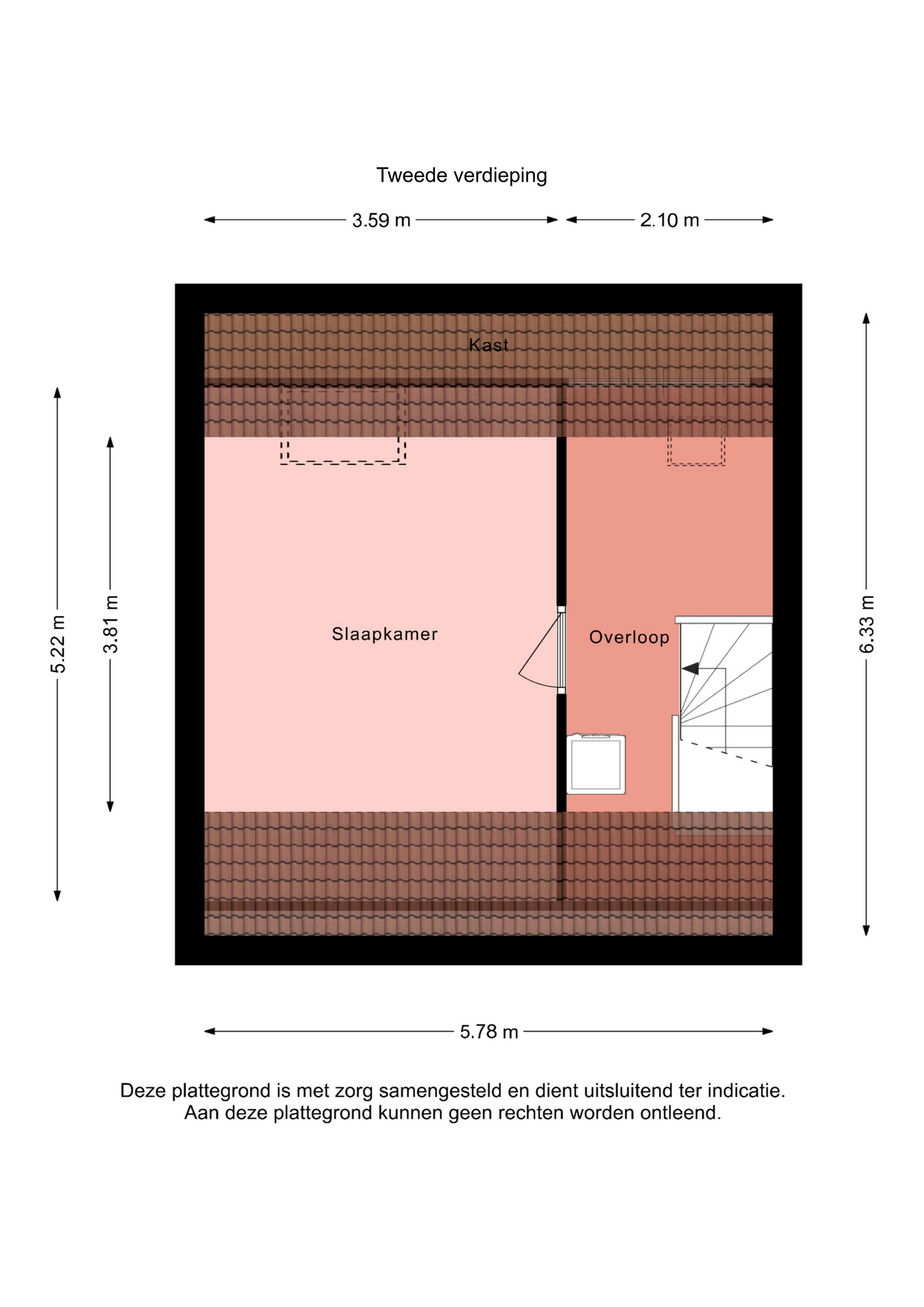 De zolderverdieping beschikt over een ruime voorzolder met kantoordeel en de opstelplaats voor de wasmachine en droger. Daarnaast bevindt zich hier een ruime derde slaapkamer met dakraam, ideaal als slaapkamer, werkruimte of hobbykamer.