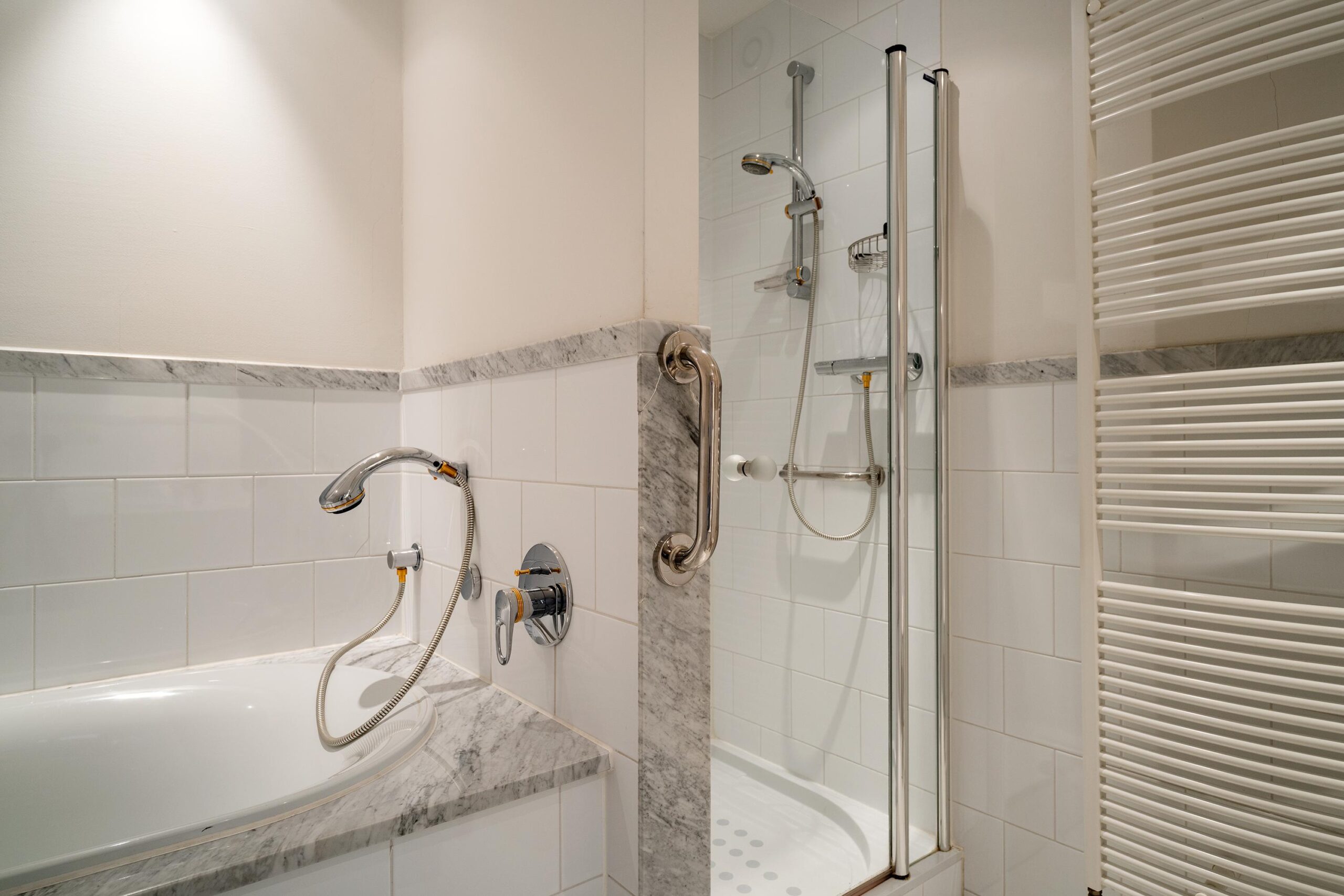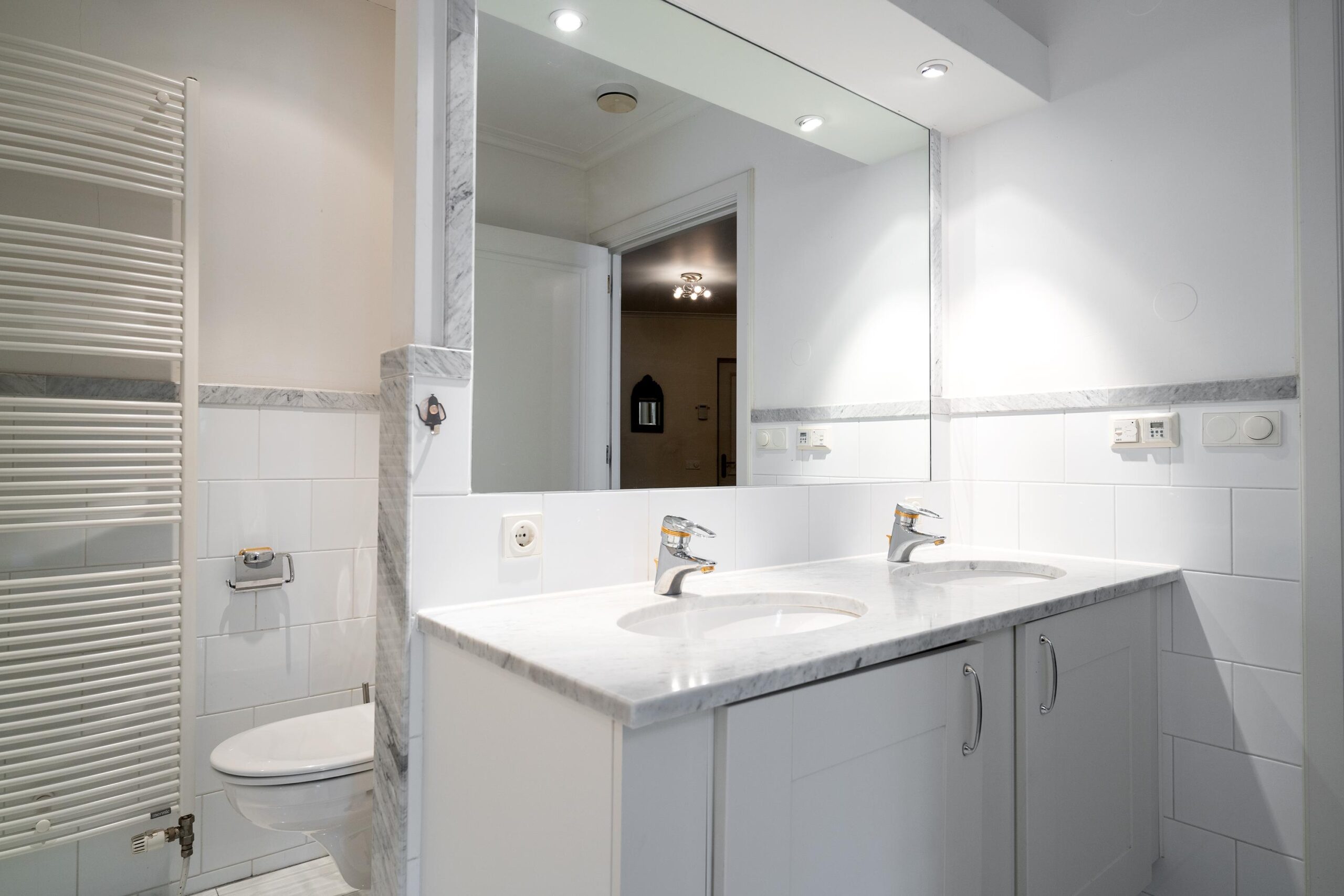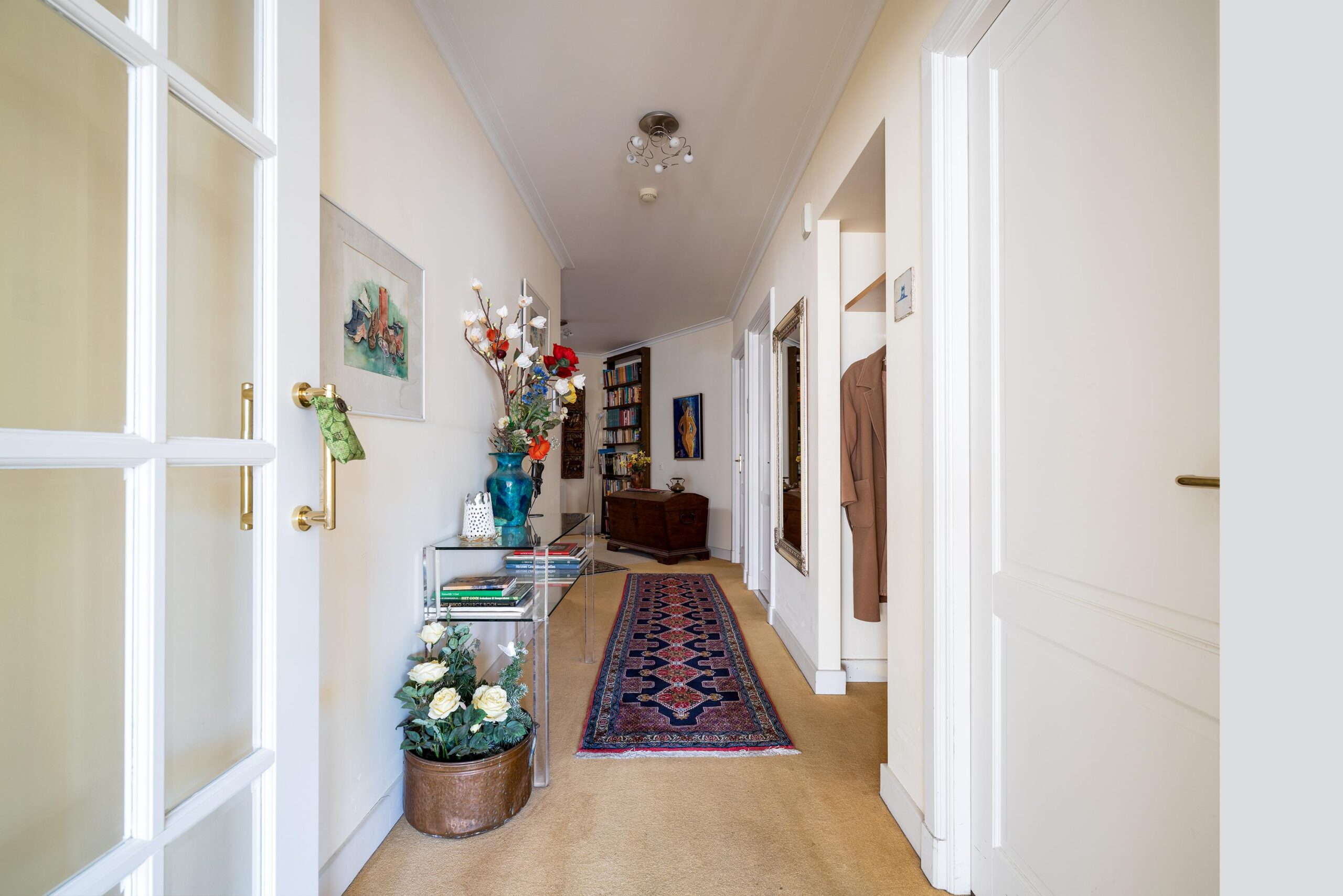 Begane grond: Entree in de centrale hal, toegangsdeur die via de intercom of met sleutel is te openen. Voordeur bevindt zich op de begane grond aan de linkerzijde. Entree in de royale hal met de meterkast, aparte wc, inloopkast en toegang naar de hoofdslaapkamer, badkamer, berging en woonkamer. De hoofdslaapkamer heeft eveneens toegang tot de badkamer die is voorzien van prachtig wit marmer en beschikt over een wc, inloopdouche, dubbele wastafel en ligbad. De berging heeft aansluitingen voor de wasmachine, droger, mechanische ventilatie en dient tevens als CV ruimte. Bij binnenkomst in de ruime woonkamer (bijna 60 m²) valt direct de lichtinval op dankzij de grote ramen op…