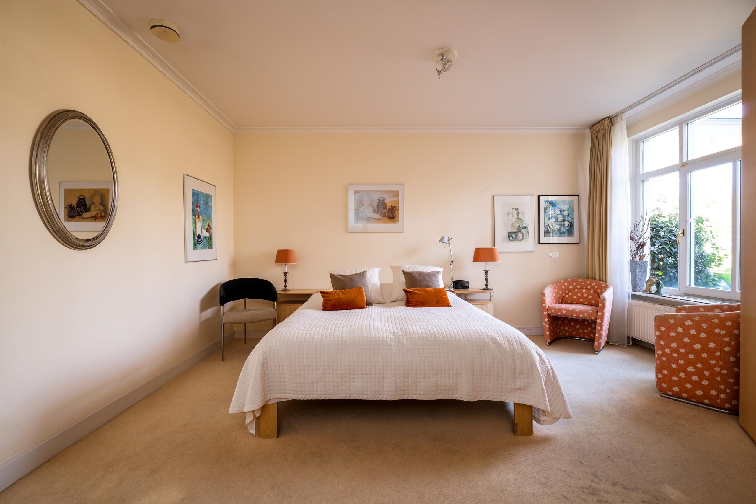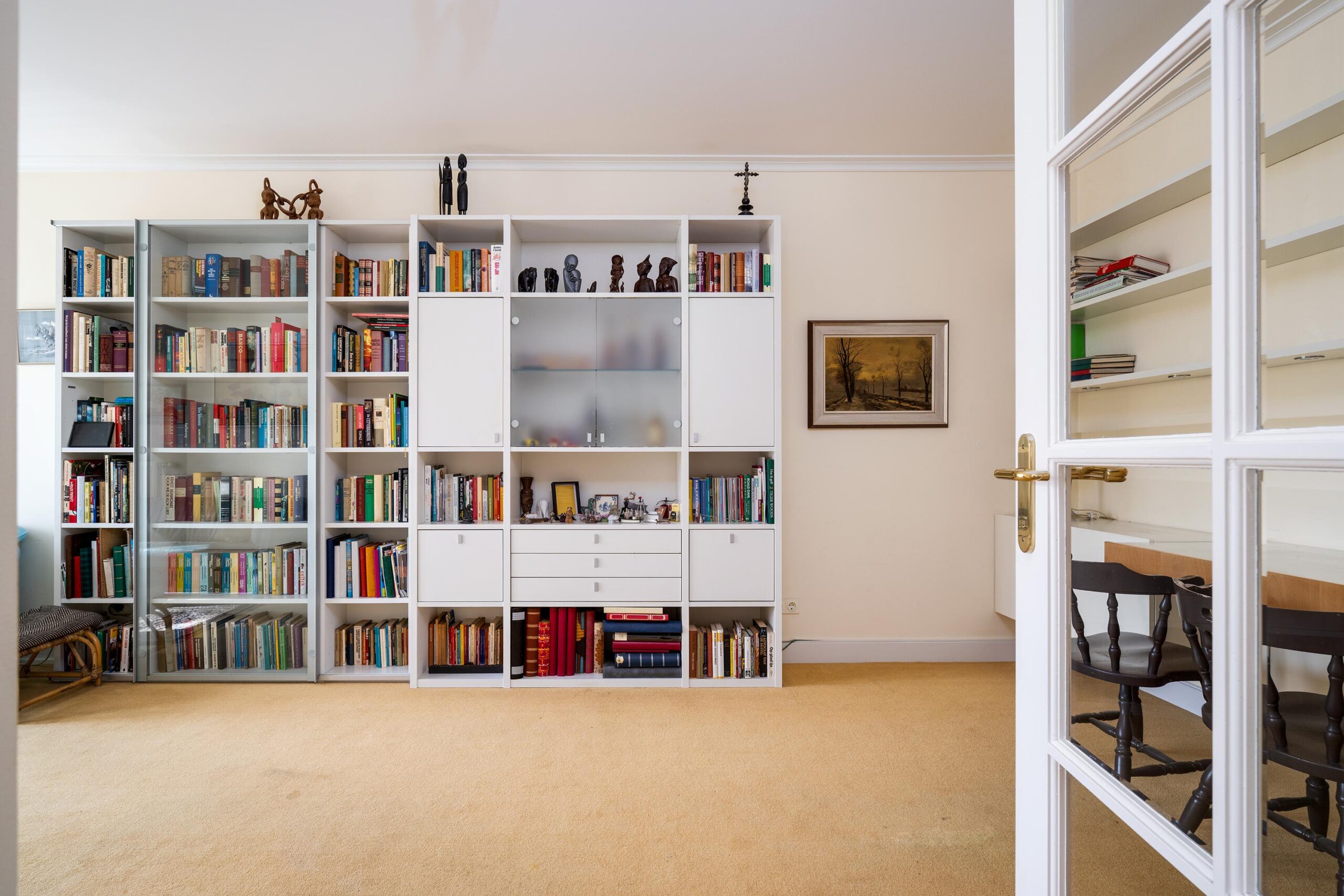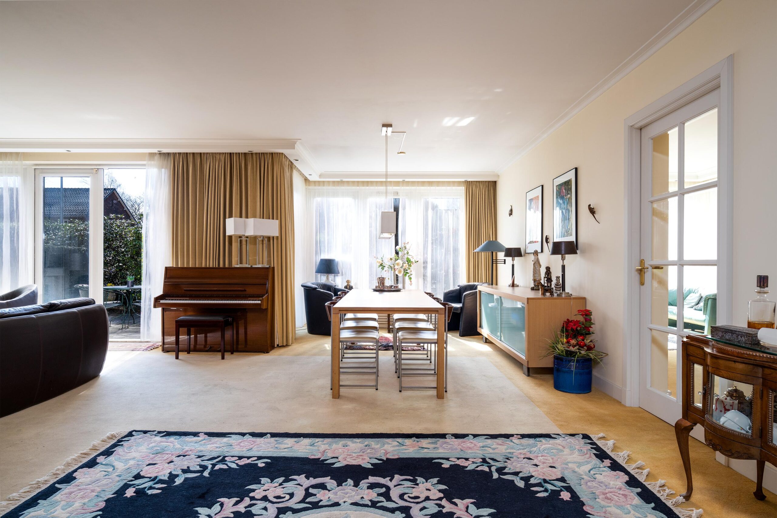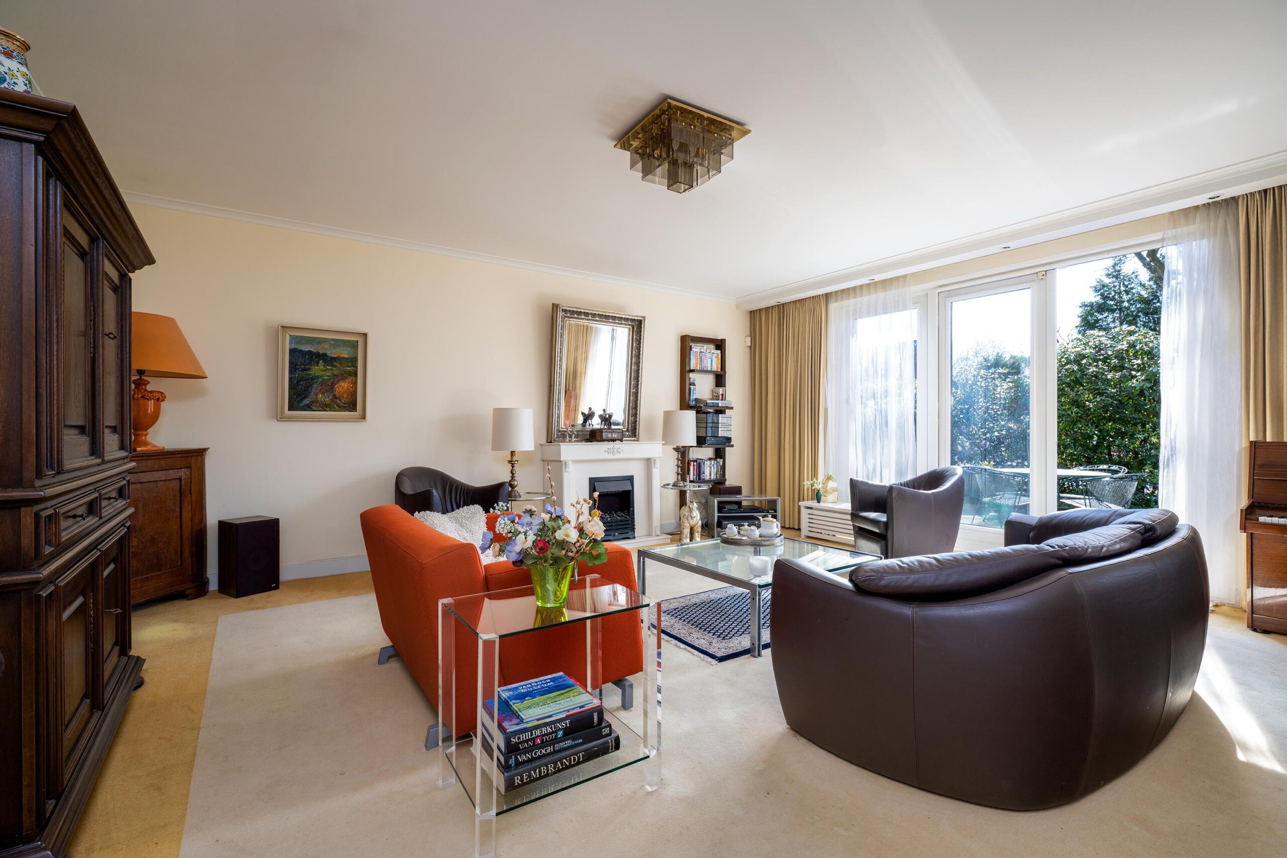 Begane grond: Entree in de centrale hal, toegangsdeur die via de intercom of met sleutel is te openen. Voordeur bevindt zich op de begane grond aan de linkerzijde. Entree in de royale hal met de meterkast, aparte wc, inloopkast en toegang naar de hoofdslaapkamer, badkamer, berging en woonkamer. De hoofdslaapkamer heeft eveneens toegang tot de badkamer die is voorzien van prachtig wit marmer en beschikt over een wc, inloopdouche, dubbele wastafel en ligbad. De berging heeft aansluitingen voor de wasmachine, droger, mechanische ventilatie en dient tevens als CV ruimte. Bij binnenkomst in de ruime woonkamer (bijna 60 m²) valt direct de lichtinval op dankzij de grote ramen op de zuid kant. Vanuit de woonkamer toegang naar de zonnige groene tuin. Het terras hoort bij het appartementsrecht en het algemene deel van de VvE is in bruikleen. Keuken met diverse inbouwapparatuur waaronder een elektrische kookplaat, afwasmachine, ijskast, vriezer en oven. De tweede slaapkamer, thans in gebruik als werkkamer, is gelegen aan de achterzijde en bereikbaar via de woonkamer.