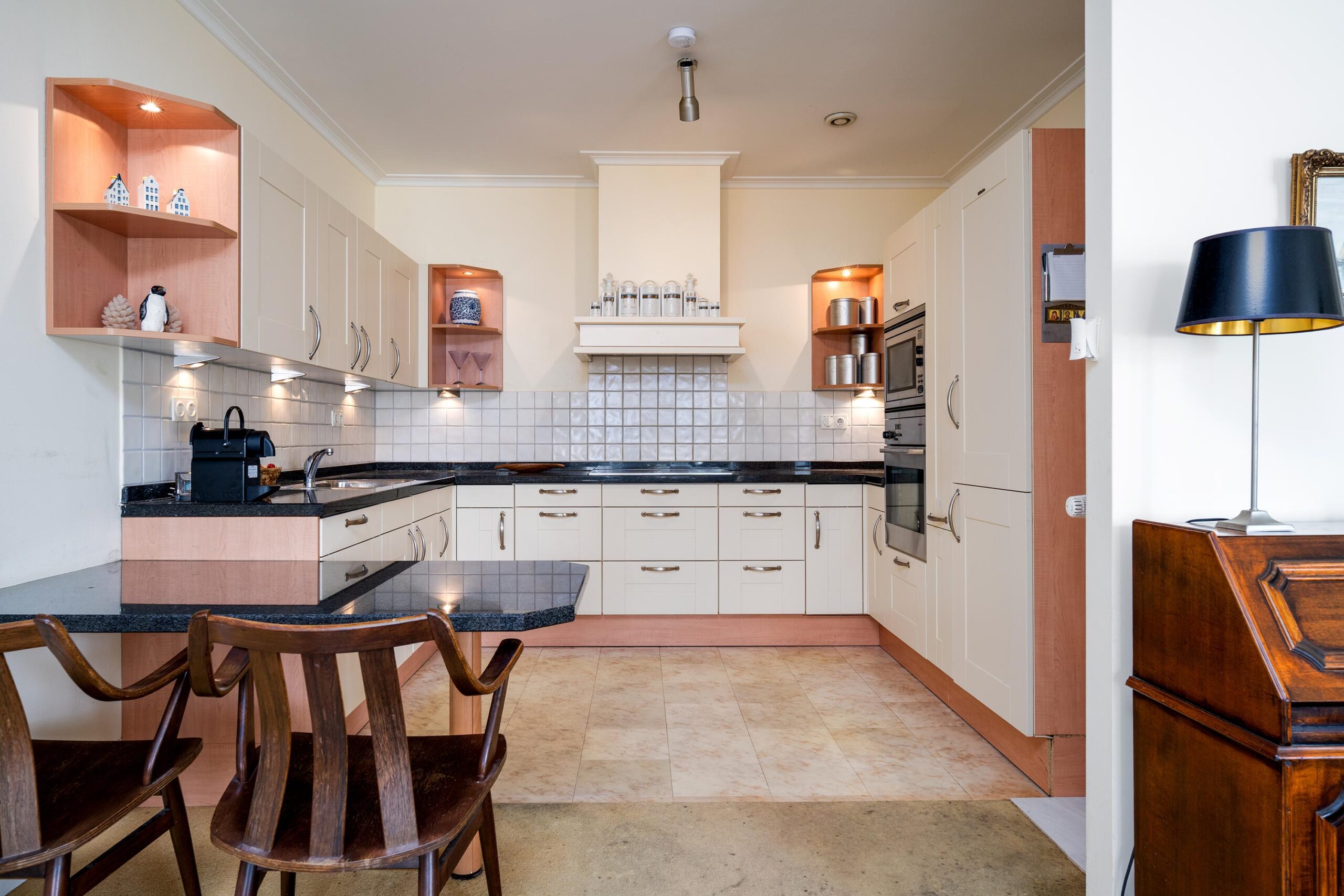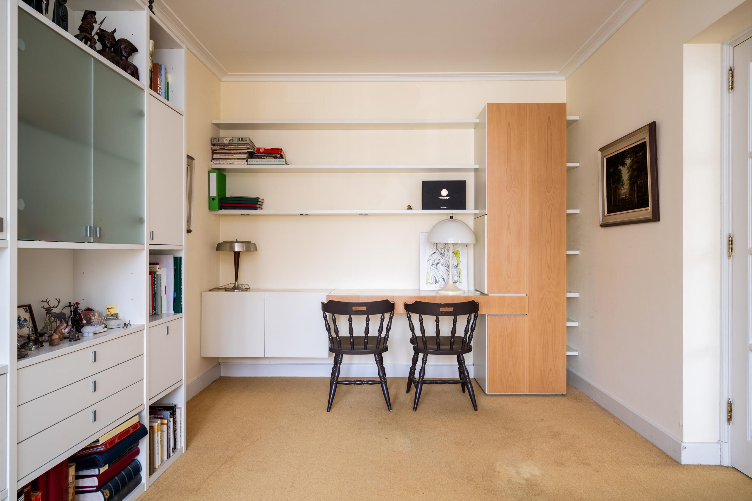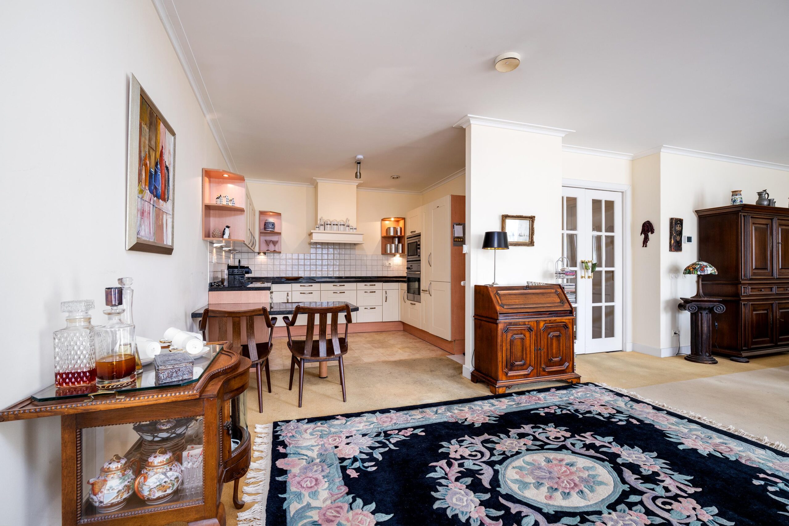 Begane grond: Entree in de centrale hal, toegangsdeur die via de intercom of met sleutel is te openen. Voordeur bevindt zich op de begane grond aan de linkerzijde. Entree in de royale hal met de meterkast, aparte wc, inloopkast en toegang naar de hoofdslaapkamer, badkamer, berging en woonkamer. De hoofdslaapkamer heeft eveneens toegang tot de badkamer die is voorzien van prachtig wit marmer en beschikt over een wc, inloopdouche, dubbele wastafel en ligbad. De berging heeft aansluitingen voor de wasmachine, droger, mechanische ventilatie en dient tevens als CV ruimte. Bij binnenkomst in de ruime woonkamer (bijna 60 m²) valt direct de lichtinval op dankzij de grote ramen op de zuid kant. Vanuit de woonkamer toegang naar de zonnige groene tuin. Het terras hoort bij het appartementsrecht en het algemene deel van de VvE is in bruikleen. Keuken met diverse inbouwapparatuur waaronder een elektrische kookplaat, afwasmachine, ijskast, vriezer en oven. De tweede slaapkamer, thans in gebruik als werkkamer, is gelegen aan de achterzijde en bereikbaar via de woonkamer.