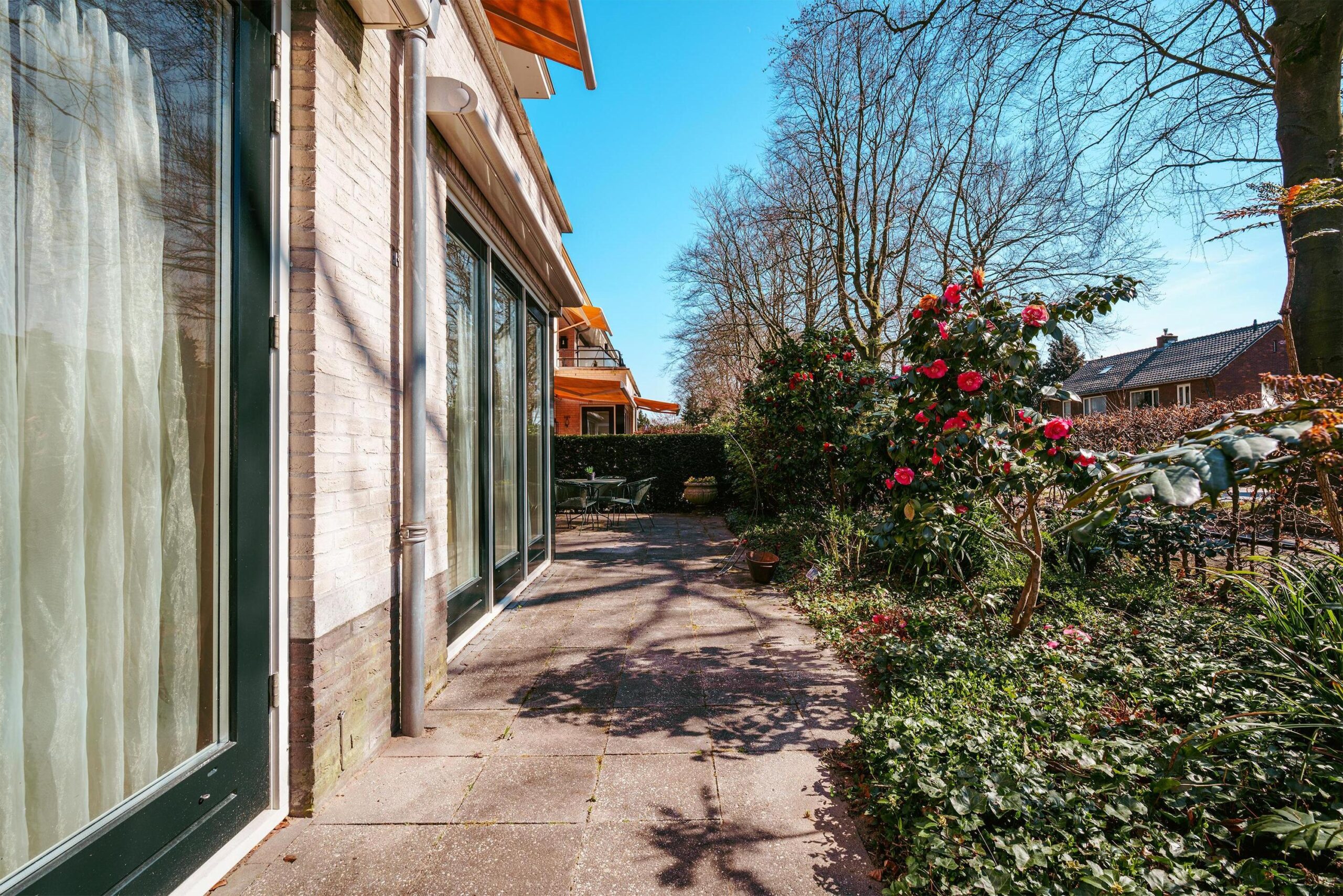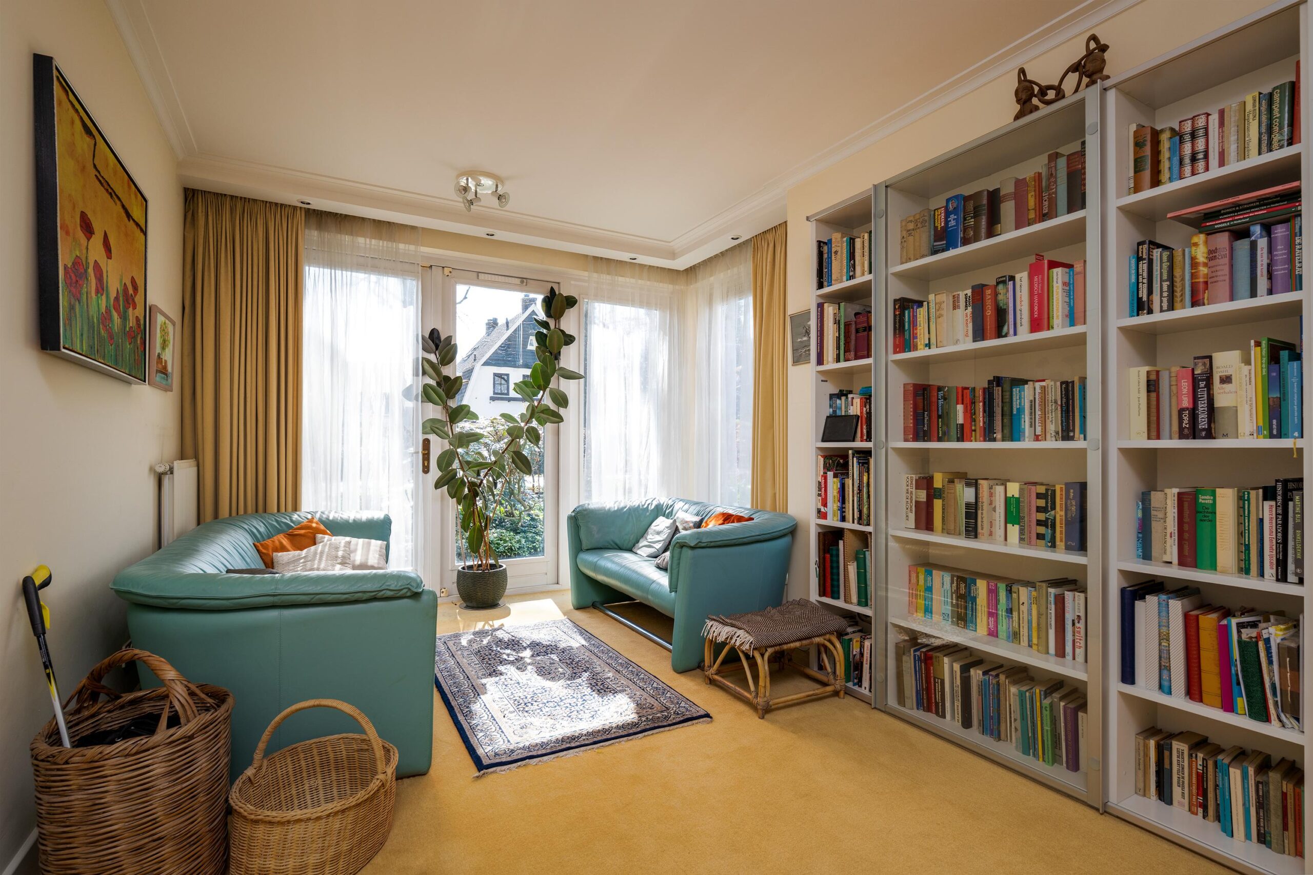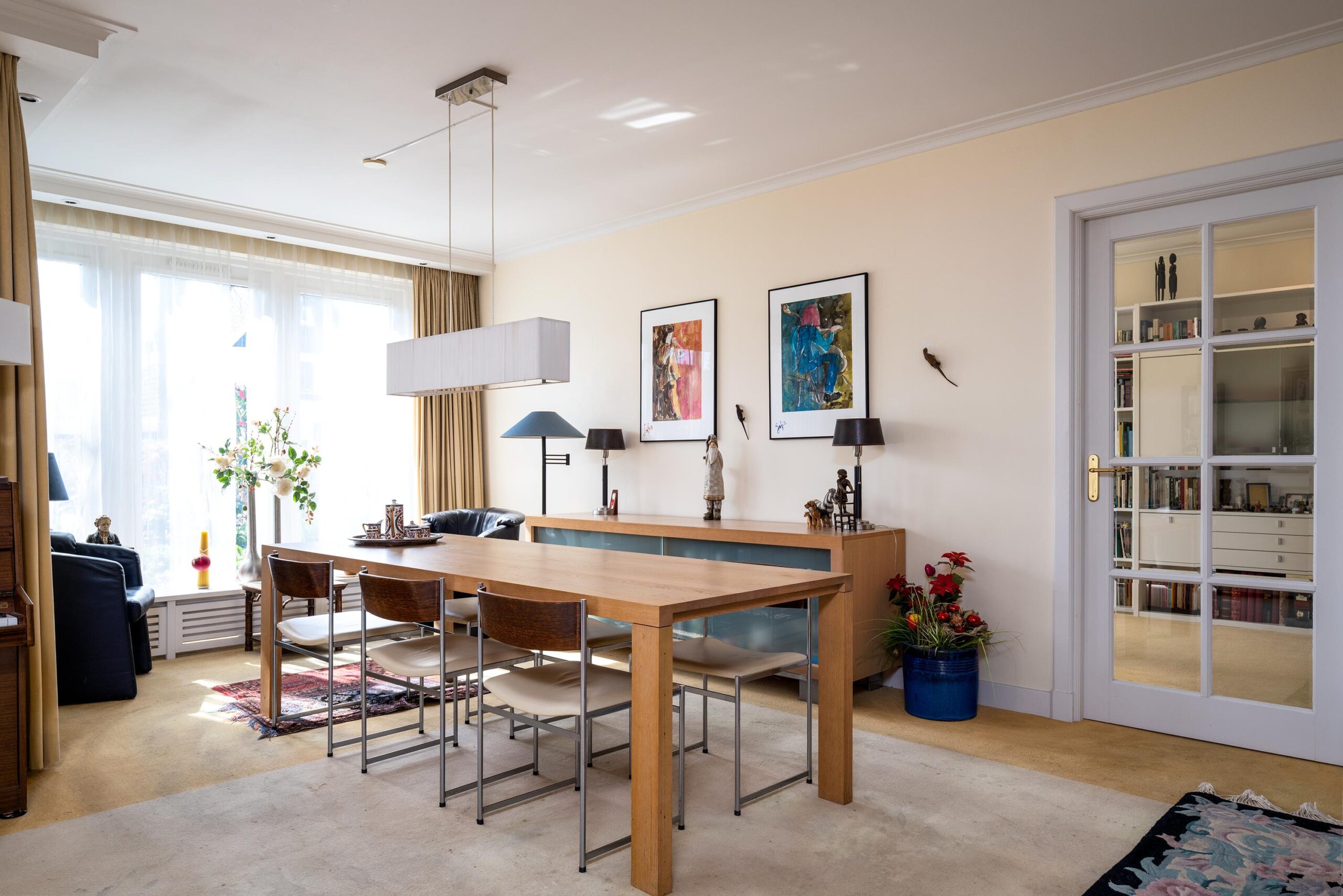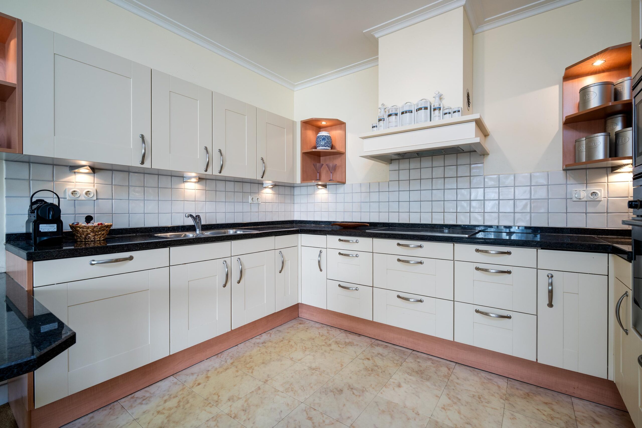 Begane grond: Entree in de centrale hal, toegangsdeur die via de intercom of met sleutel is te openen. Voordeur bevindt zich op de begane grond aan de linkerzijde. Entree in de royale hal met de meterkast, aparte wc, inloopkast en toegang naar de hoofdslaapkamer, badkamer, berging en woonkamer. De hoofdslaapkamer heeft eveneens toegang tot de badkamer die is voorzien van prachtig wit marmer en beschikt over een wc, inloopdouche, dubbele wastafel en ligbad. De berging heeft aansluitingen voor de wasmachine, droger, mechanische ventilatie en dient tevens als CV ruimte. Bij binnenkomst in de ruime woonkamer (bijna 60 m²) valt direct de lichtinval op dankzij de grote ramen op de zuid kant. Vanuit de woonkamer toegang naar de zonnige groene tuin. Het terras hoort bij het appartementsrecht en het algemene deel van de VvE is in bruikleen. Keuken met diverse inbouwapparatuur waaronder een elektrische kookplaat, afwasmachine, ijskast, vriezer en oven. De tweede slaapkamer, thans in gebruik als werkkamer, is gelegen aan de achterzijde en bereikbaar via de woonkamer.