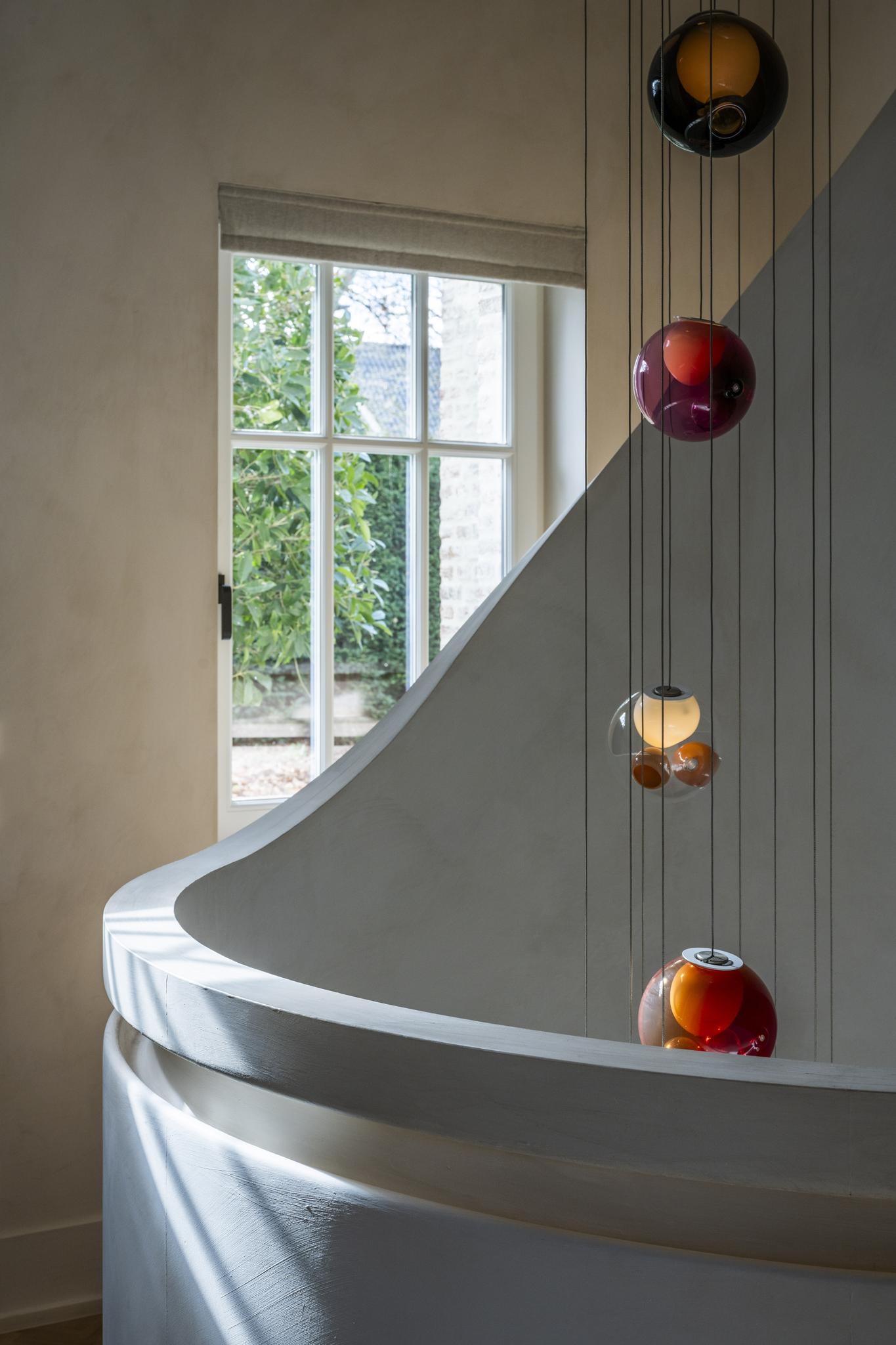 De eerste verdieping, bereikbaar via de statige imposante trap in de hal, biedt toegang tot meerdere (slaap)kamers van uitzonderlijke allure.