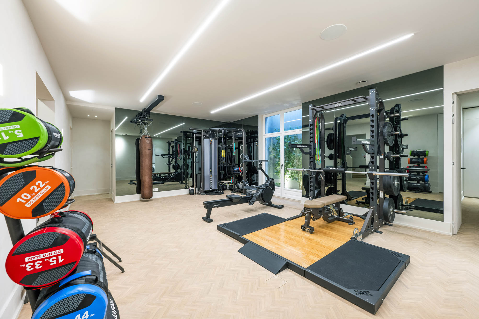 Daarnaast biedt het souterrain een volledig uitgeruste gym, ideaal voor krachttraining, cardio of yoga – een plek waar gezondheid en stijl samenkomen.