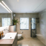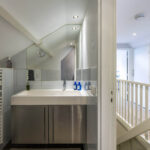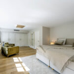 De imposante trapopgang leidt naar een royale overloop met vide, die voor een ruimtelijk effect zorgt. Deze verdieping beschikt over vier slaapkamers, allen voorzien van vaste kasten. De masterbedroom beschikt bovendien over een eigen inloopkast, een tweede kleedruimte en een luxe en-suite badkamer met dubbele wastafel, inloopdouche en toilet. Daarnaast zijn er twee ruime slaapkamers, waarvan één toegang biedt tot het balkon. Een vierde kamer is in gebruik als waskamer maar kan eenvoudig dienstdoen als logeer- of slaapkamer. Voor de kinderen is er een tweede badkamer met inloopdouche, wastafel en toilet.