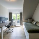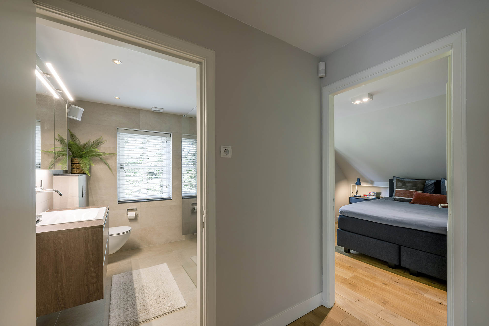 Hier bevinden zich nog eens twee slaapkamers en een derde badkamer met douche en toilet. Dankzij de vele vaste kasten is er volop bergruimte. De indeling leent zich uitstekend voor een gezin met meerdere kinderen of logees.