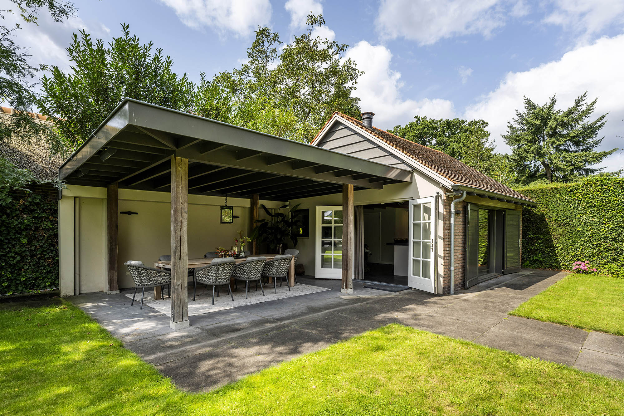 De villa is omgeven door een prachtig aangelegde tuin met zonnig terras (Z-ZW) met buitendouche en een sfeervolle veranda met open haard. Terwijl u ontspant met een goed glas wijn, kunnen kinderen veilig spelen in de grote voortuin met kunstgras, trampoline, schommel en voetbal-/hockeygoals. De voormalige dubbele garage is omgebouwd tot een volledig multifunctioneel bijgebouw (32 m²) met elektra, water en toilet. Een perfecte plek als gastenverblijf, kantoor of hobbyruimte!