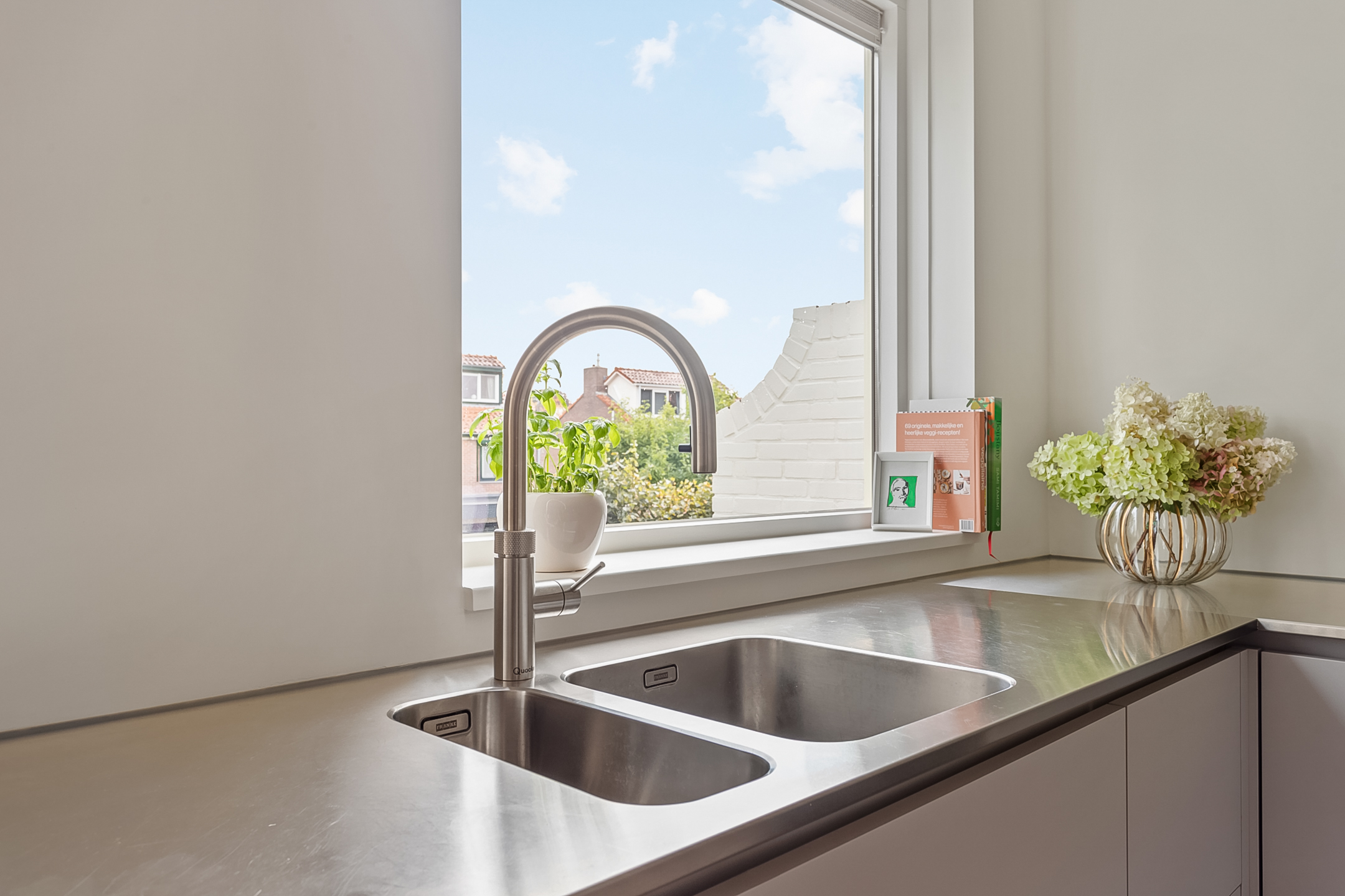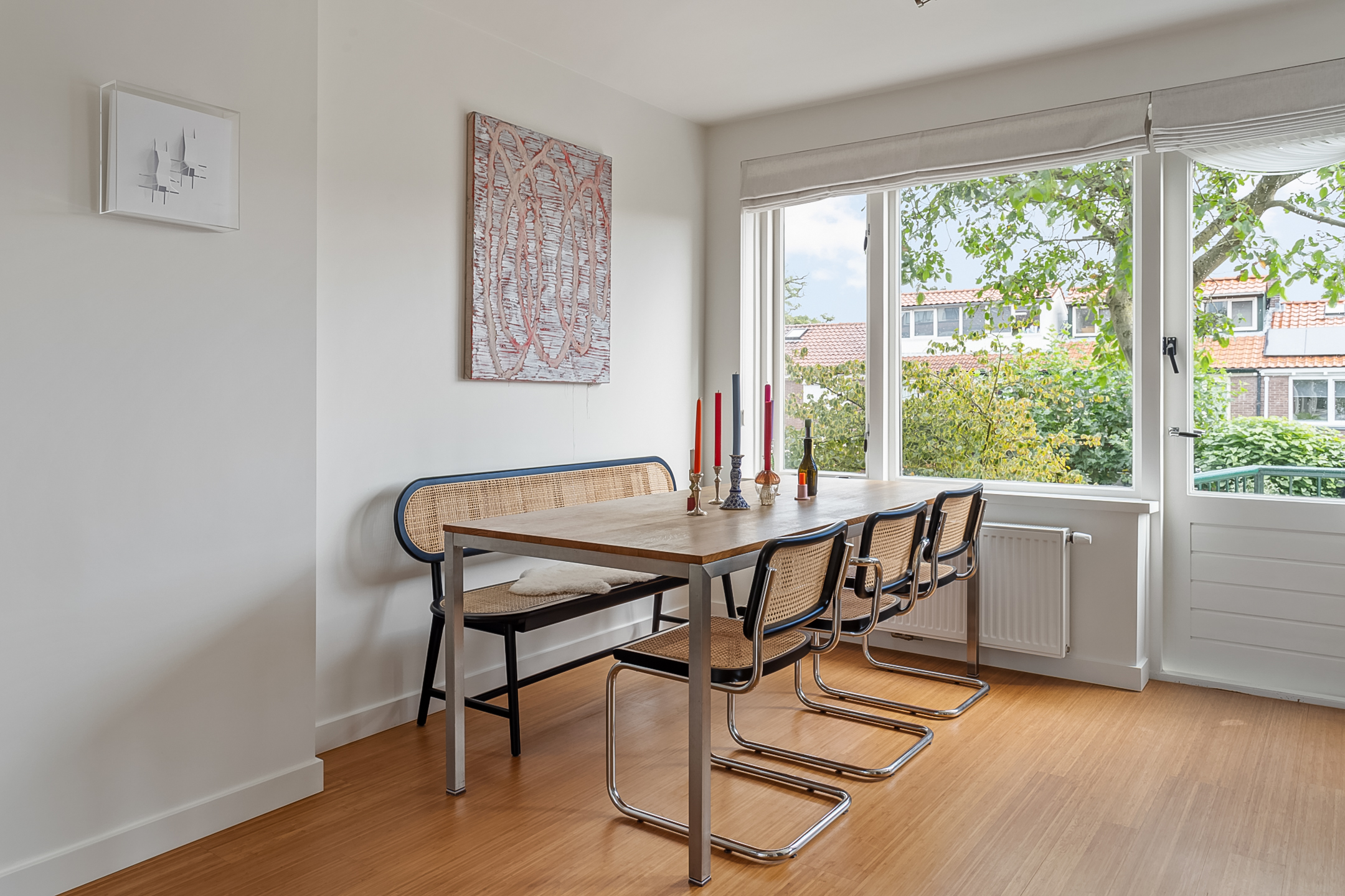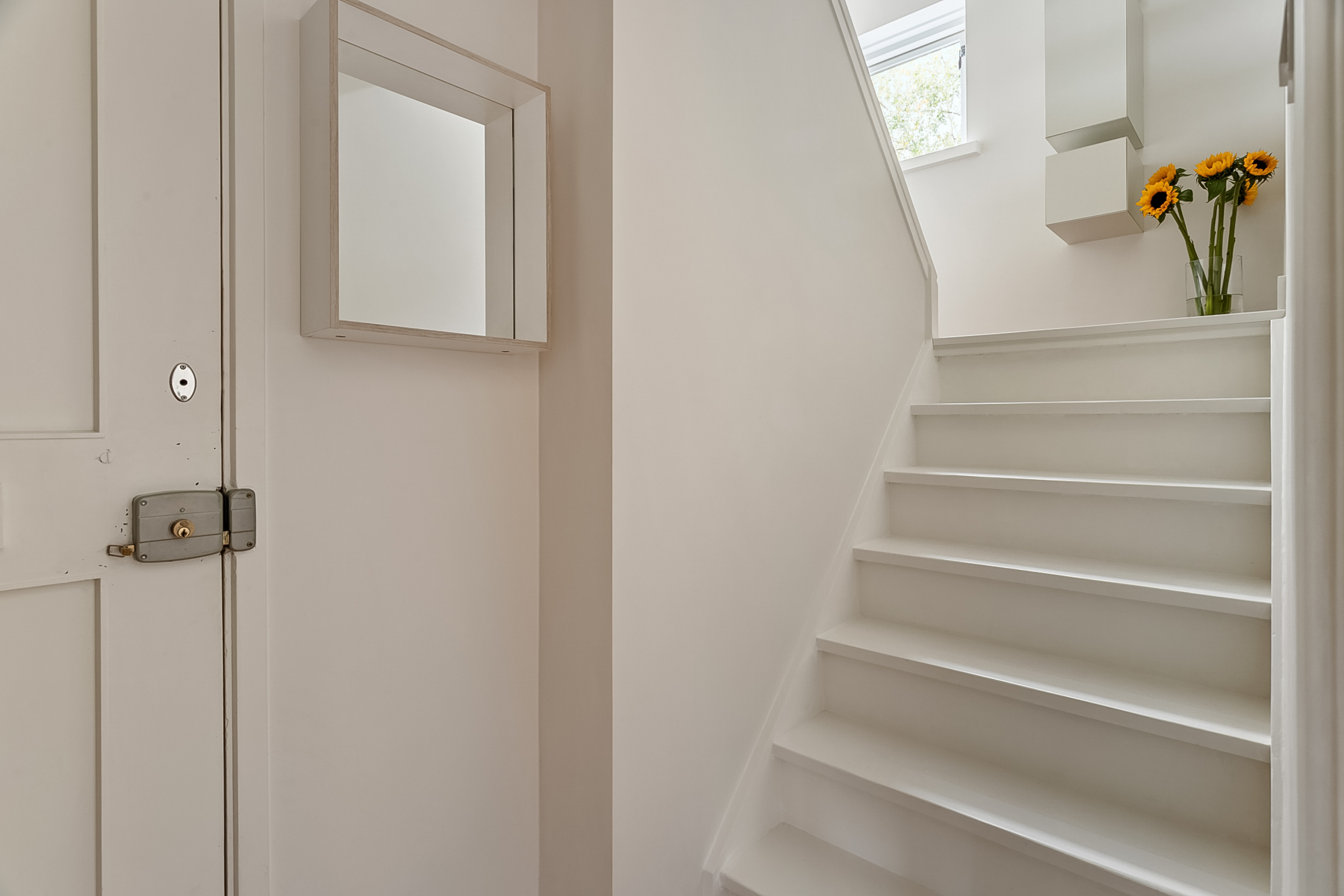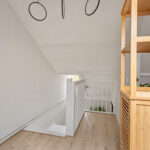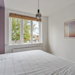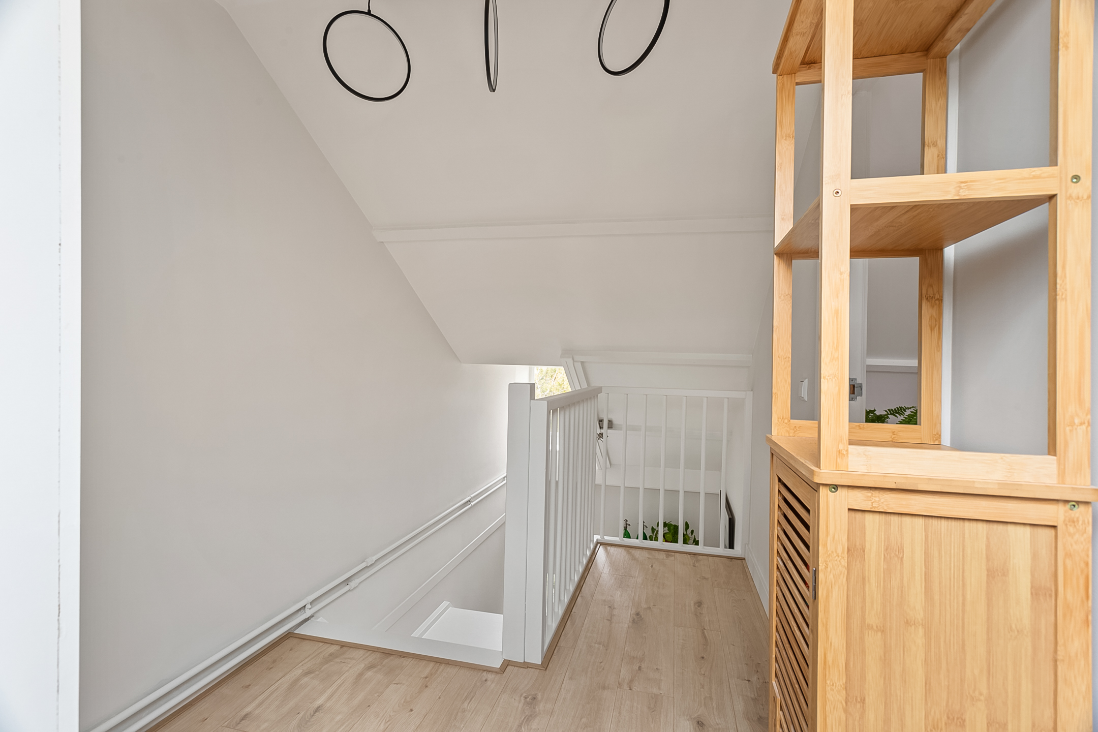 Via het verzorgde buitenportiek bereik je de eerste verdieping met je eigen entree. De hal geeft onder andere toegang tot het separate toilet en de gemoderniseerde meterkast. De doorzonwoonkamer is een echte eyecatcher dankzij de grote raampartijen aan beide zijden. Hierdoor valt het daglicht rijkelijk binnen. De luxe open keuken (2021) is uitgerust met hoogwaardige inbouwapparatuur, een robuust RVS keukenblad, greepvrije en push-open lades, inductiekookplaat en combi-Quooker – kortom, perfect voor de fanatieke thuiskok! Vanuit de keuken stap je zo het balkon op, waar je ’s ochtends heerlijk van de zon geniet. De duurzame bamboevloer op deze verdieping zorgt voor een warme, moderne uitstraling.