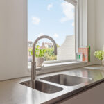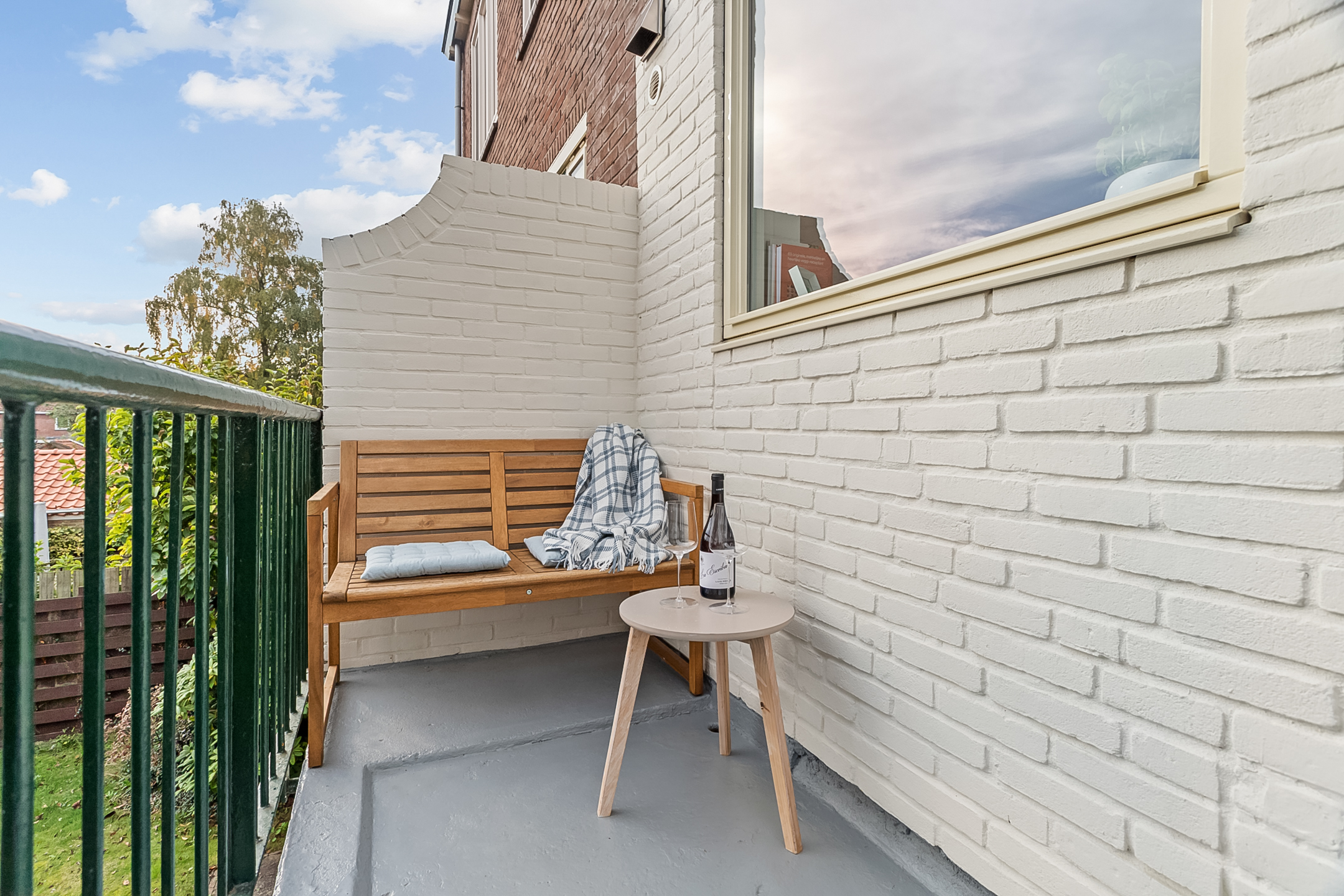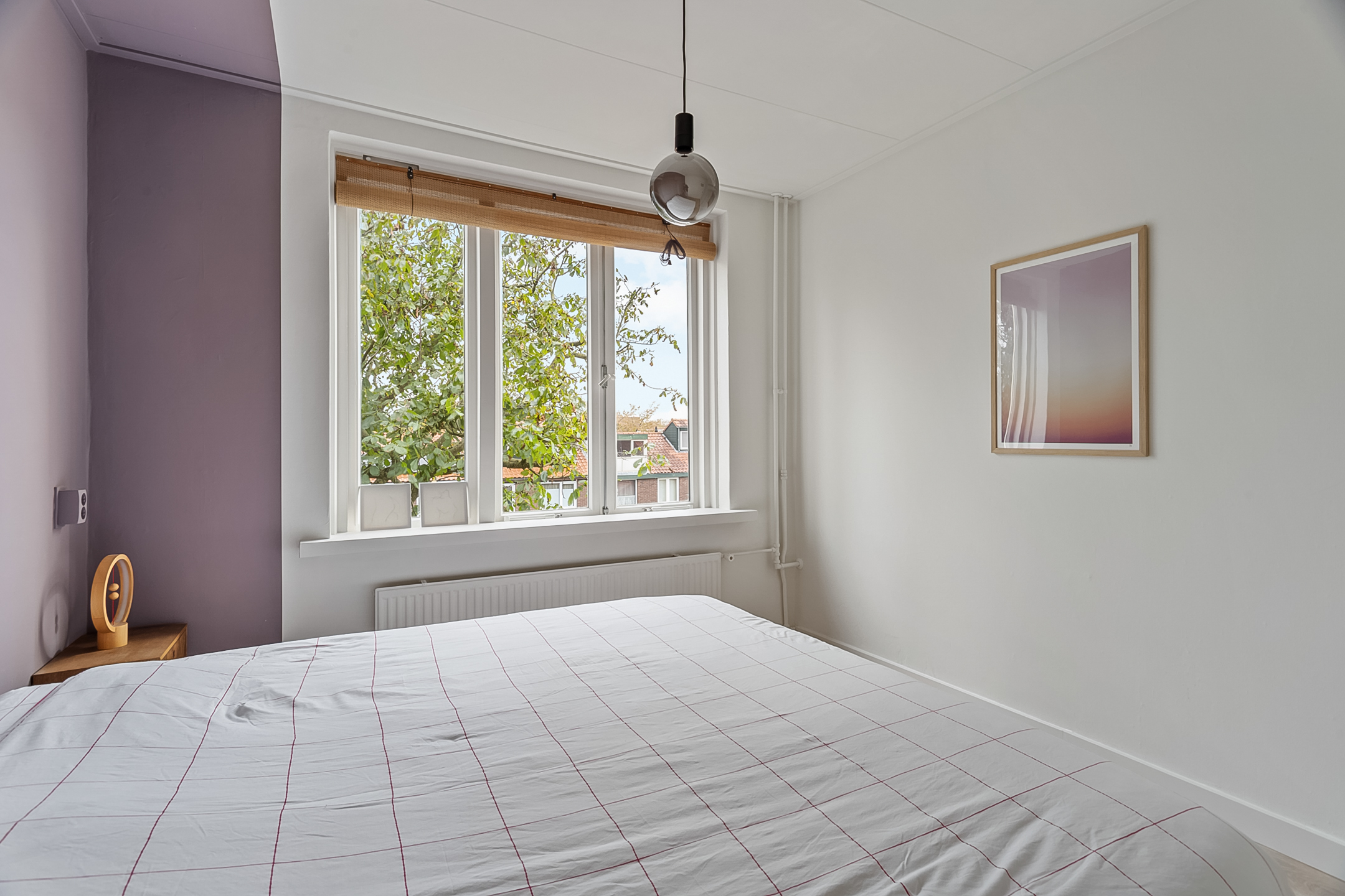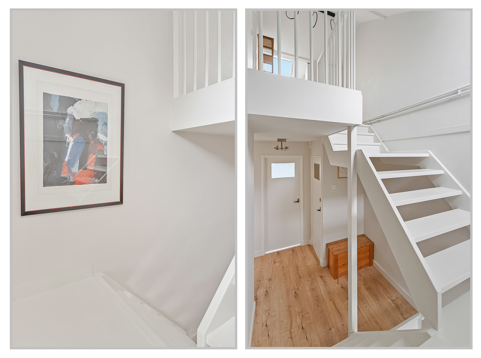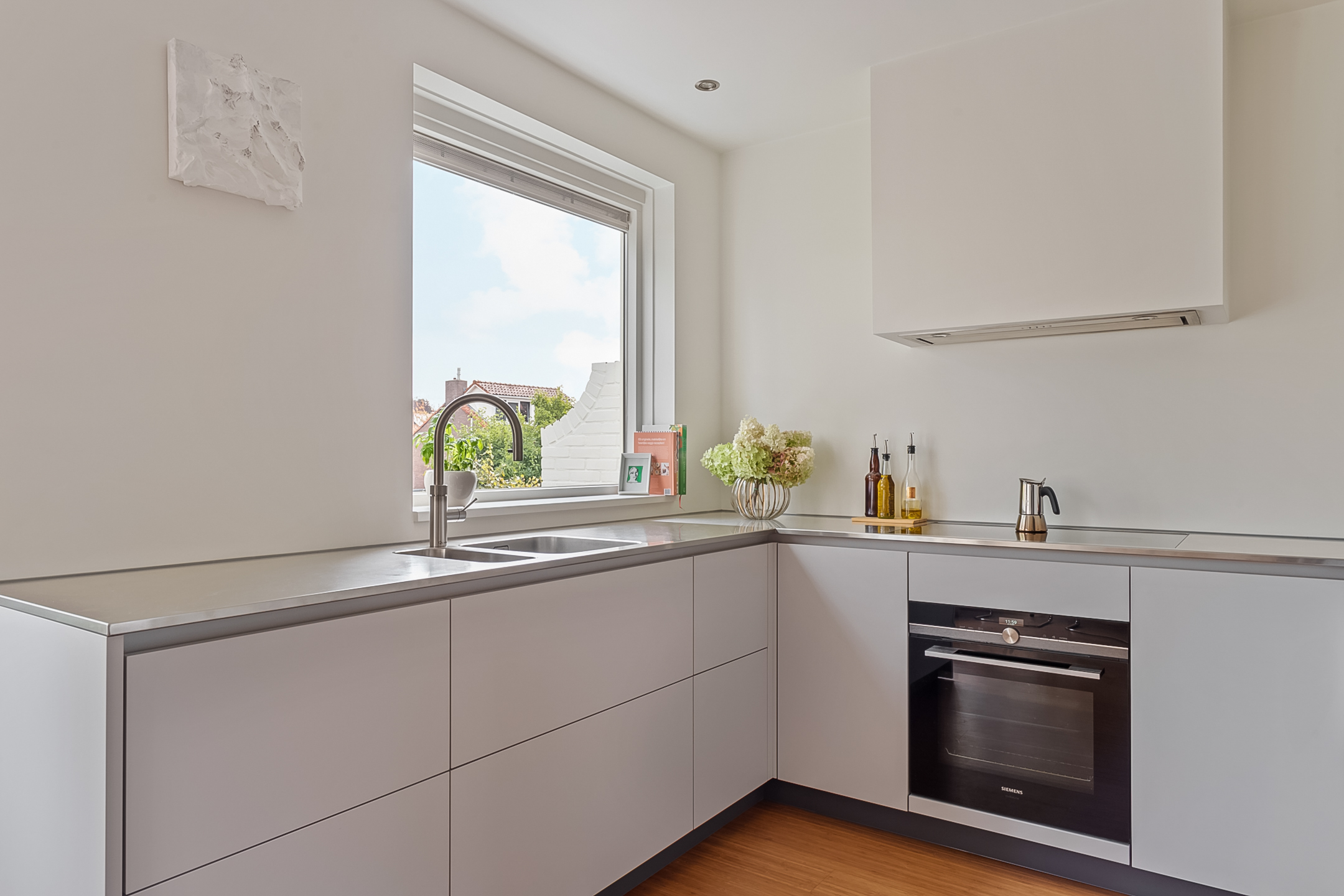 Via het verzorgde buitenportiek bereik je de eerste verdieping met je eigen entree. De hal geeft onder andere toegang tot het separate toilet en de gemoderniseerde meterkast. De doorzonwoonkamer is een echte eyecatcher dankzij de grote raampartijen aan beide zijden. Hierdoor valt het daglicht rijkelijk binnen. De luxe open keuken (2021) is uitgerust met hoogwaardige inbouwapparatuur, een robuust RVS keukenblad, greepvrije en push-open lades, inductiekookplaat en combi-Quooker – kortom, perfect voor de fanatieke thuiskok! Vanuit de keuken stap je zo het balkon op, waar je ’s ochtends heerlijk van de zon geniet. De duurzame bamboevloer op deze verdieping zorgt voor een warme, moderne uitstraling.
