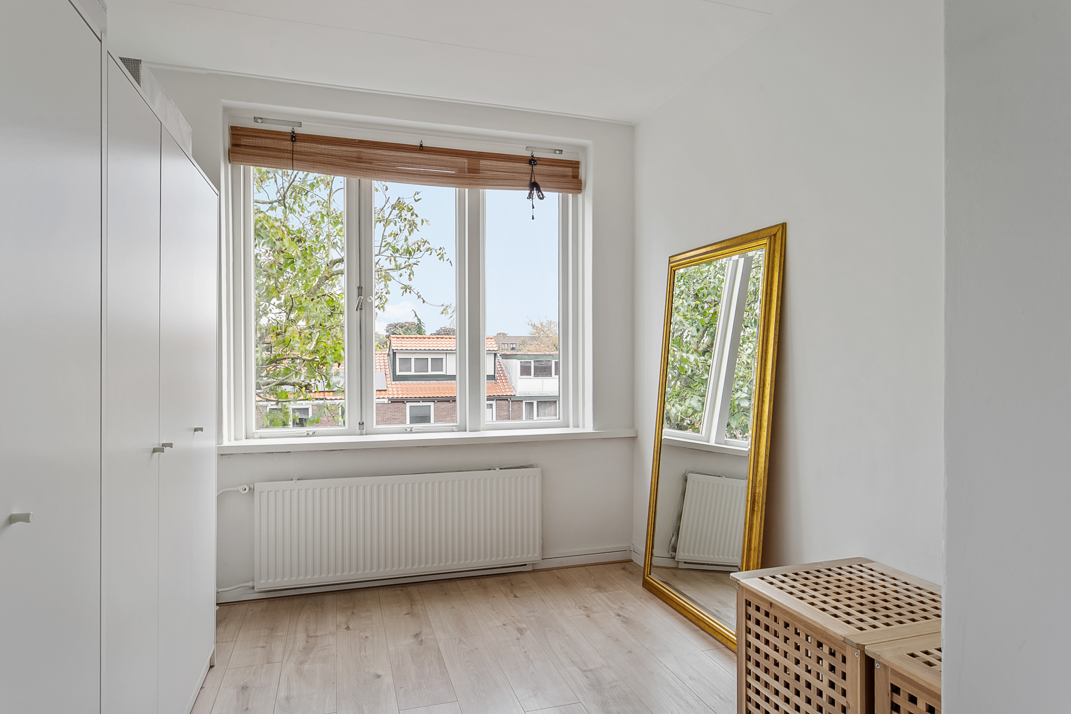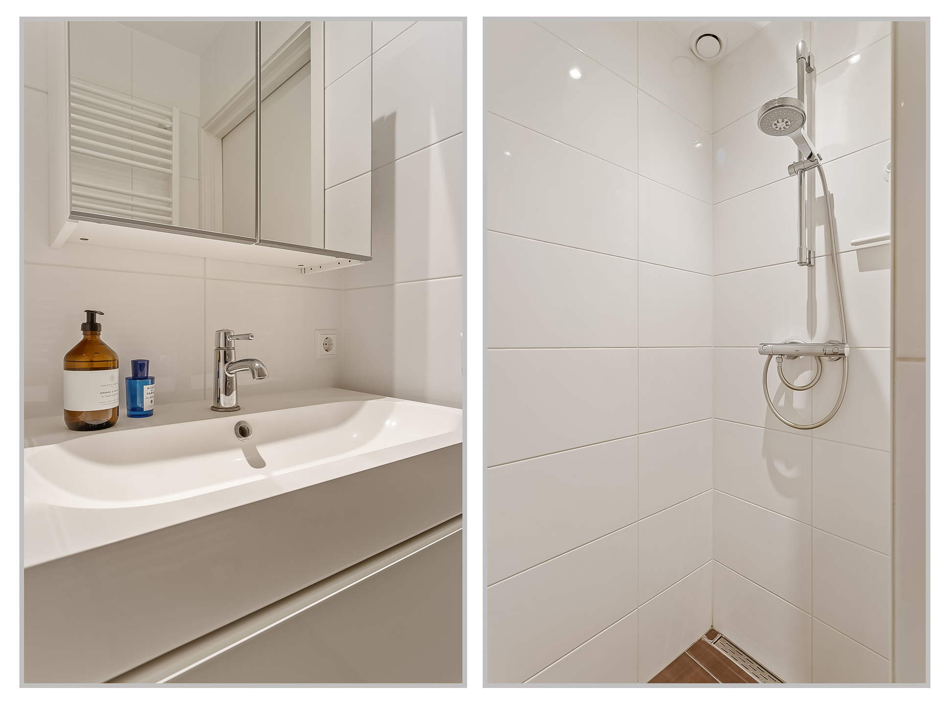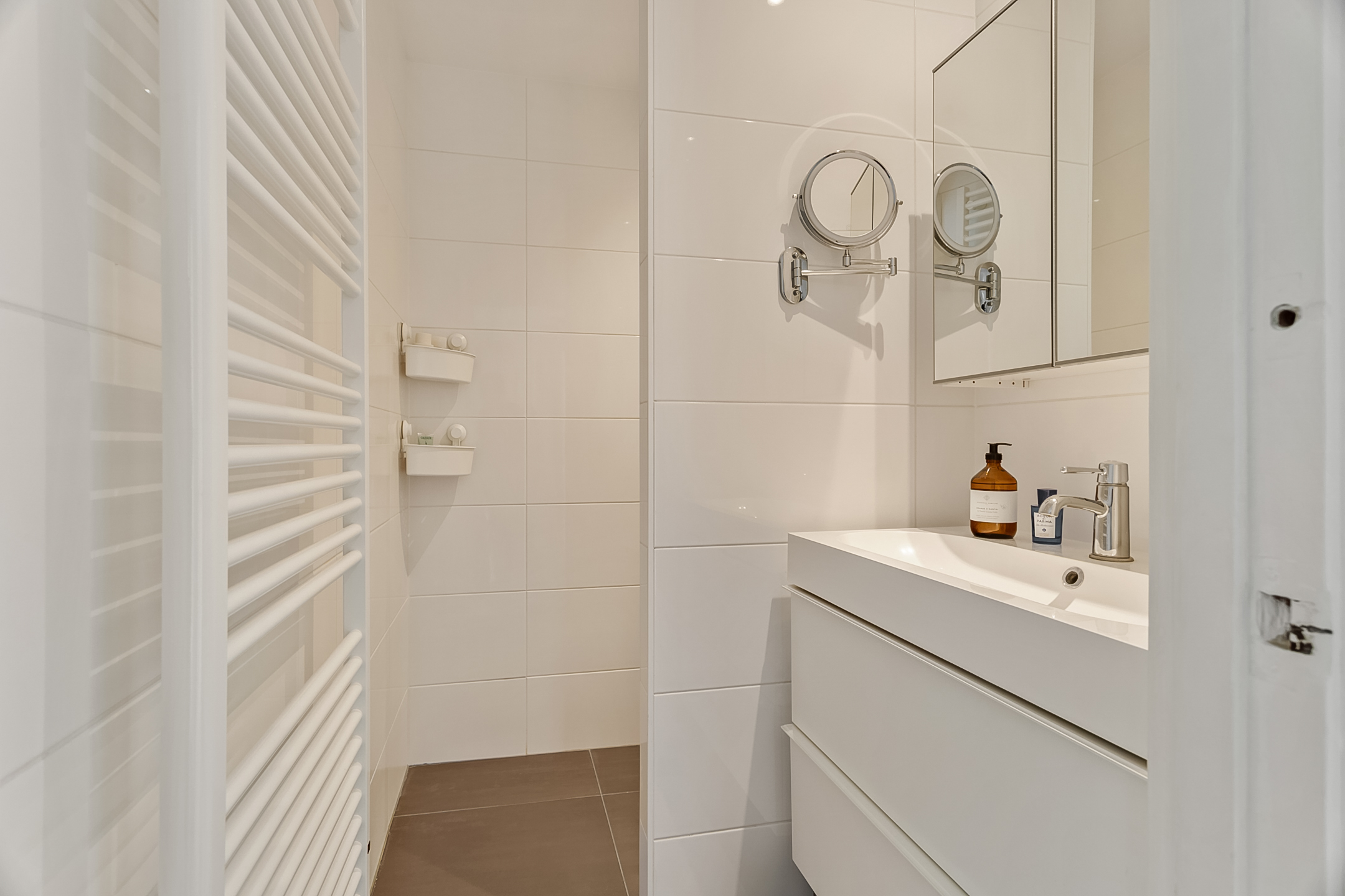 Op de tweede verdieping vind je een grote slaapkamer aan de voorzijde, twee slaapkamers aan de achterzijde en een badkamer met inloopdouche, wastafelmeubel en handdoekradiator. Ook is er een separaat, zwevend toilet aanwezig op deze verdieping. De lichte laminaatvloer is in 2023 geplaatst en geeft de verdieping een luxe uitstraling.