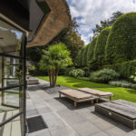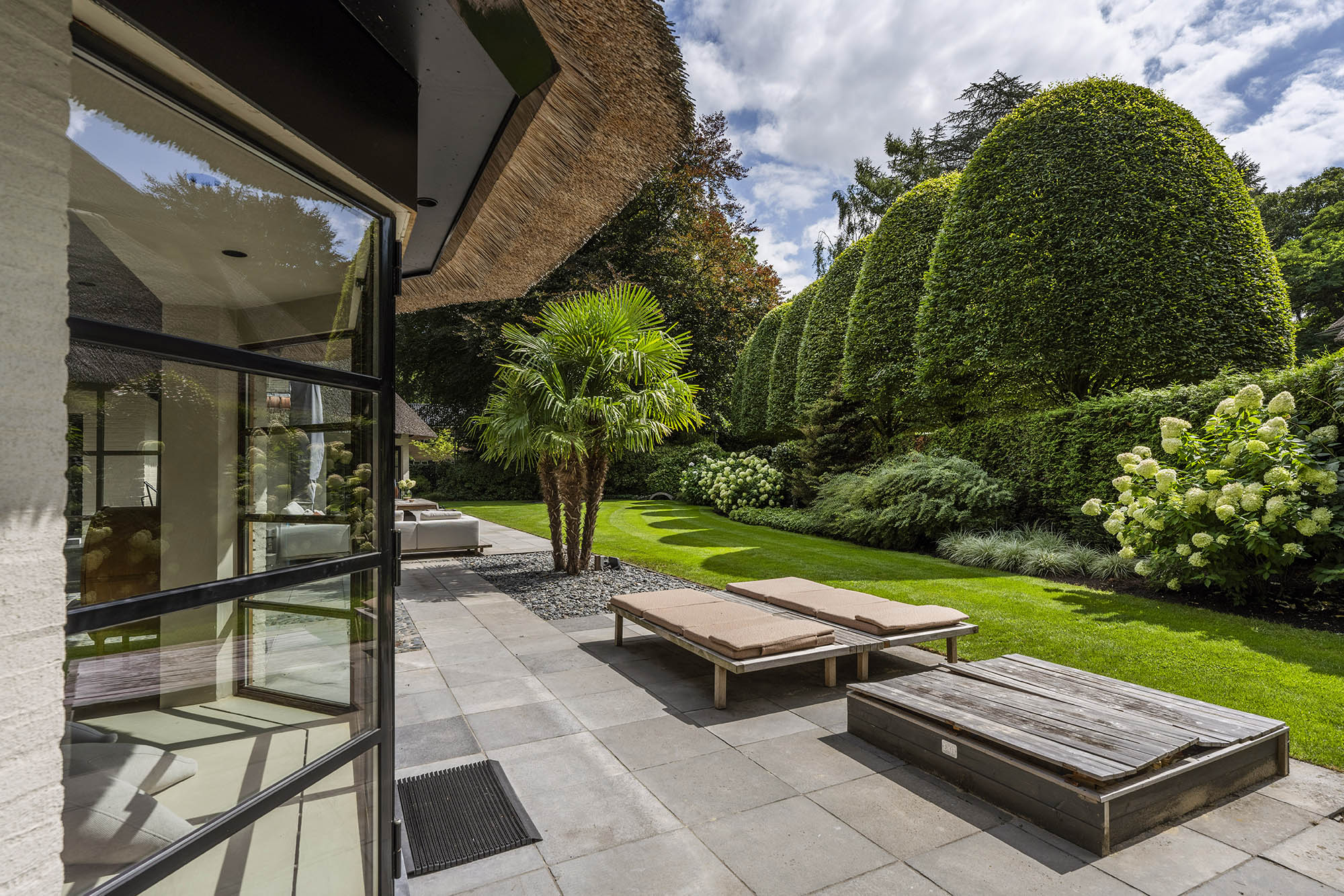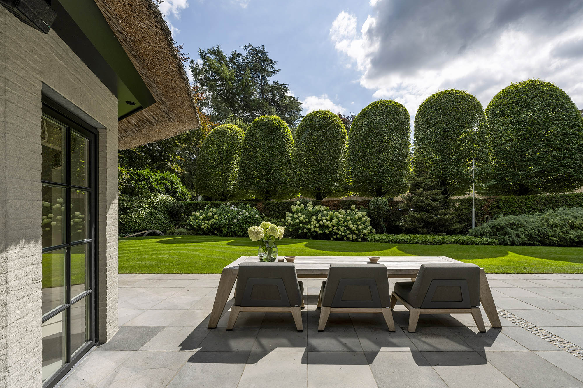 De prachtig aangelegde tuin, compleet met sproei-installatie en verwarmd terras, nodigt uit tot eindeloze zomerse avonden onder de sterren, met zachte muziek die door de buitenluidsprekers klinkt.