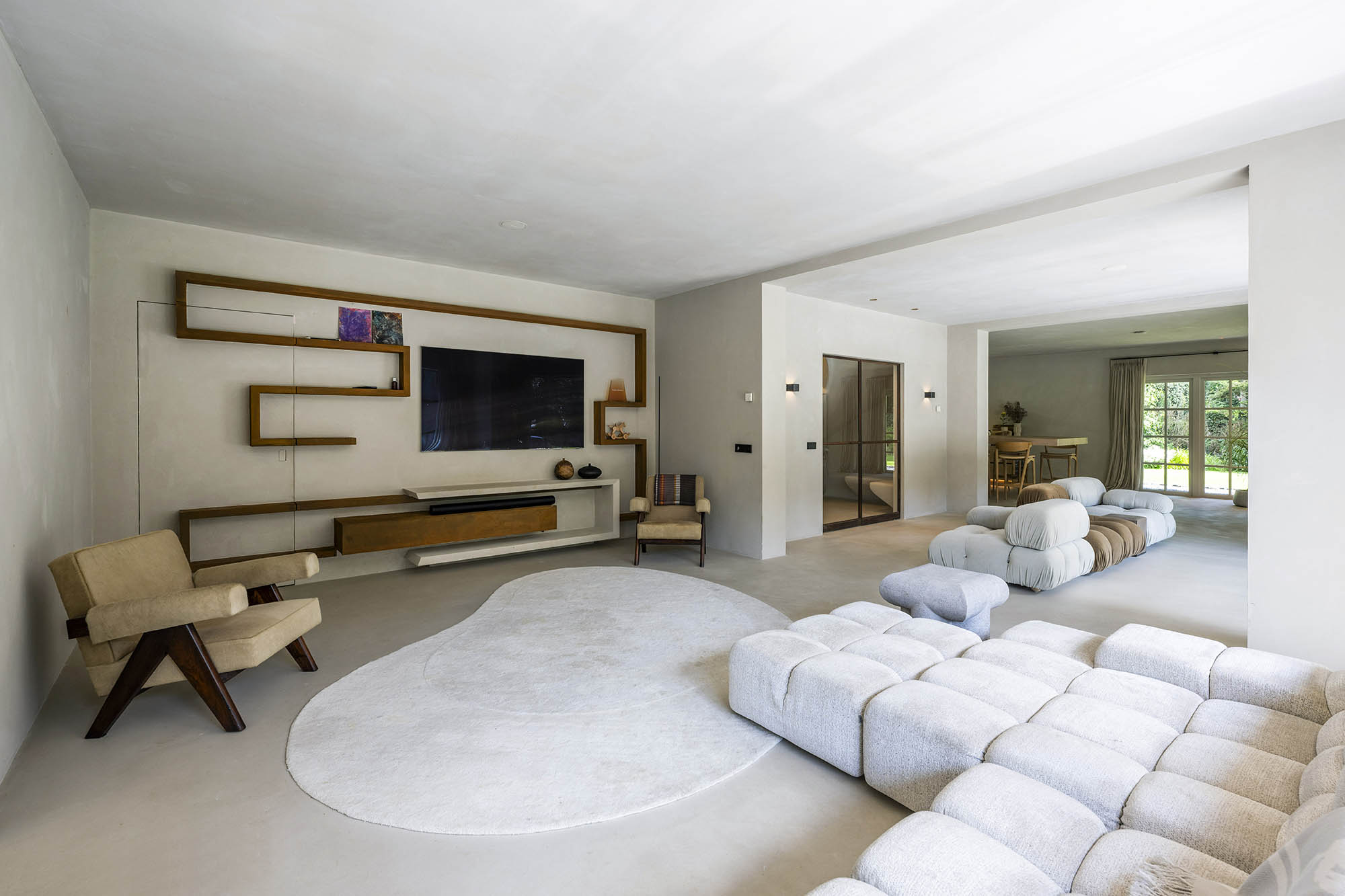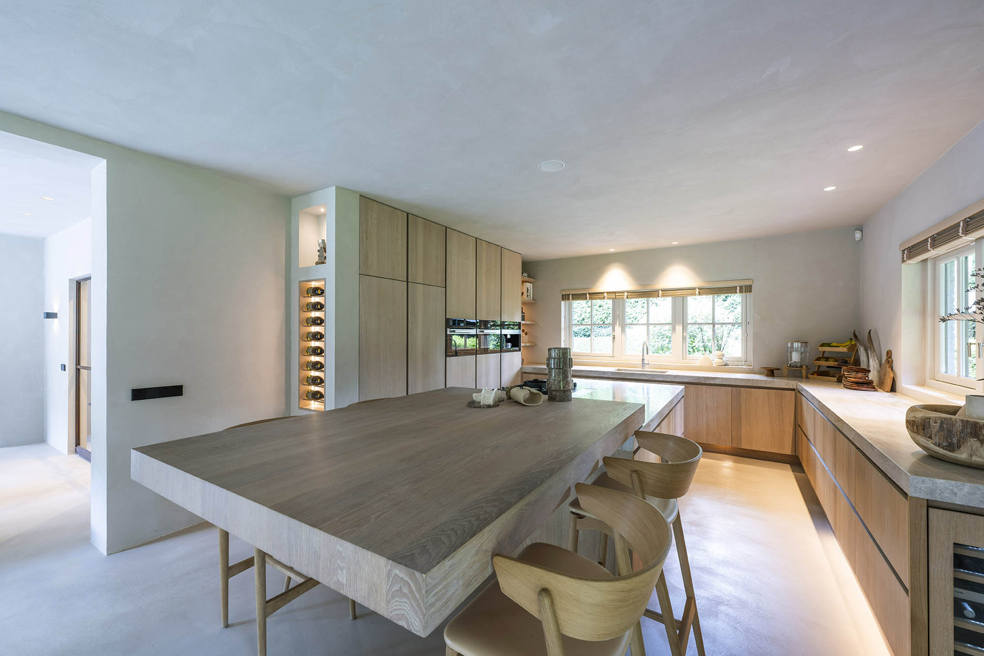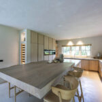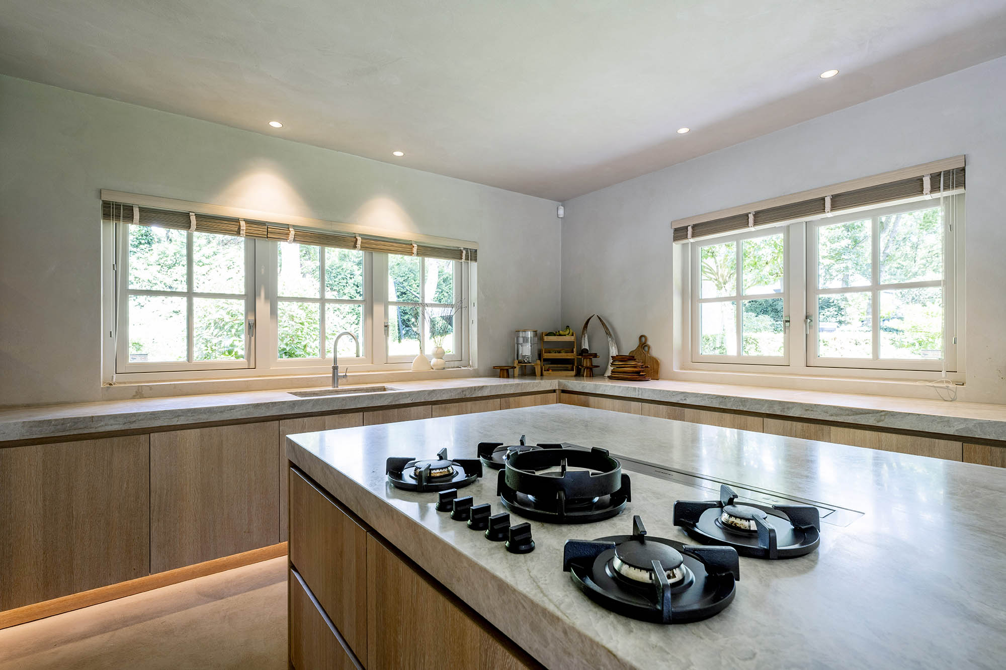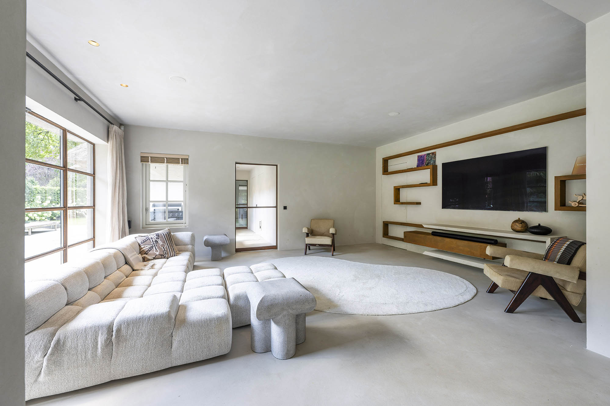 Bij binnenkomst omarmt de royale hal u met haar lichte sfeer en de uitnodigende vide. Vanuit hier leidt een dubbele deur u naar het hart van het huis: een magnifieke woonkeuken met een adembenemend Taj Mahal marmeren eiland, uitgerust met een PITT cooking systeem en een slim verzonken tv-mechaniek. De warme haard en openslaande deuren openen de ruimte naar de riante tuin, alsof binnen en buiten in perfecte harmonie samensmelten.