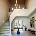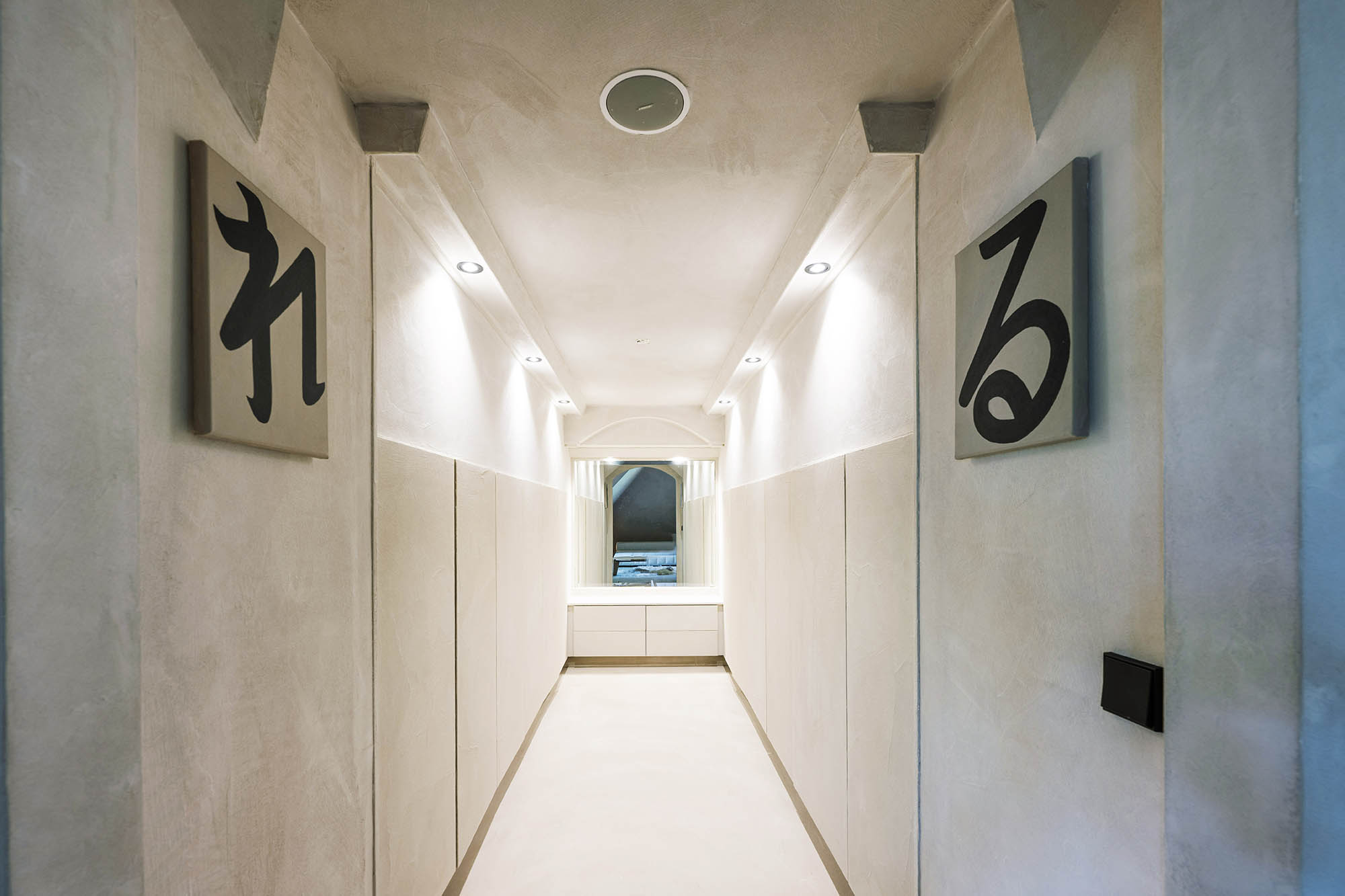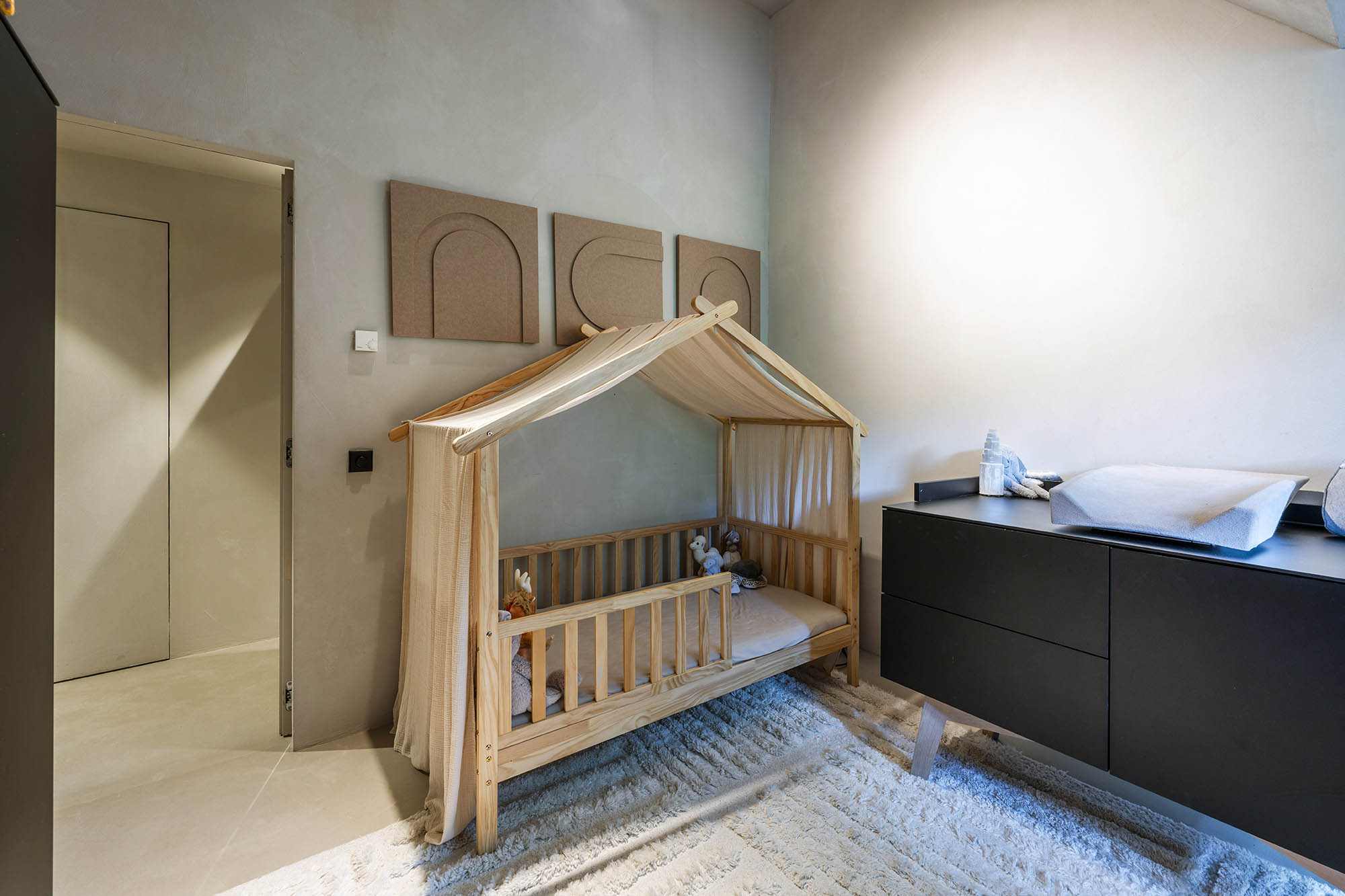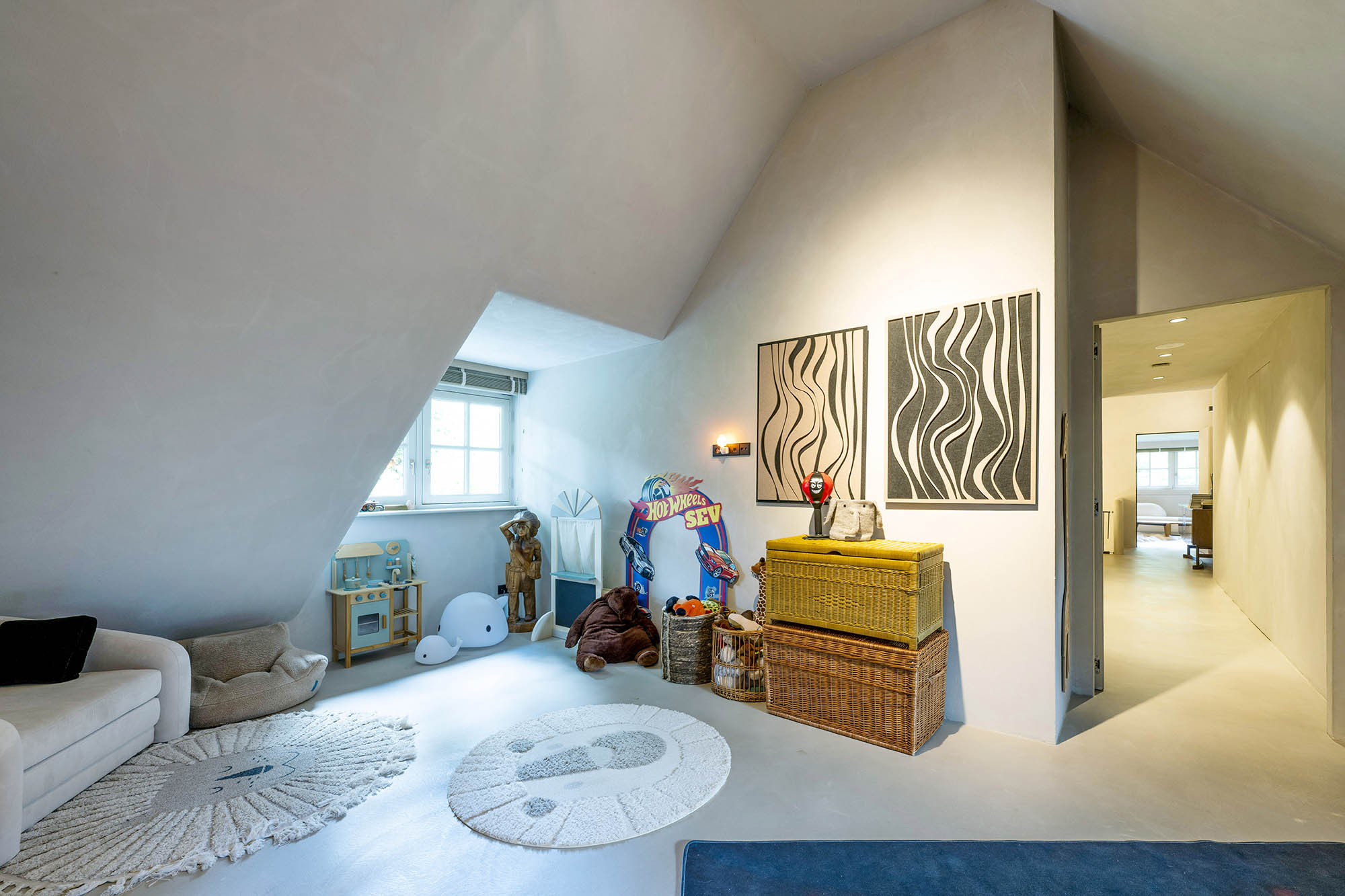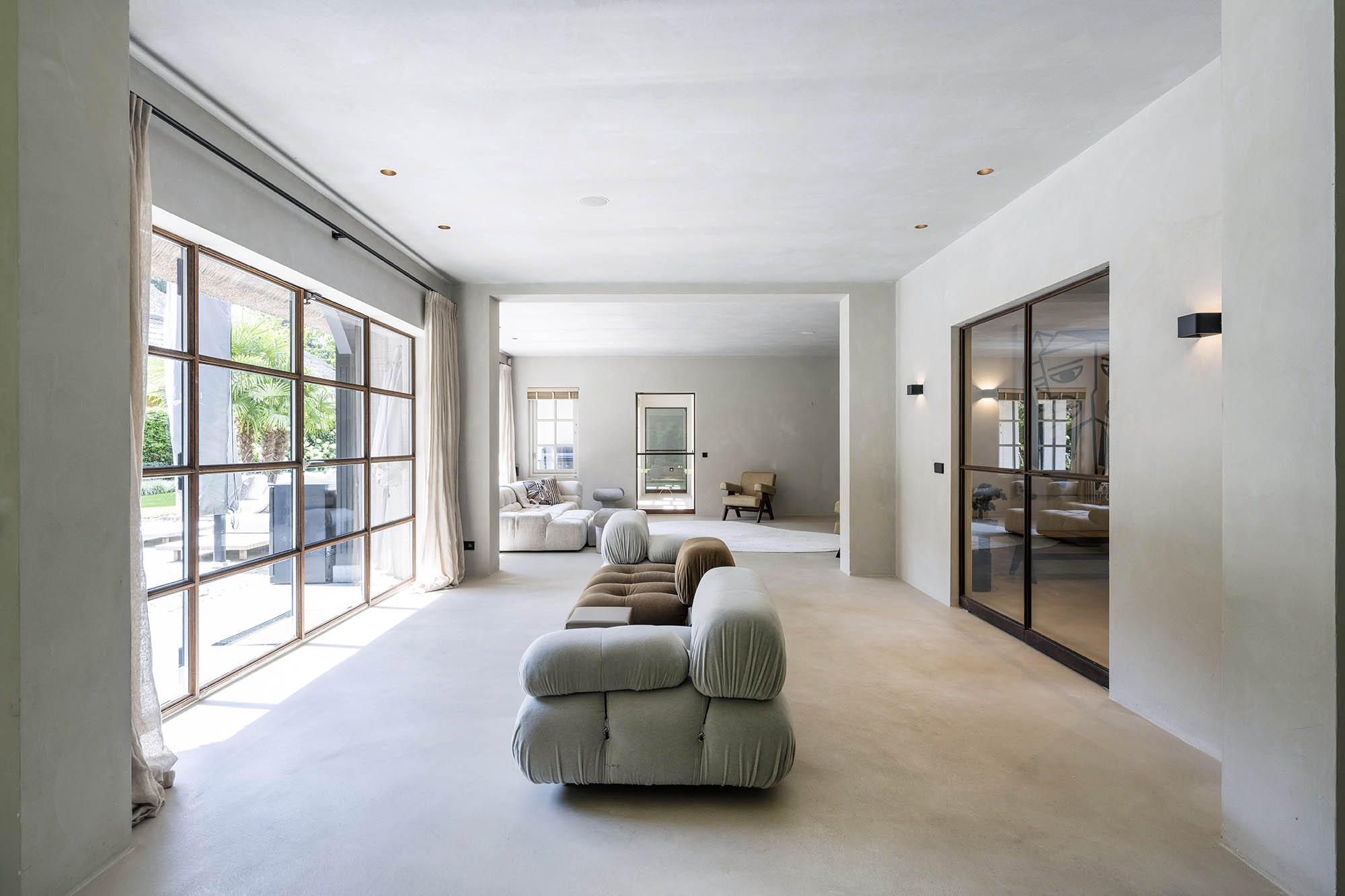 Bij binnenkomst omarmt de royale hal u met haar lichte sfeer en de uitnodigende vide. Vanuit hier leidt een dubbele deur u naar het hart van het huis: een magnifieke woonkeuken met een adembenemend Taj Mahal marmeren eiland, uitgerust met een PITT cooking systeem en een slim verzonken tv-mechaniek. De warme haard en openslaande deuren openen de ruimte naar de riante tuin, alsof binnen en buiten in perfecte harmonie samensmelten.