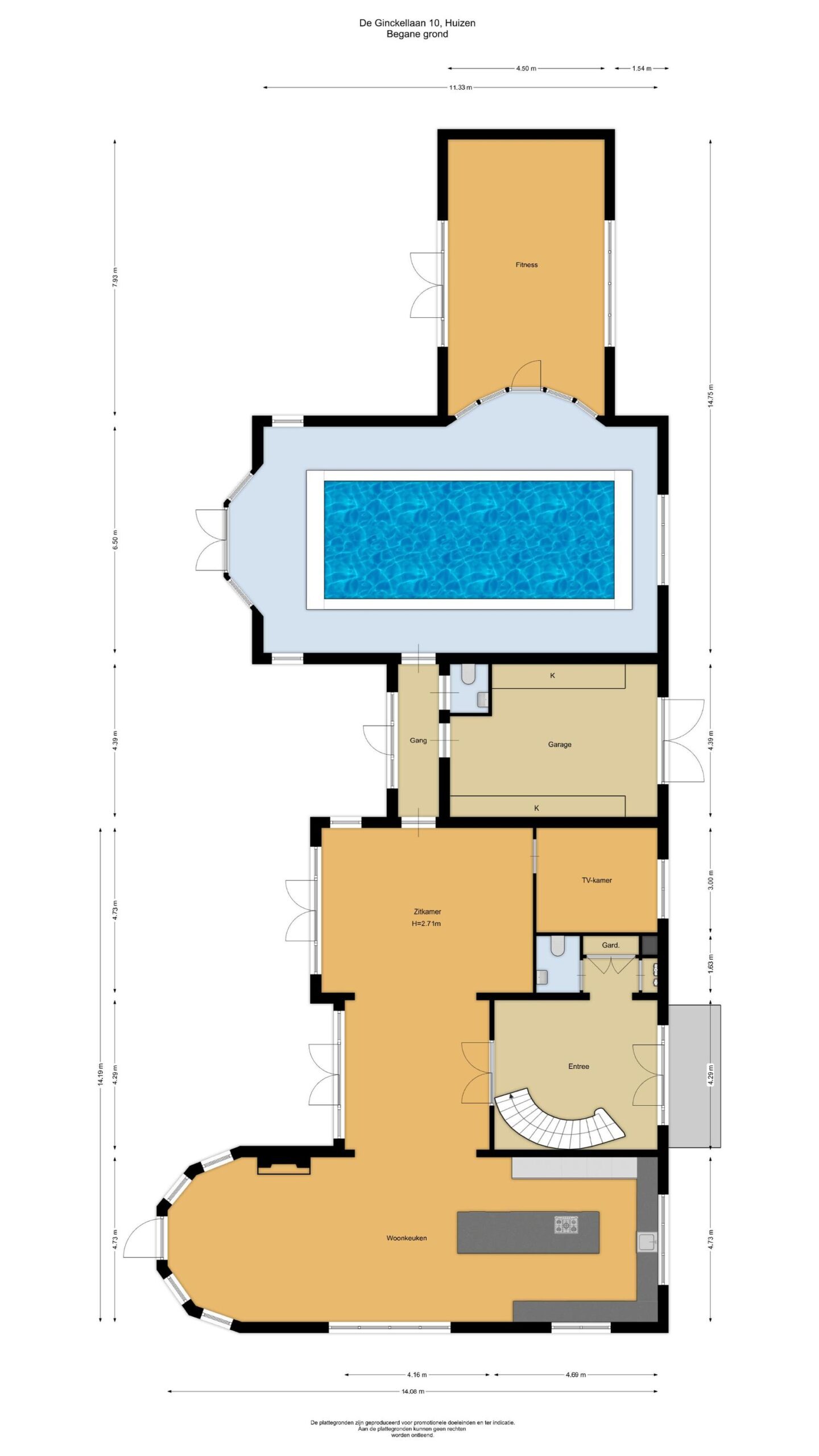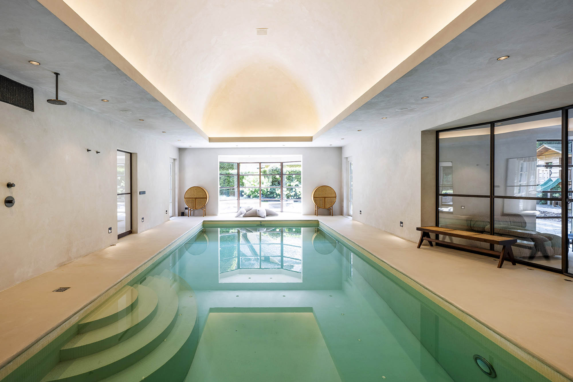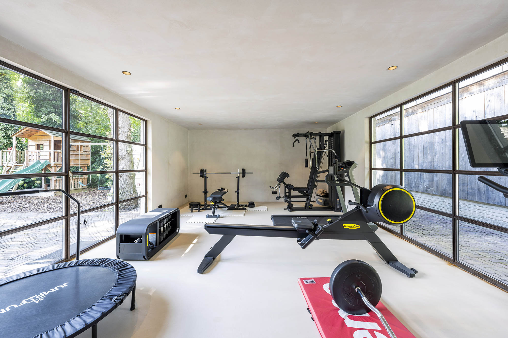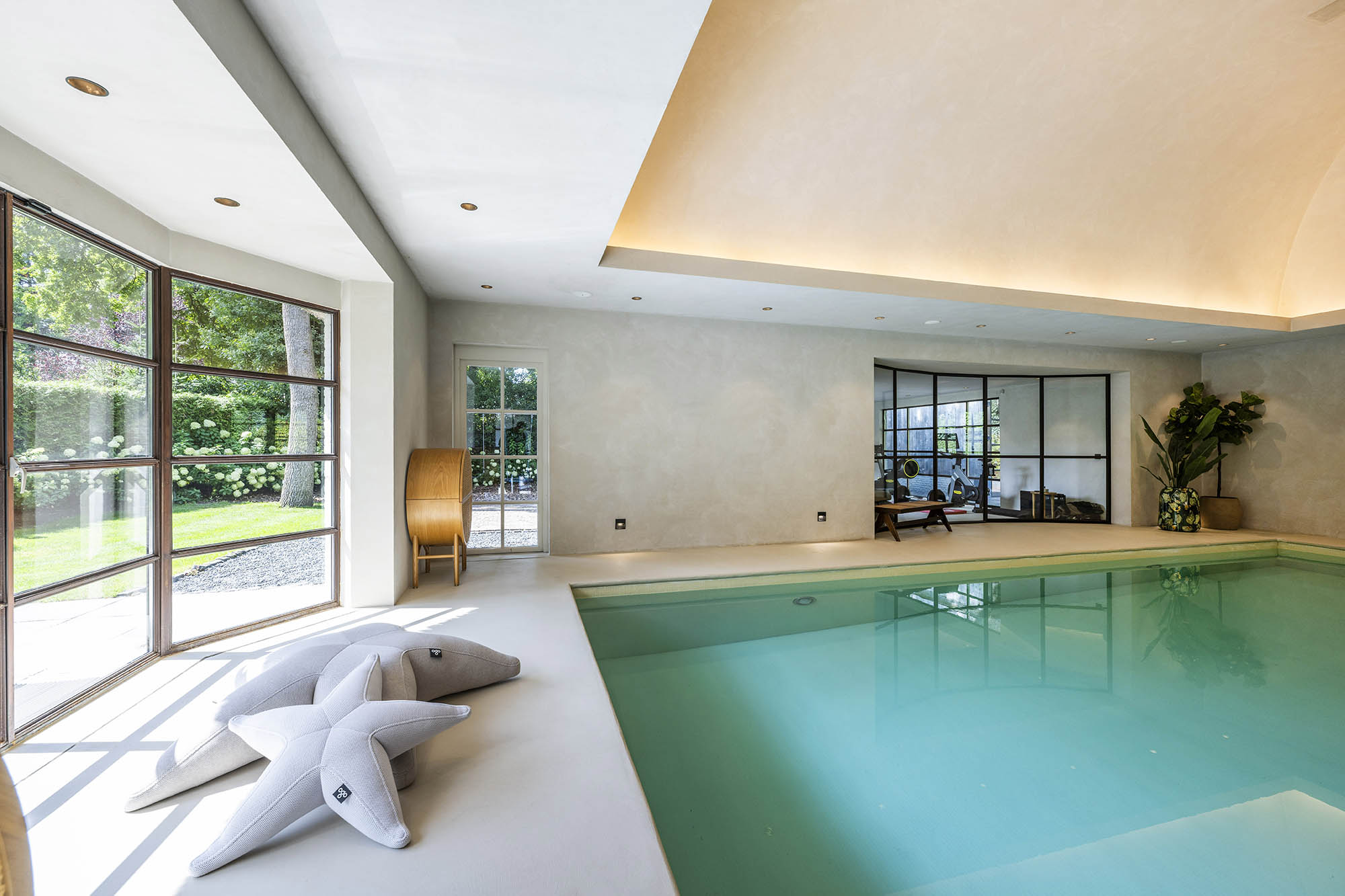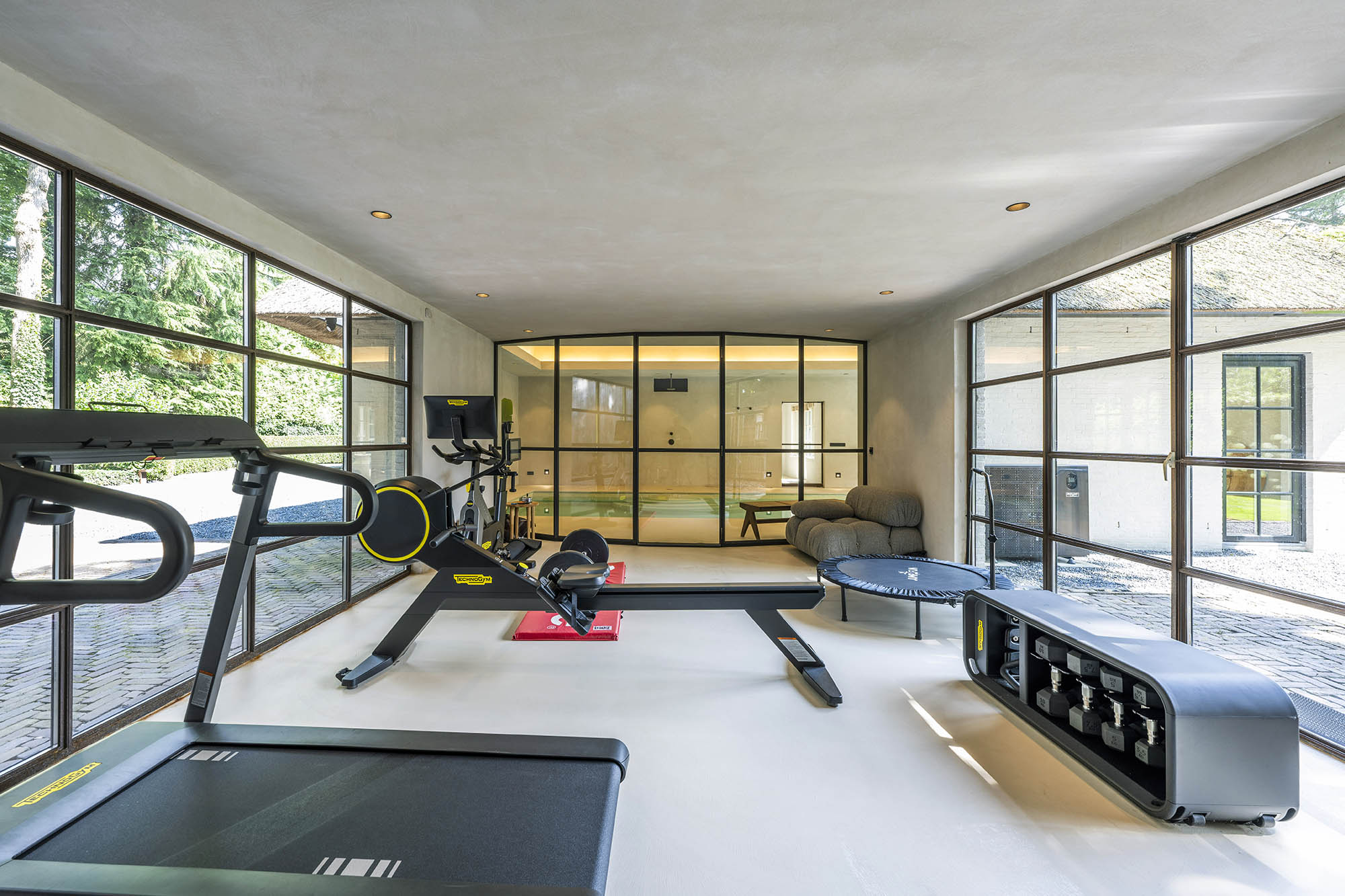 Voor uw ontspanning en wellness is er een prachtig inpandig zwembad van ca. 4 x 10 meter, verwarmd met een efficiënte warmtepomp, met openslaande deuren naar een weelderige tuin, waar de dag in rust kan eindigen. Grenzend hieraan ligt een ruime fitnessruimte, waar u met uitzicht op het groen elke dag energie kunt opdoen.